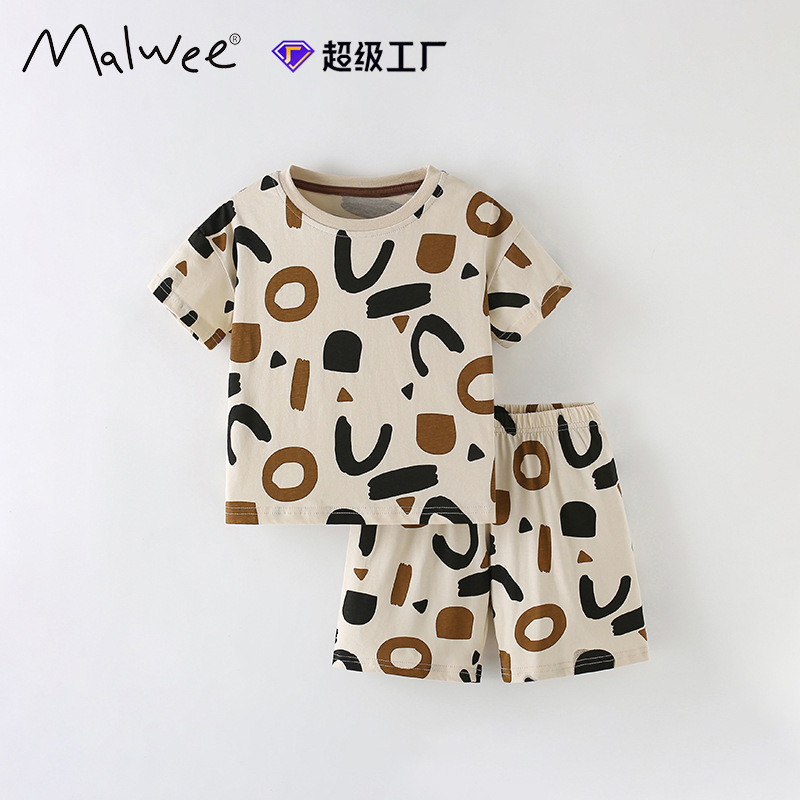 국경 간 말위 소년 투피스 여름 새로운 유럽과 미국 어린이 둥근 목 반팔 홈 의류 어린이 세트스토어 가기