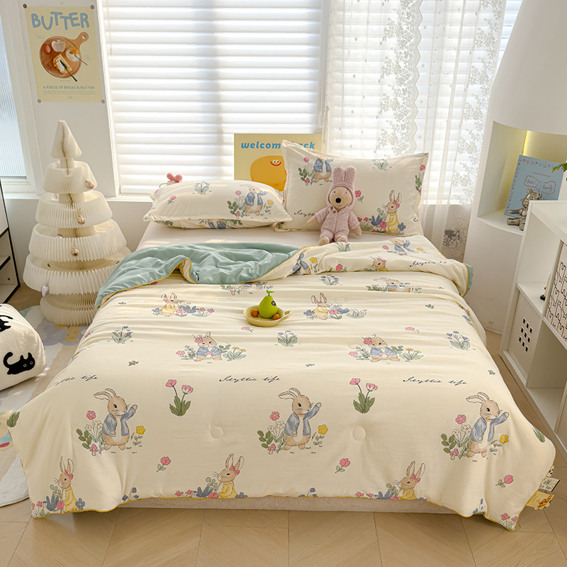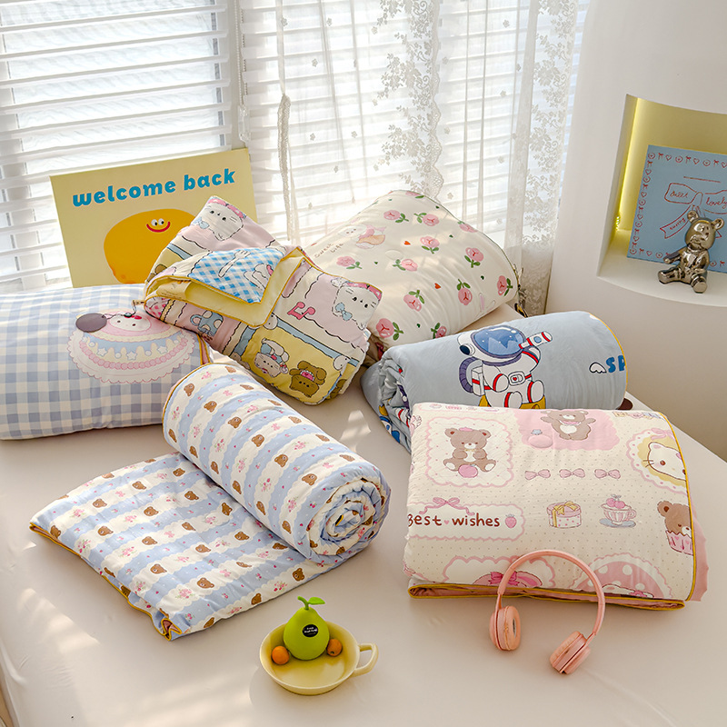 클래스 더블 레이어 원사 여름 멋진 만화 선물 퀼트 싱글 더블 어린이 얇은 이불 기계 빨 수 국경 도매스토어 가기