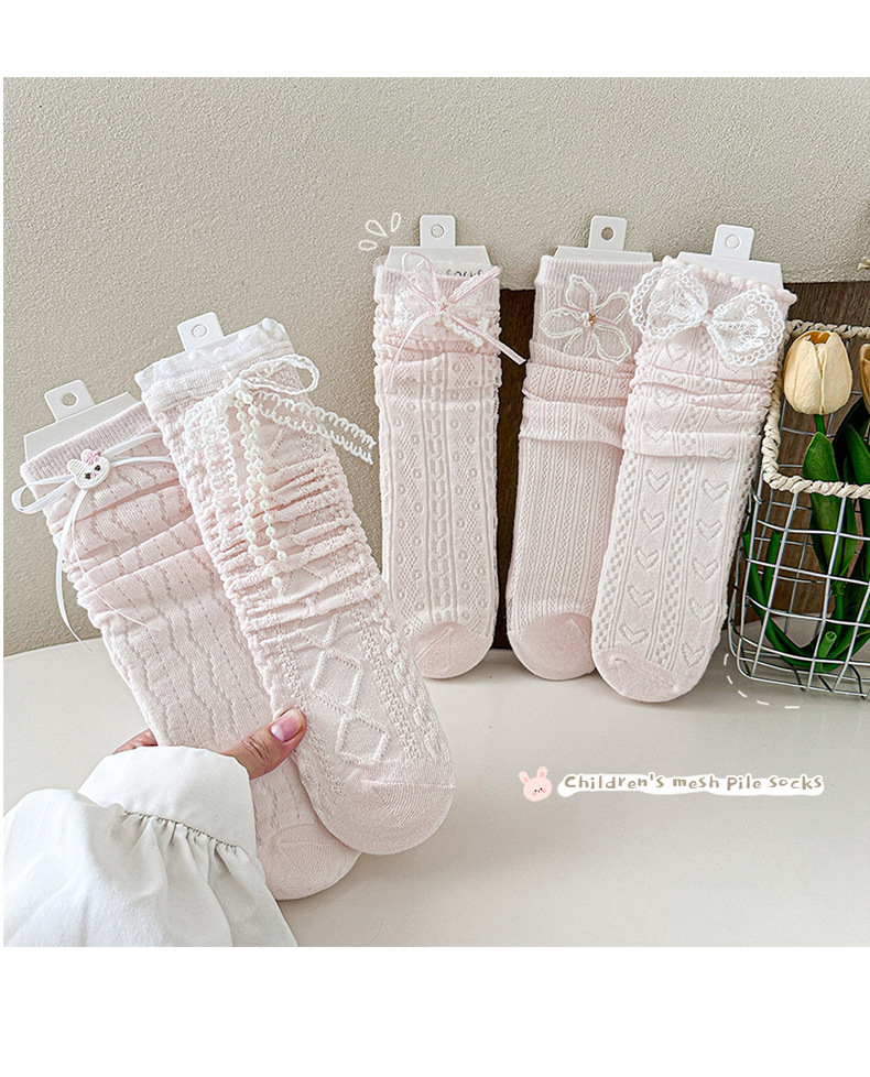 소녀 양말 여름 얇은 메쉬 더미 양말 어린이 소녀 아기 공주 레이스 중간 길이 양말 토끼 꽃