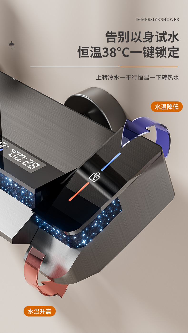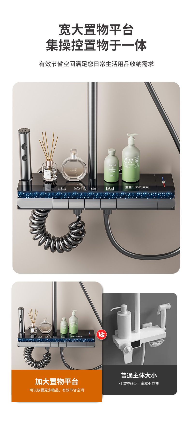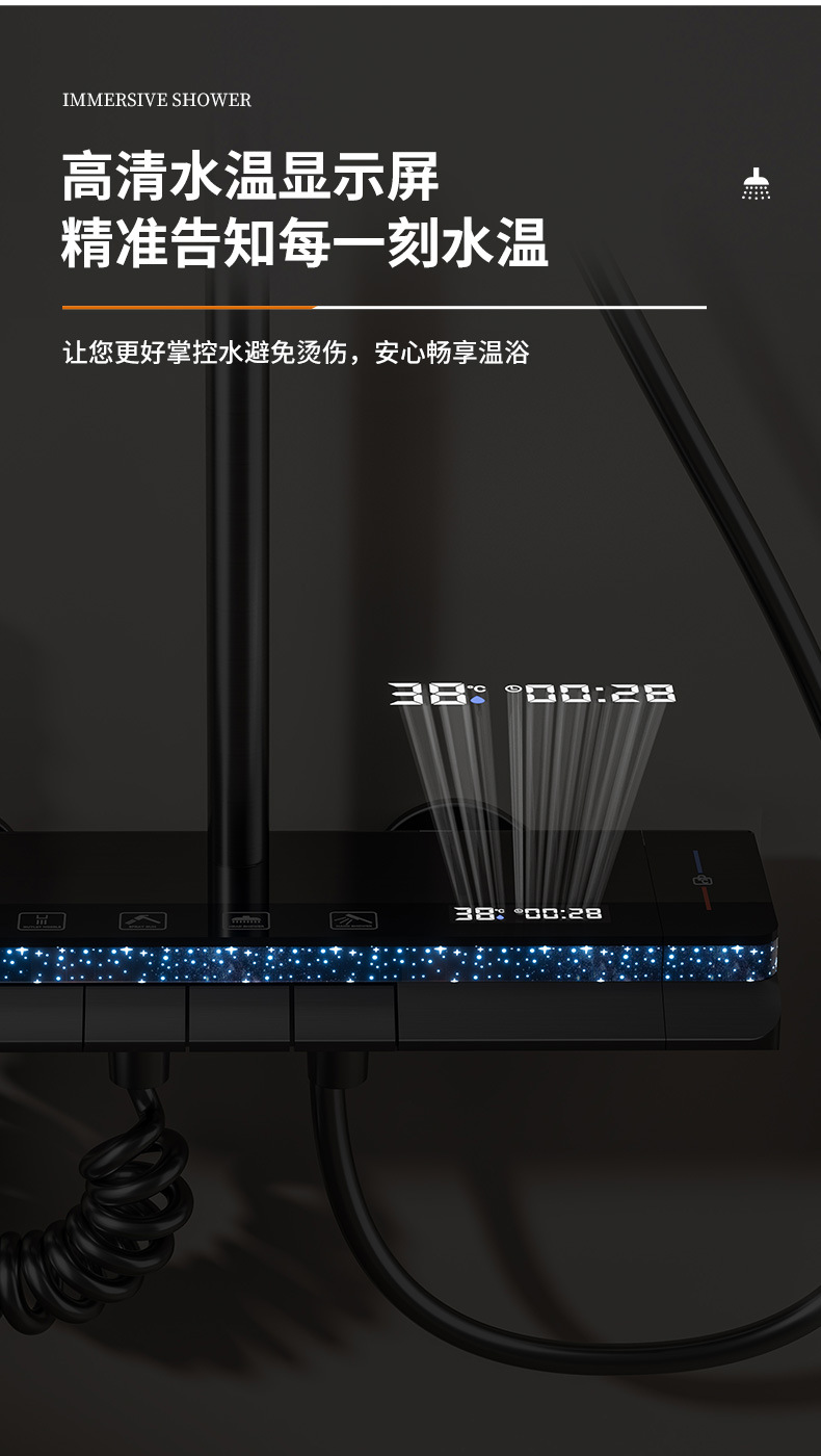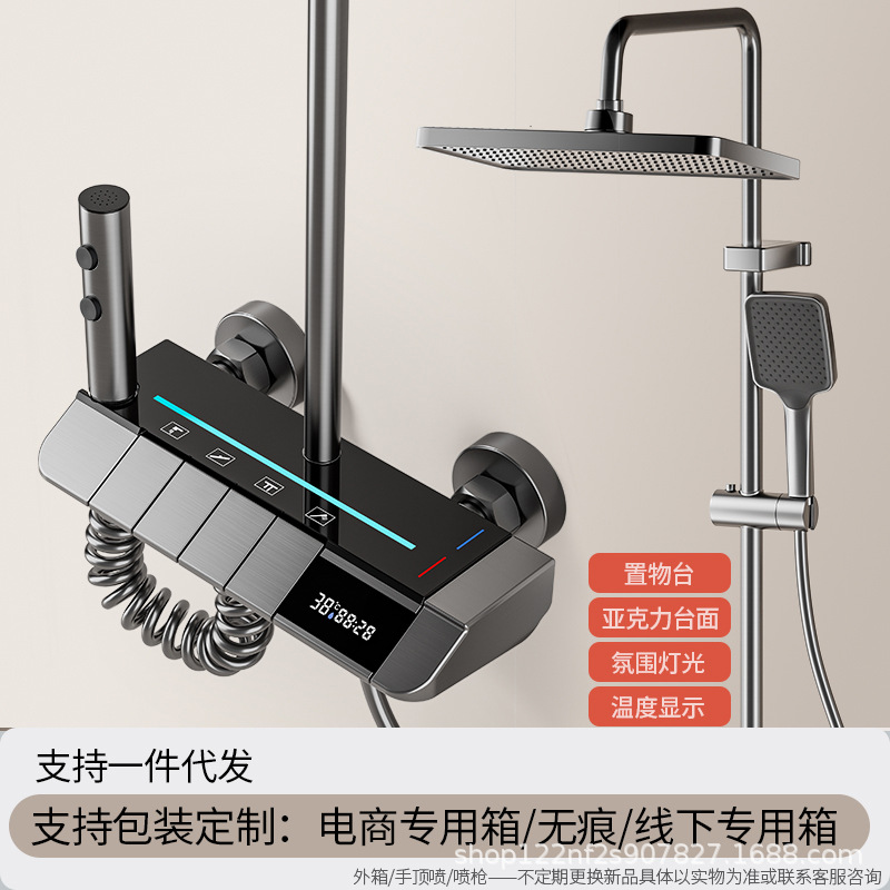 스마트 온도조절 샤워 세트, 순동 본체, 디지털 LED 디스플레이, 공기압력 증강 샤워헤드, 온도조절 디지털 디스플레이스토어 가기