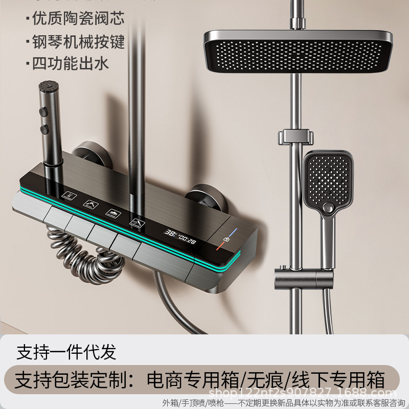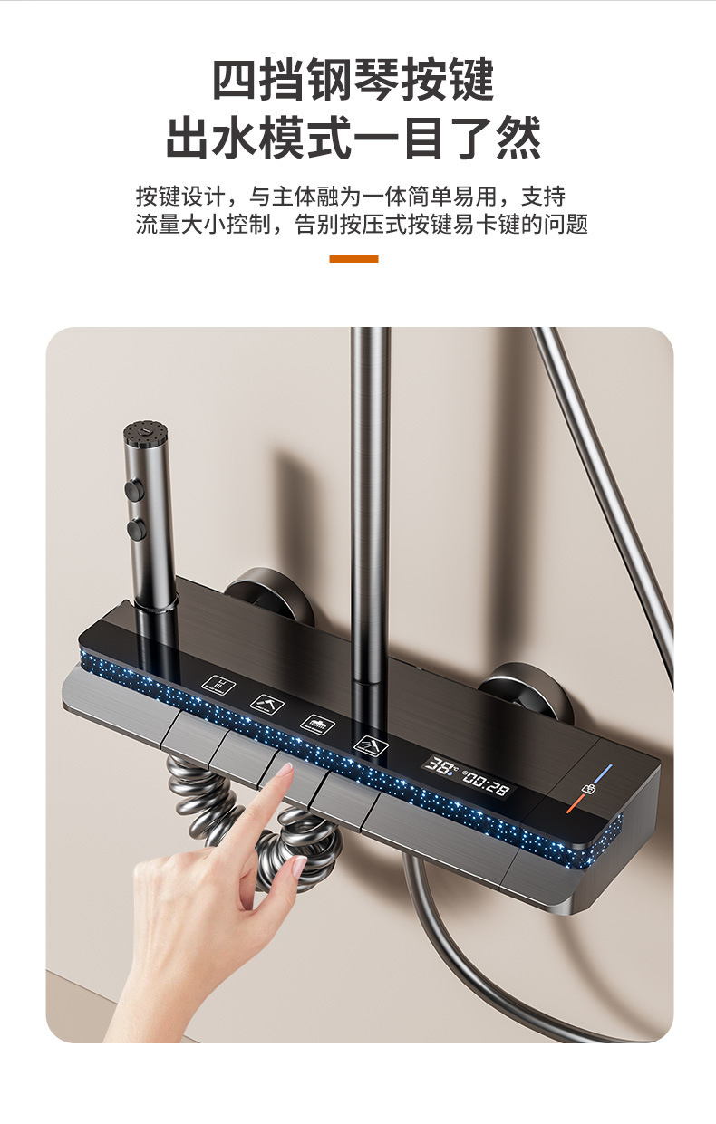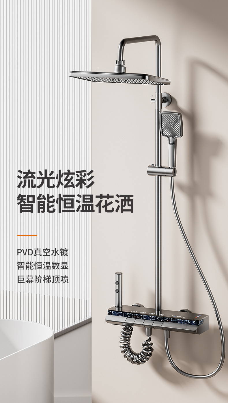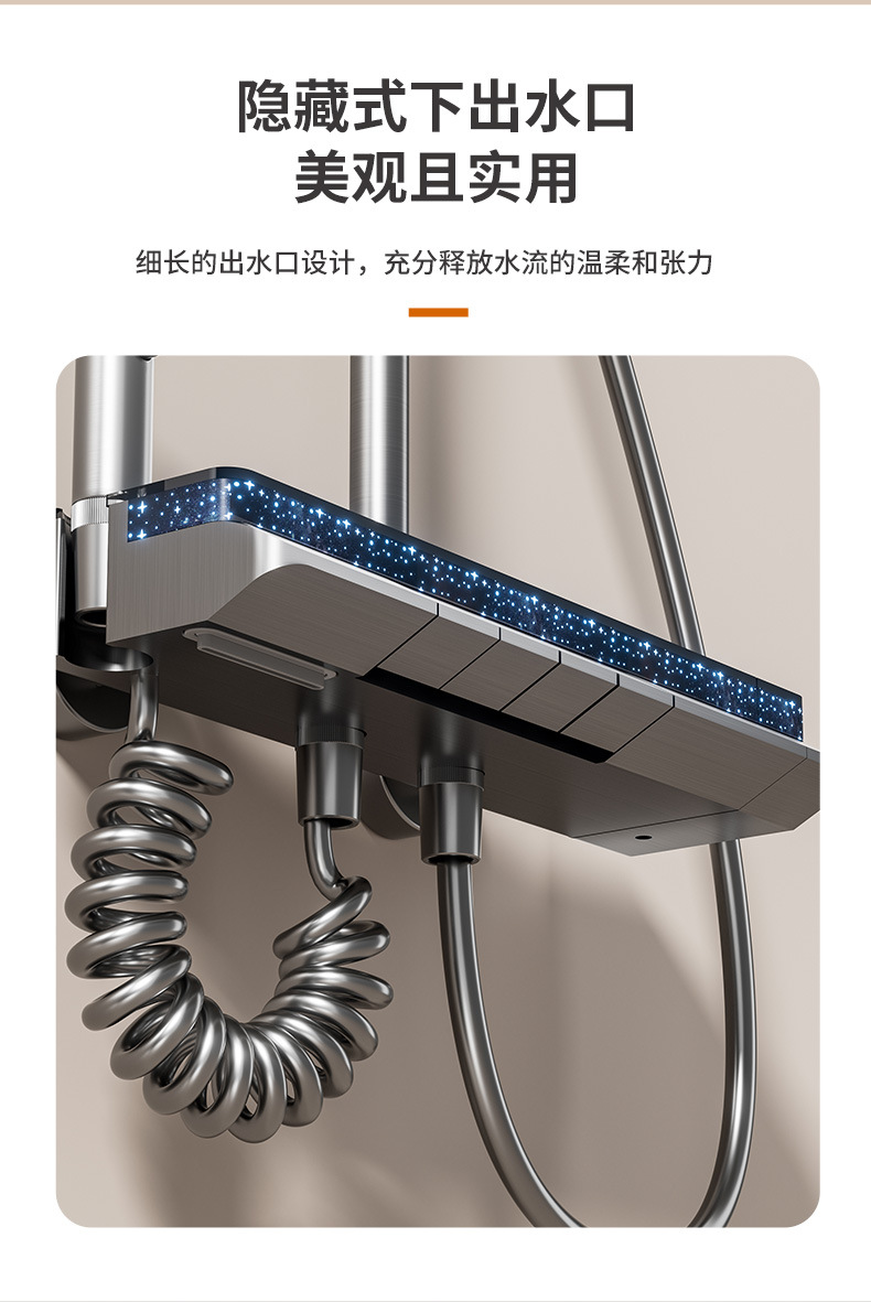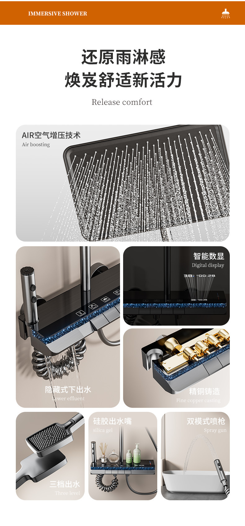 스마트 온도조절 샤워 세트, 순동 본체, 디지털 LED 디스플레이, 공기압력 증강 샤워헤드, 온도조절 디지털 디스플레이스토어 가기