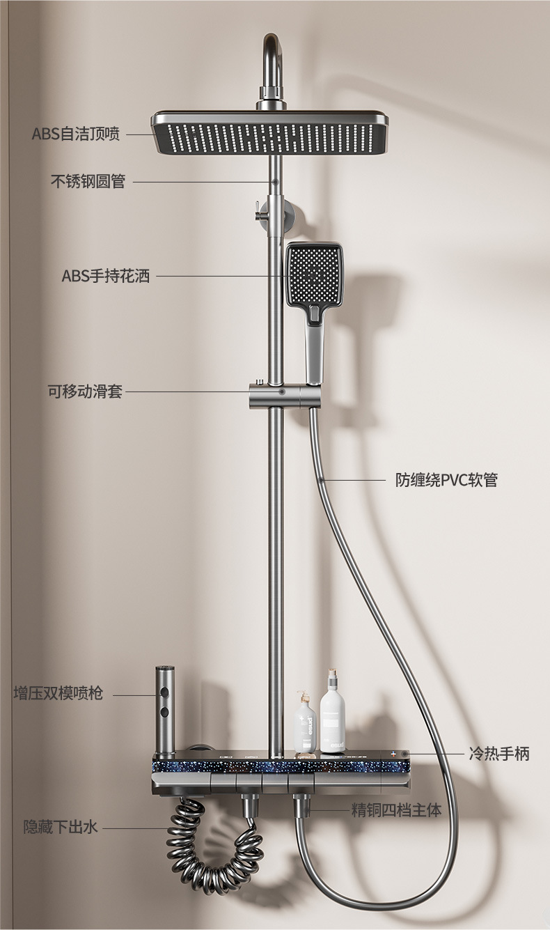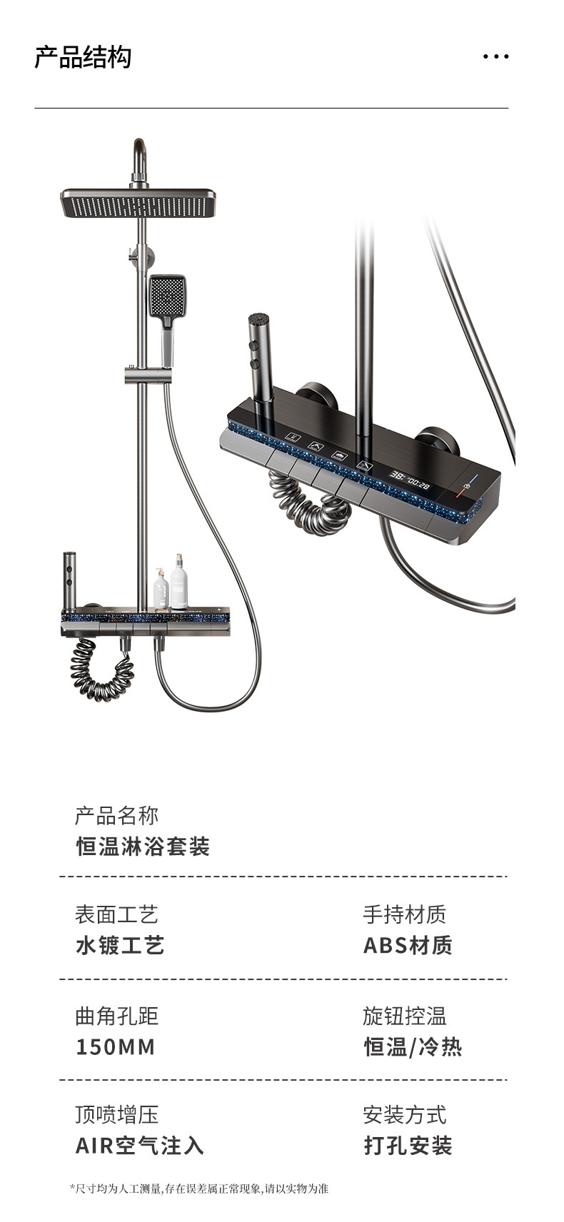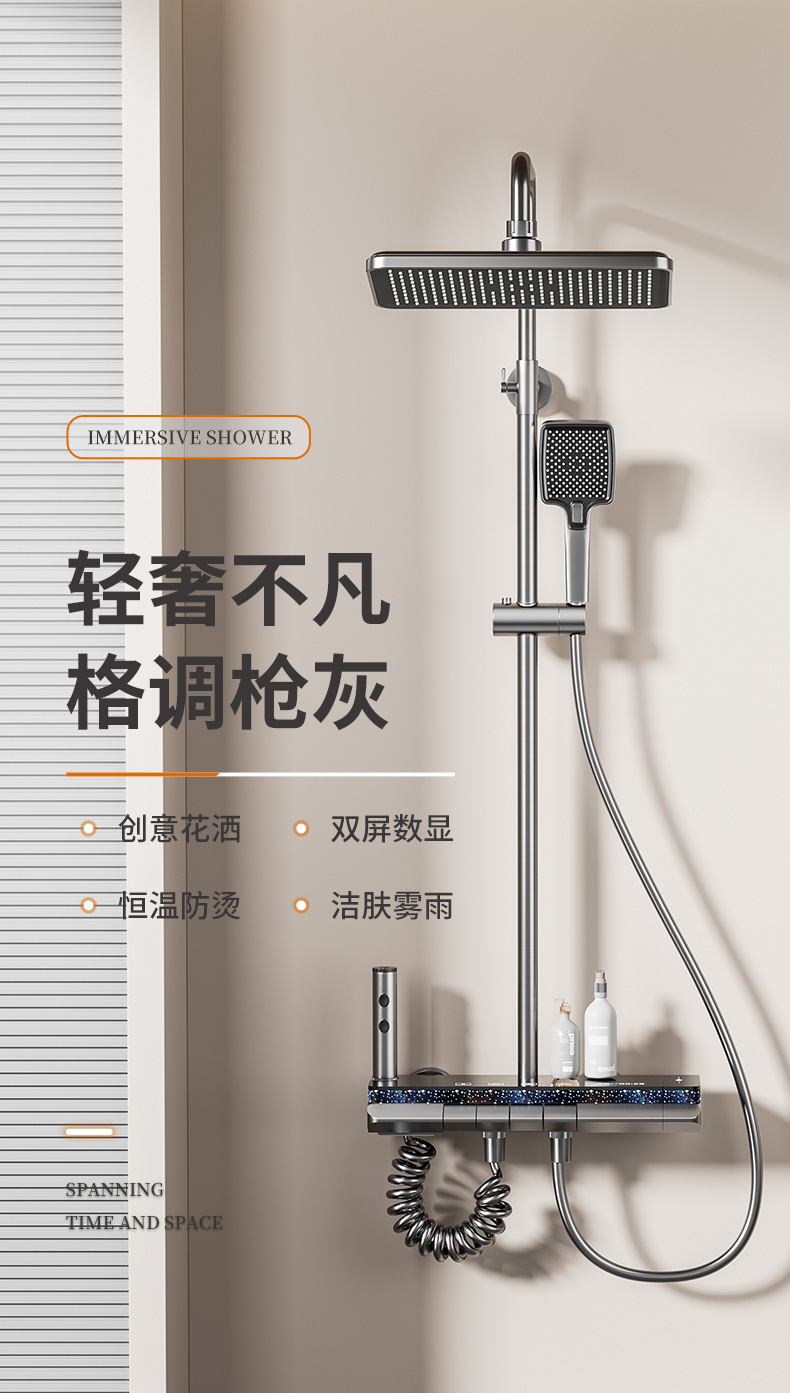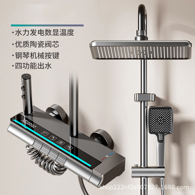 스마트 온도조절 샤워 세트, 순동 본체, 디지털 LED 디스플레이, 공기압력 증강 샤워헤드, 온도조절 디지털 디스플레이스토어 가기
