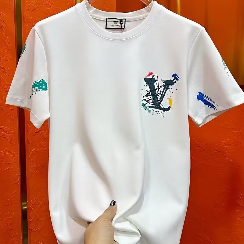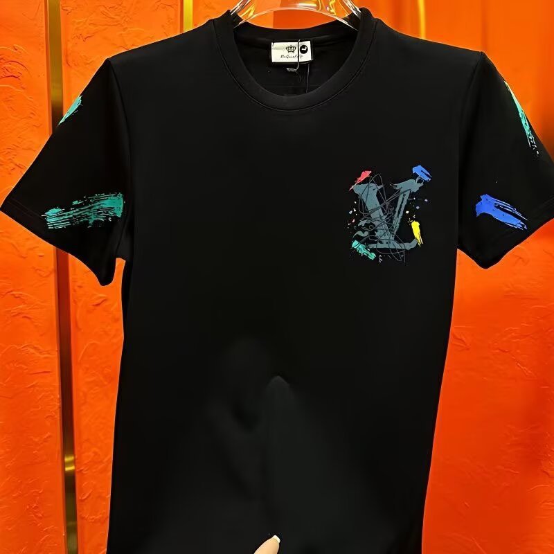 2025 년 새 여름 반팔 티셔츠 남성용 패셔너블 캐주얼 슬림핏 하이 엔드 라이트 럭셔리 트렌디베이스 레이어 셔츠 반소매스토어 가기