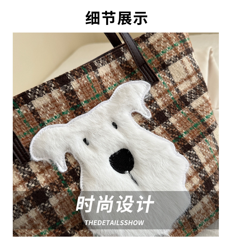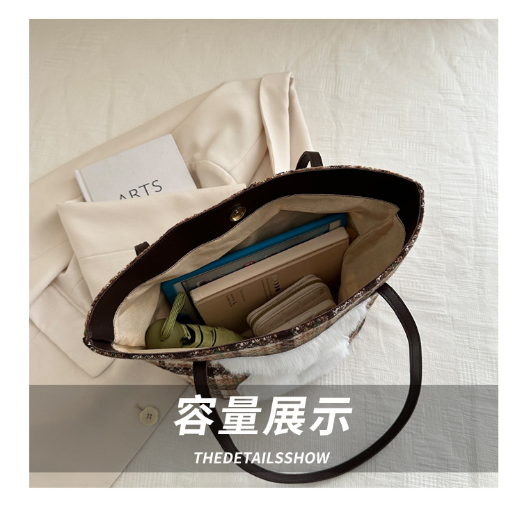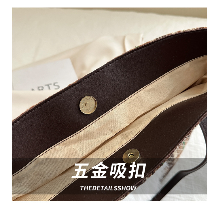 2025 봄 신상 모직 대형 가방 여성용 트렌디 학생 핸드백 캐주얼 대용량 체크무늬 숄더 토트백스토어 가기