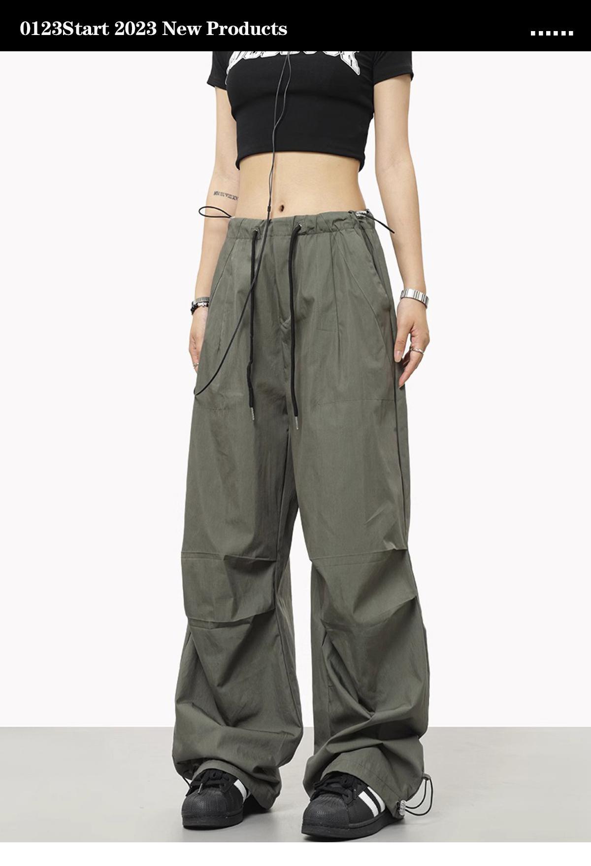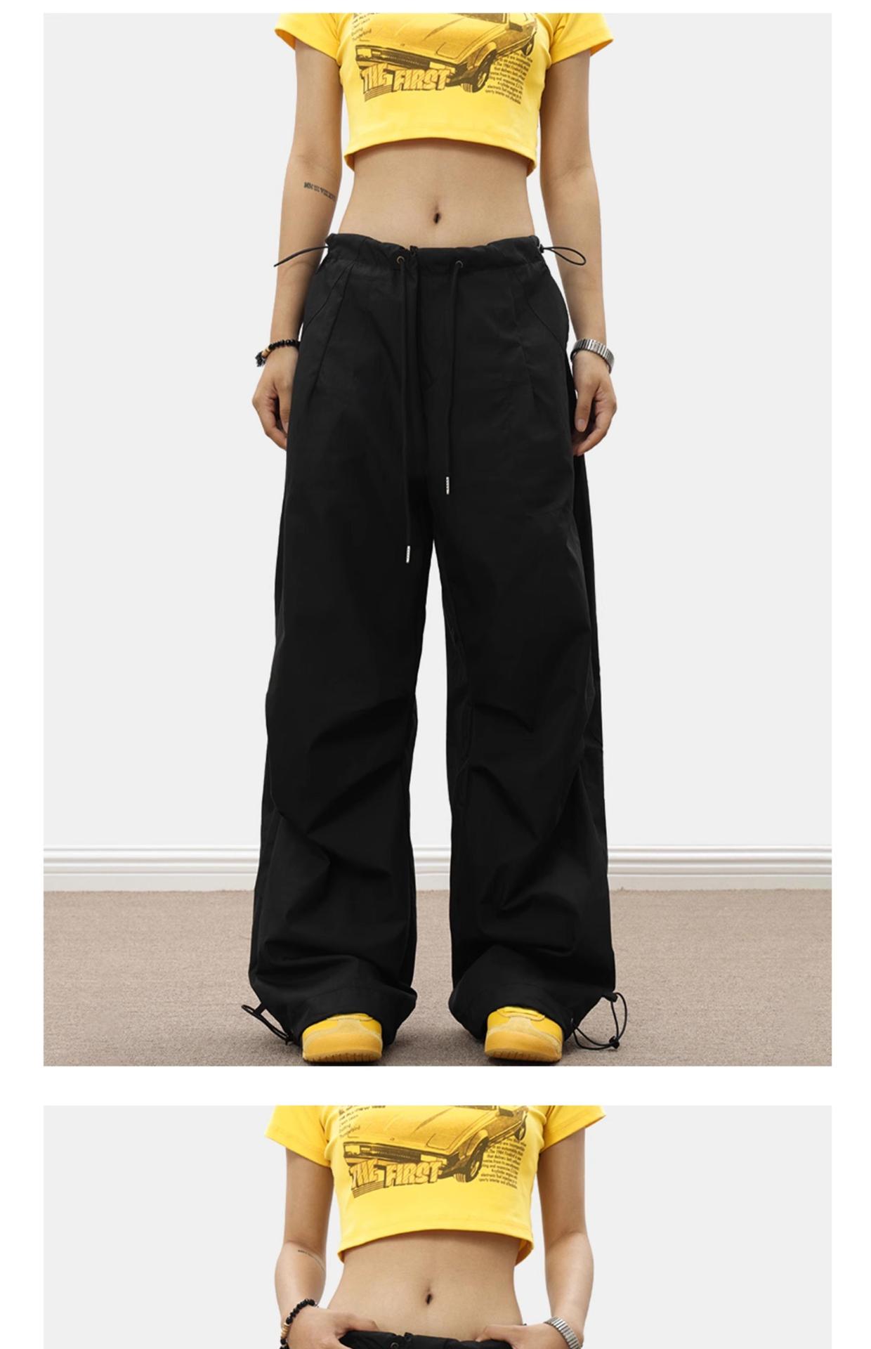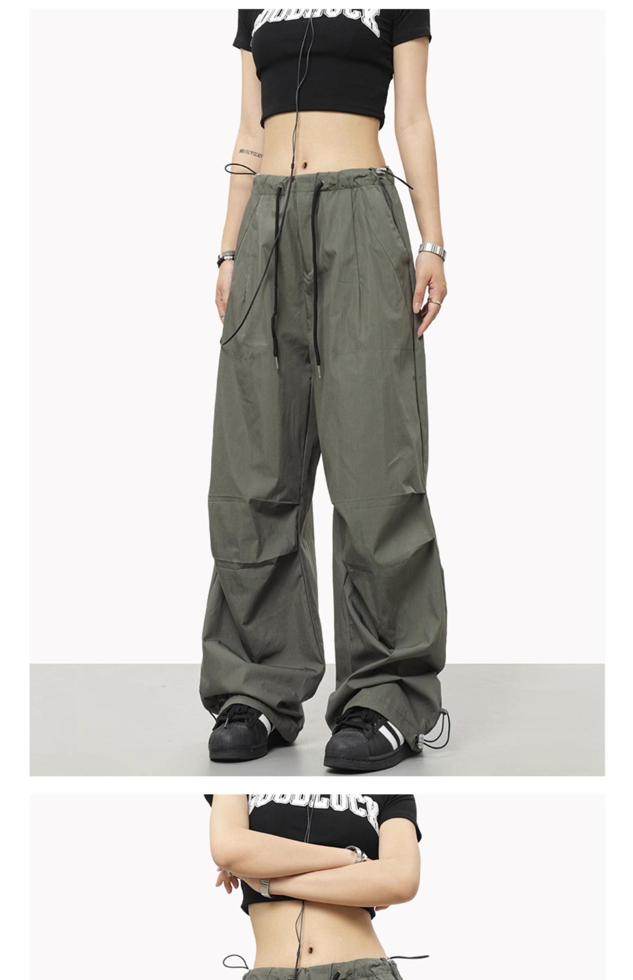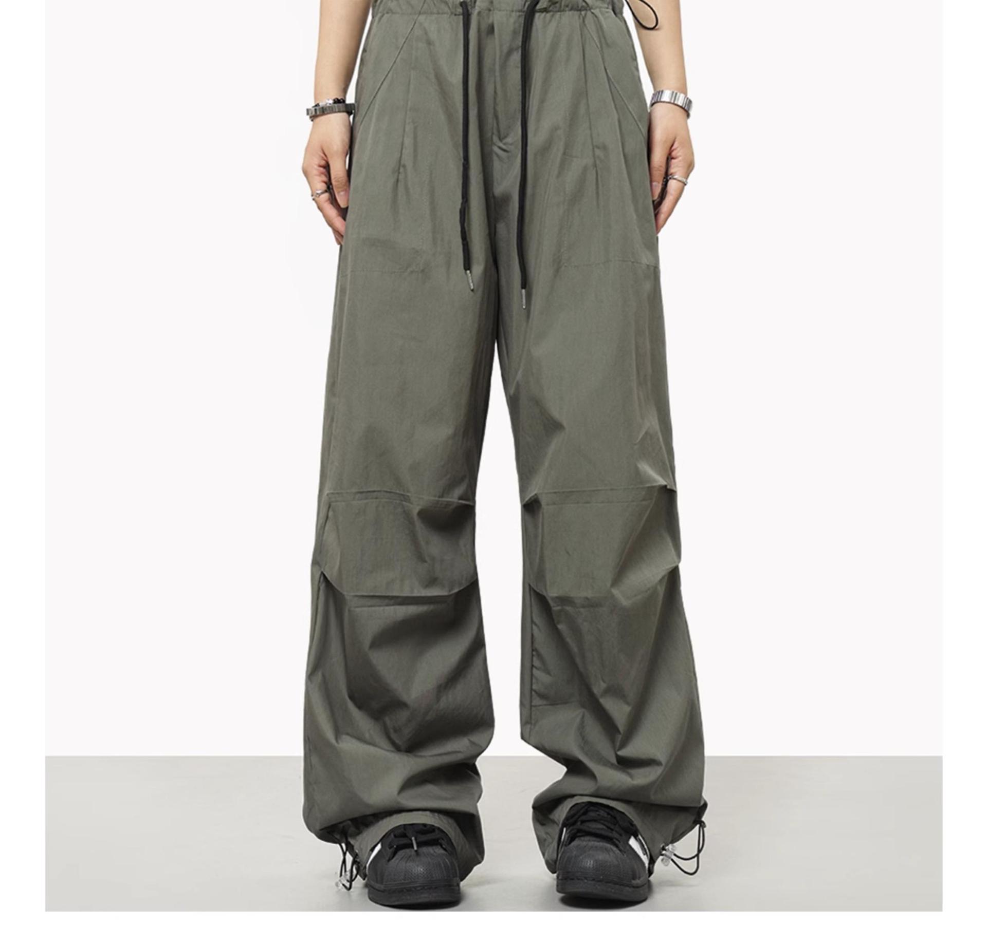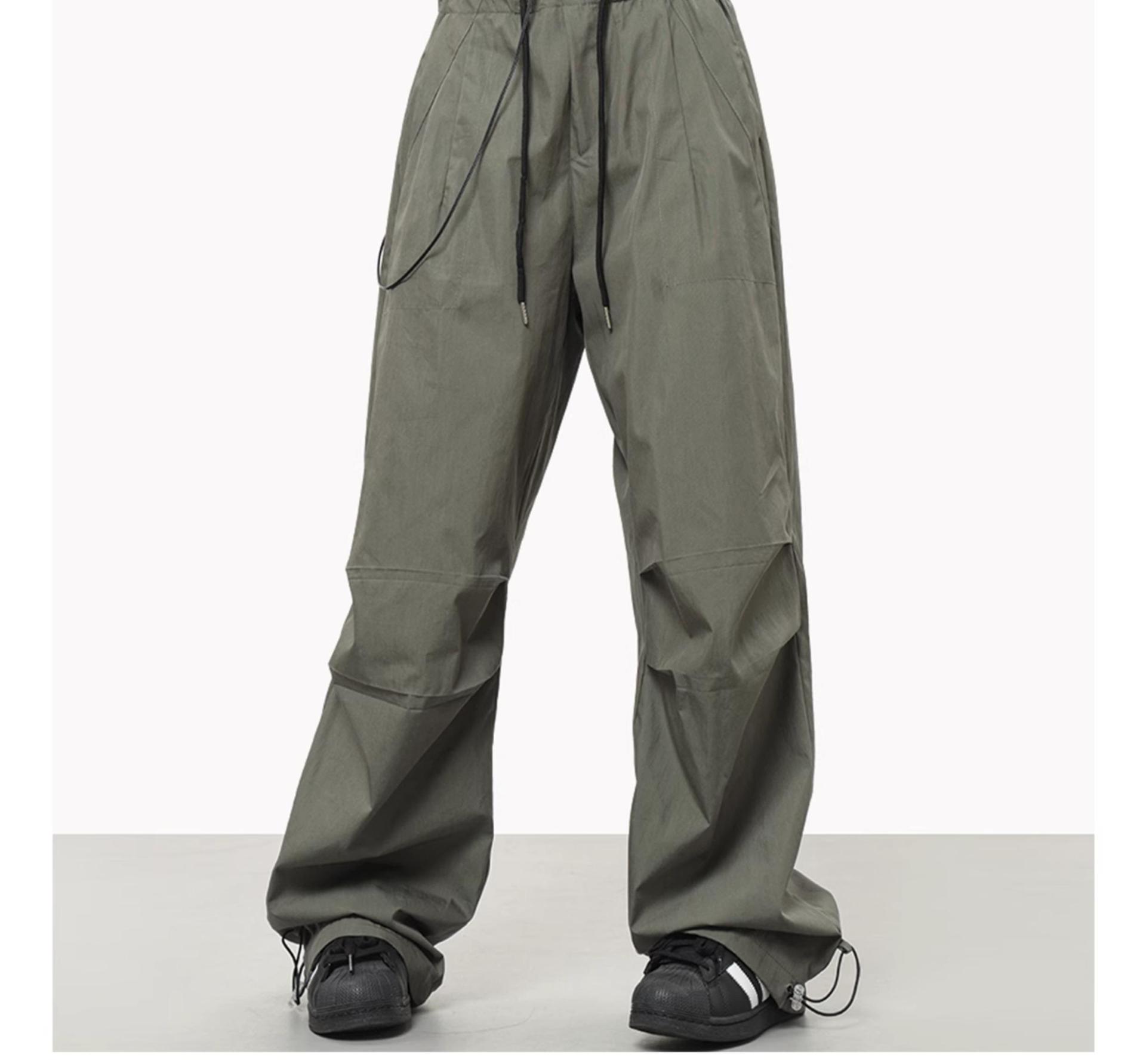 해외 무역 국경 미국 와이드 레그 낙하산 병 남성과 여성을위한 작업복 바지 느슨한 레트로 캐주얼 충전 바지 여름 얇은 하이 스트리트