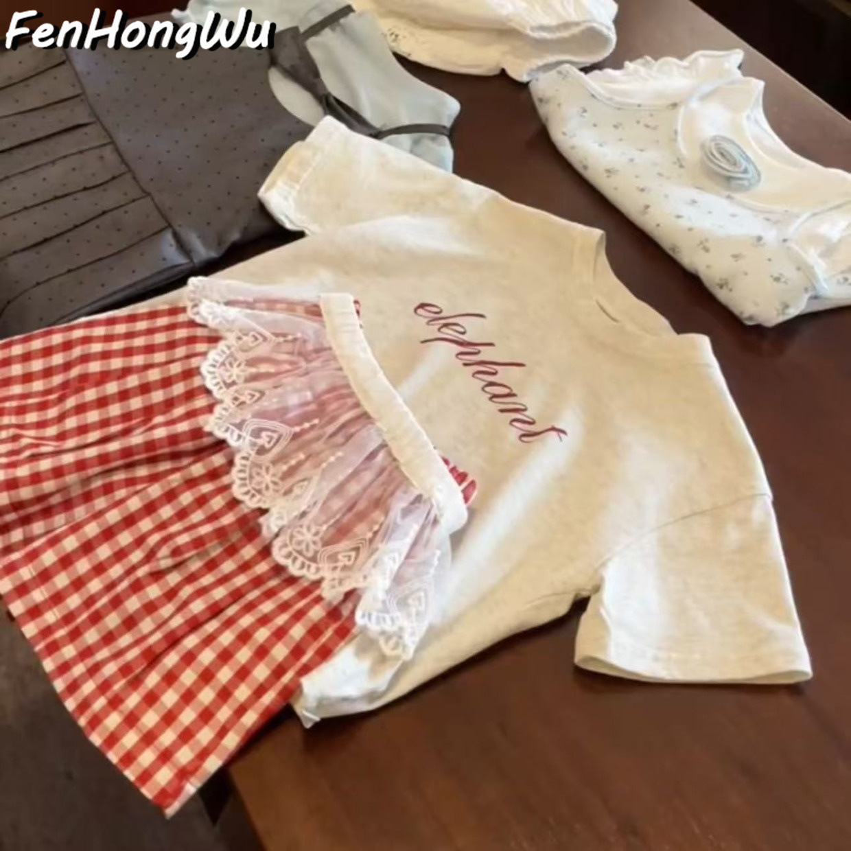 [핑크 집] 여자 여름 세트 빨간 격자 무늬 방귀 커튼 반바지 세련 된 투피스 한국 캐주얼