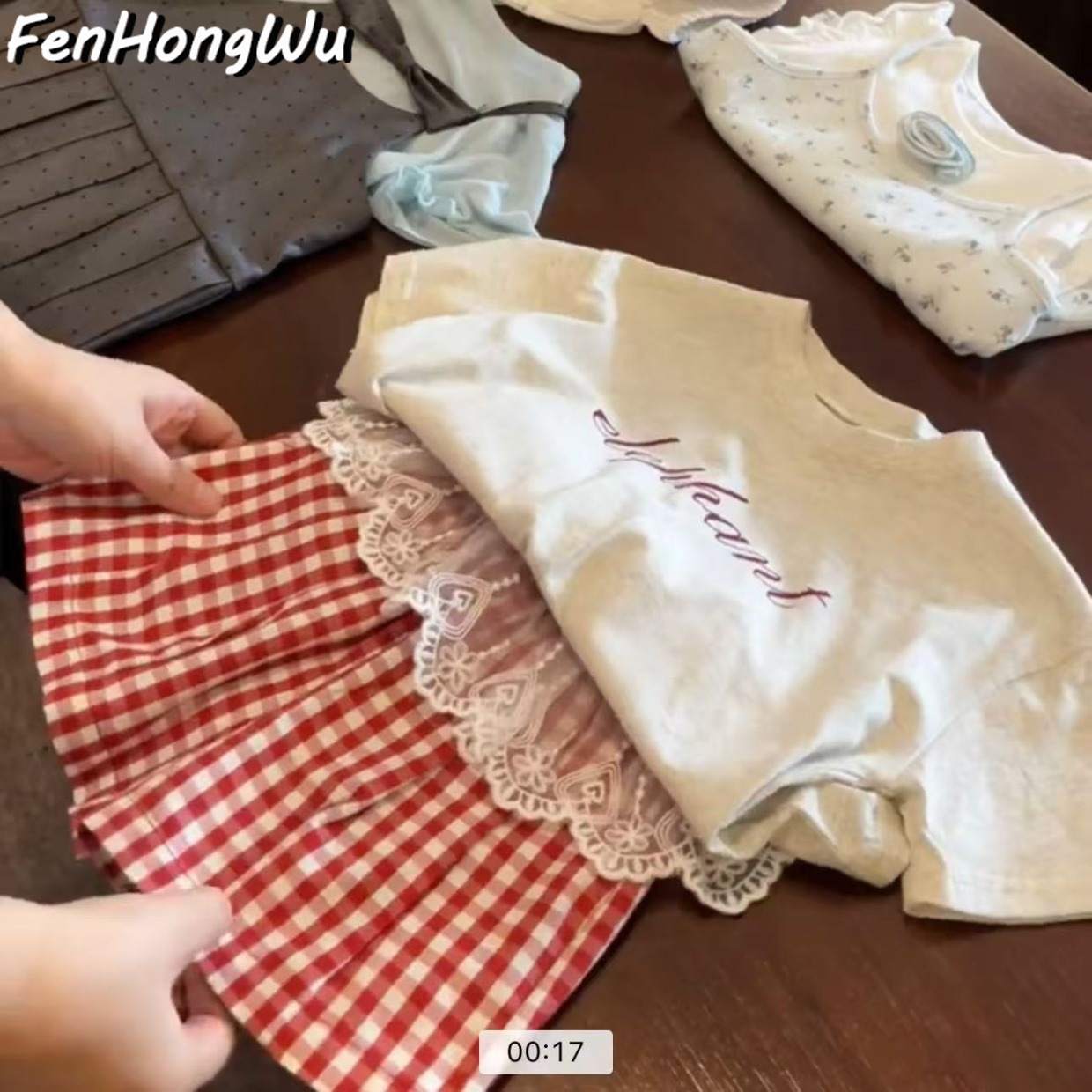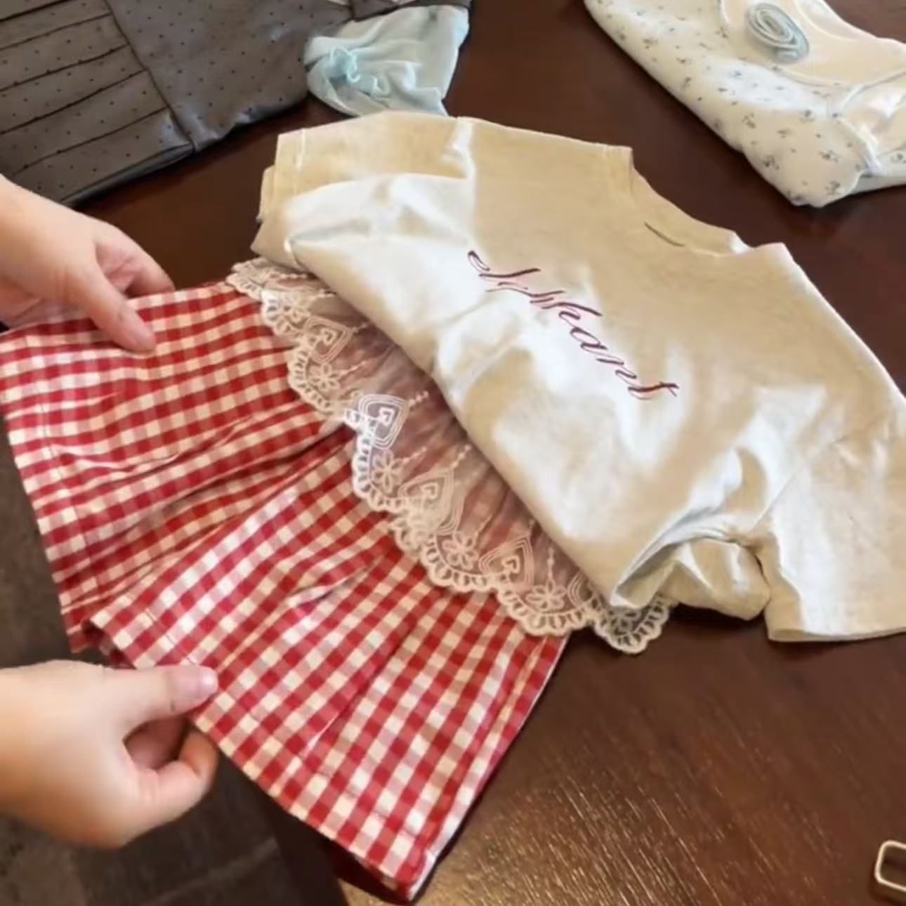 [핑크 집] 여자 여름 세트 빨간 격자 무늬 방귀 커튼 반바지 세련 된 투피스 한국 캐주얼스토어 가기
