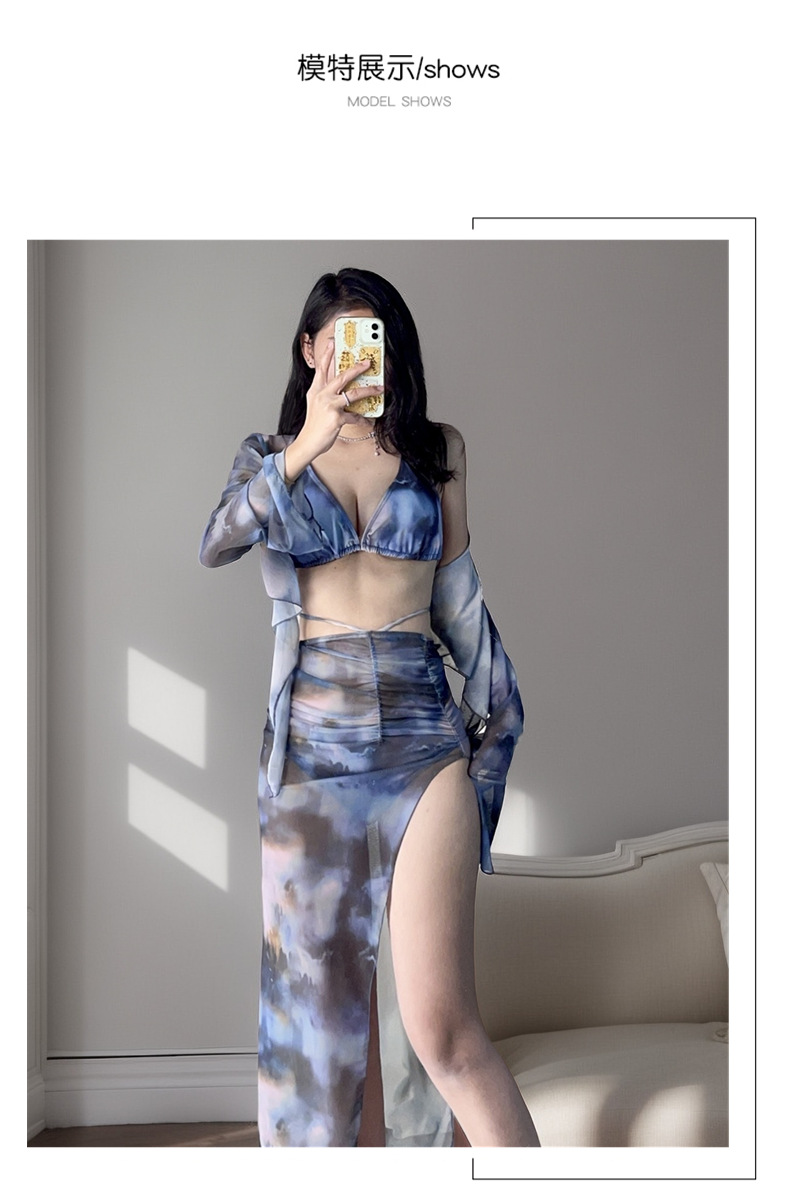 수영복 여성 비키니 섹시 4 피스 세트 한국식 슈퍼 페어리 핫 걸 작은 가슴 모임 하이 엔드 온천 수영복