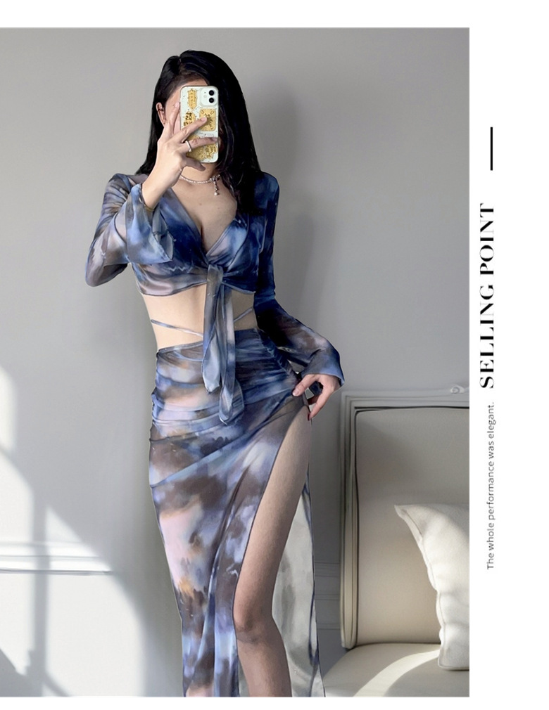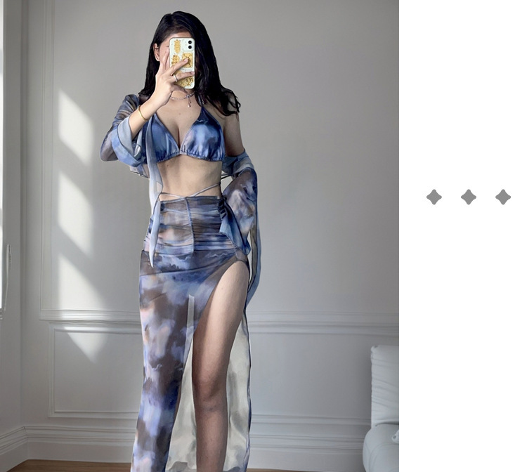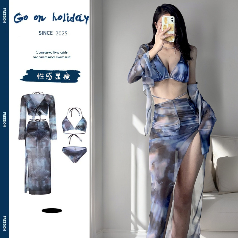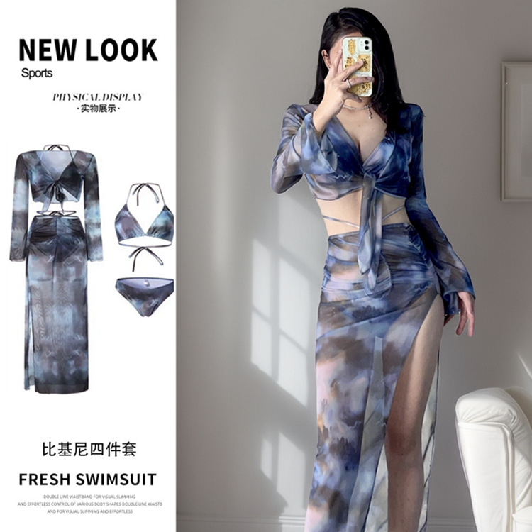 수영복 여성 비키니 섹시 4 피스 세트 한국식 슈퍼 페어리 핫 걸 작은 가슴 모임 하이 엔드 온천 수영복스토어 가기