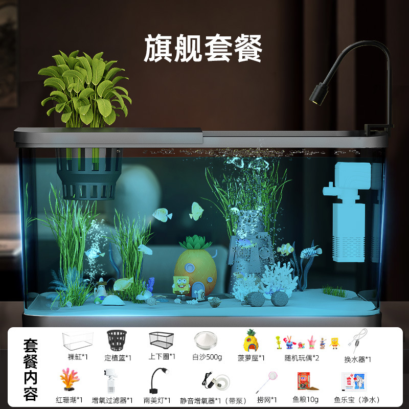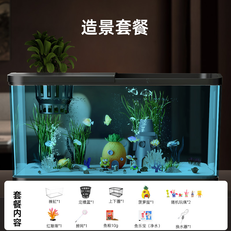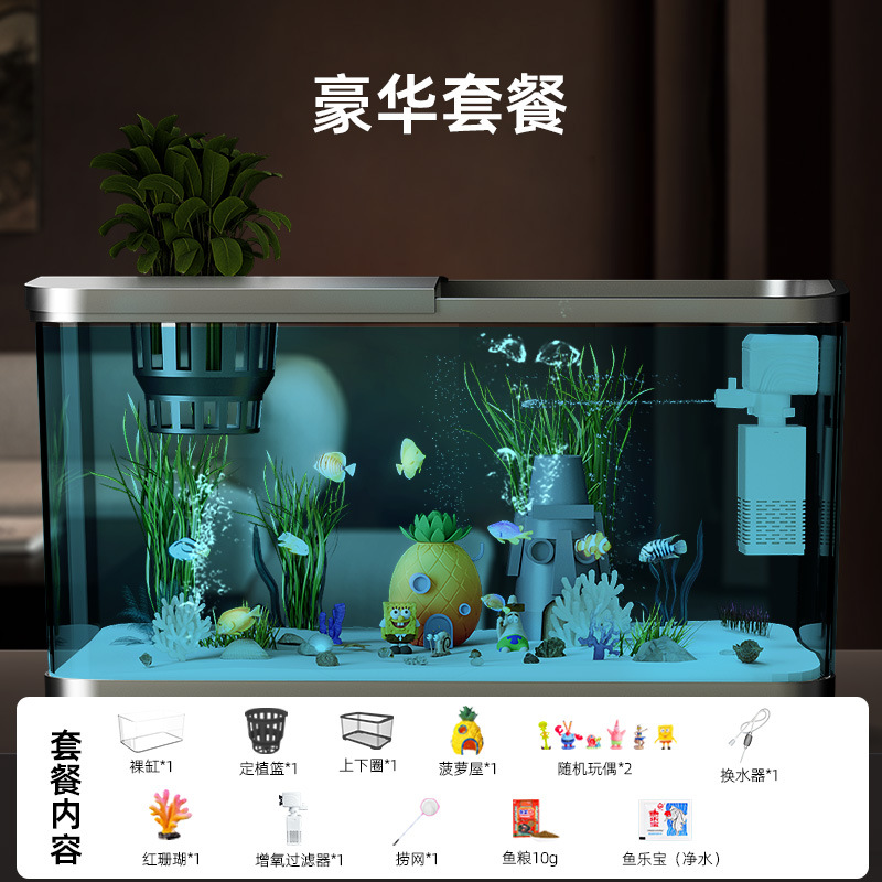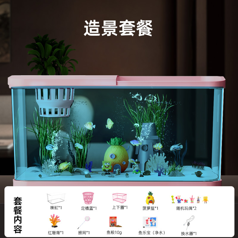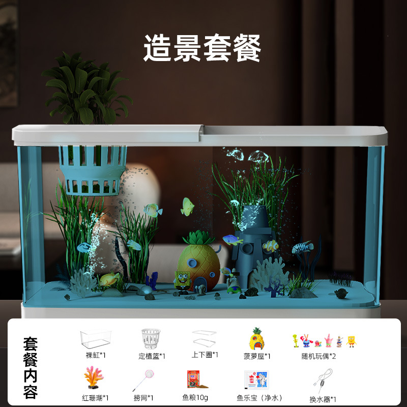 필터 산소 발생기 일체형 만화 생태 조경이 있는 수조 작은 거실 가정용 아크릴 데스크탑 관상 수조스토어 가기