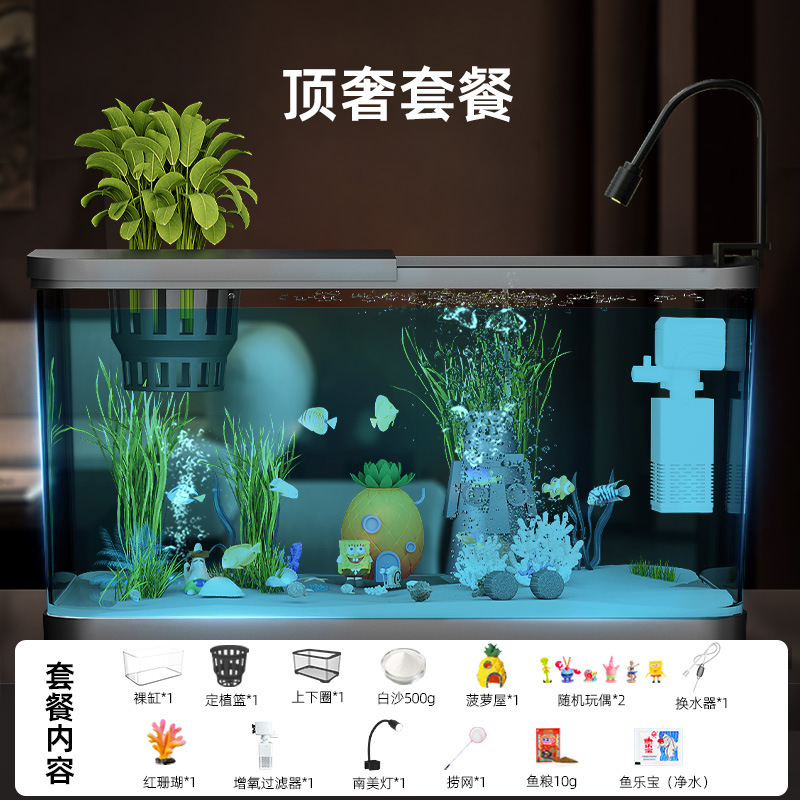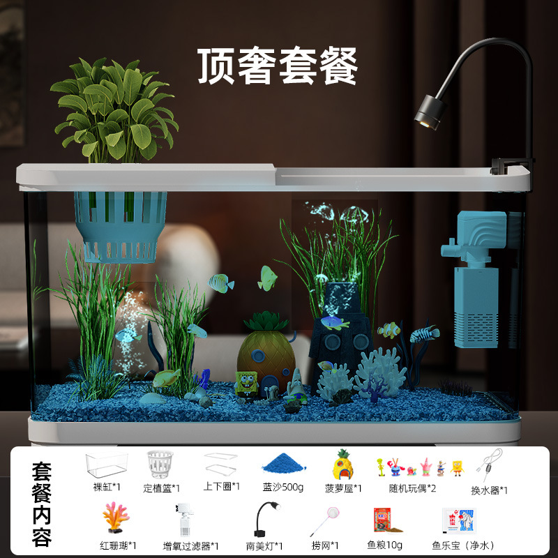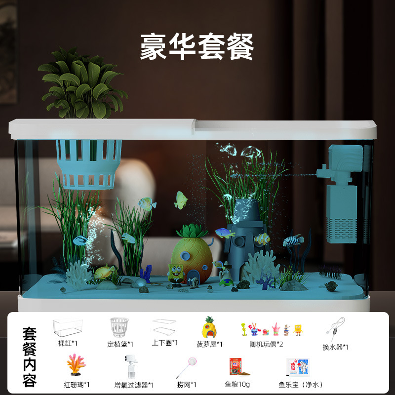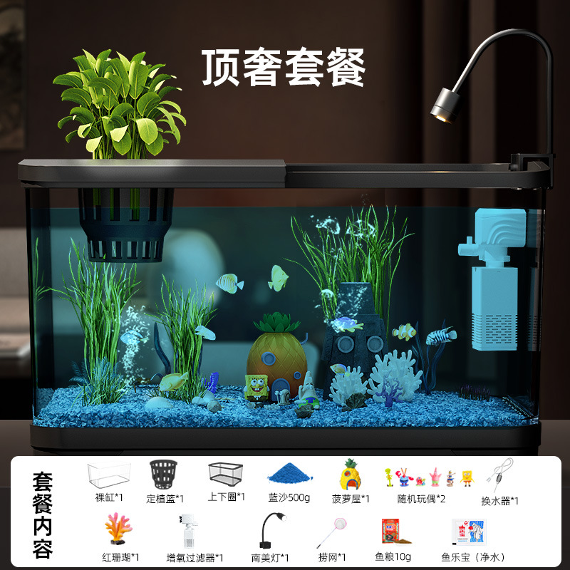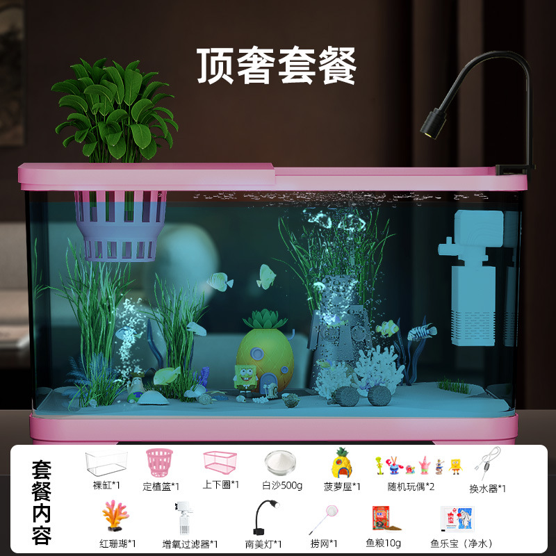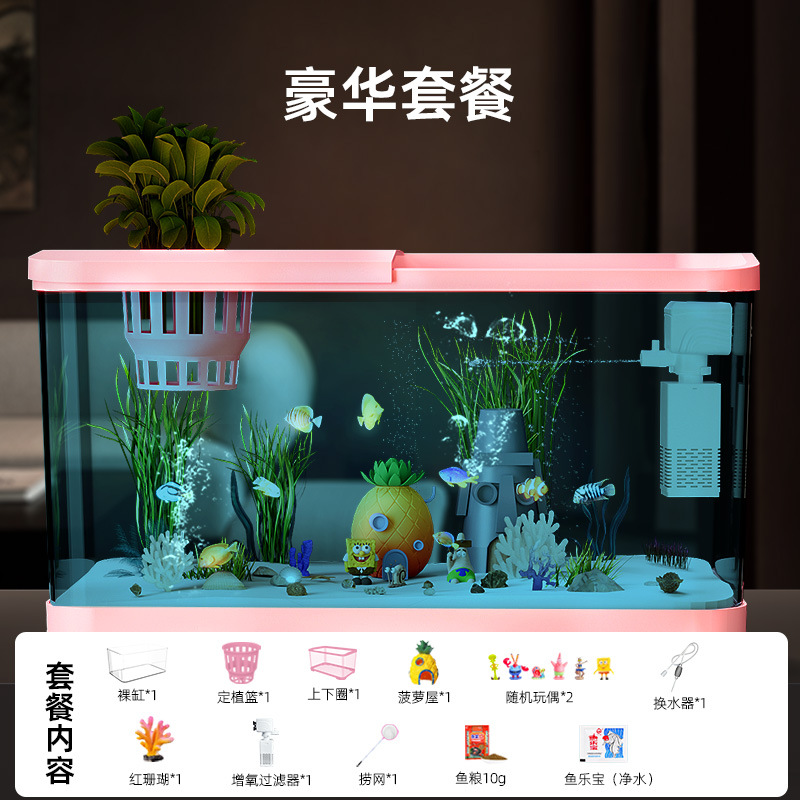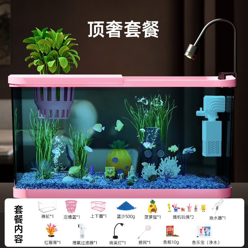 필터 산소 발생기 일체형 만화 생태 조경이 있는 수조 작은 거실 가정용 아크릴 데스크탑 관상 수조