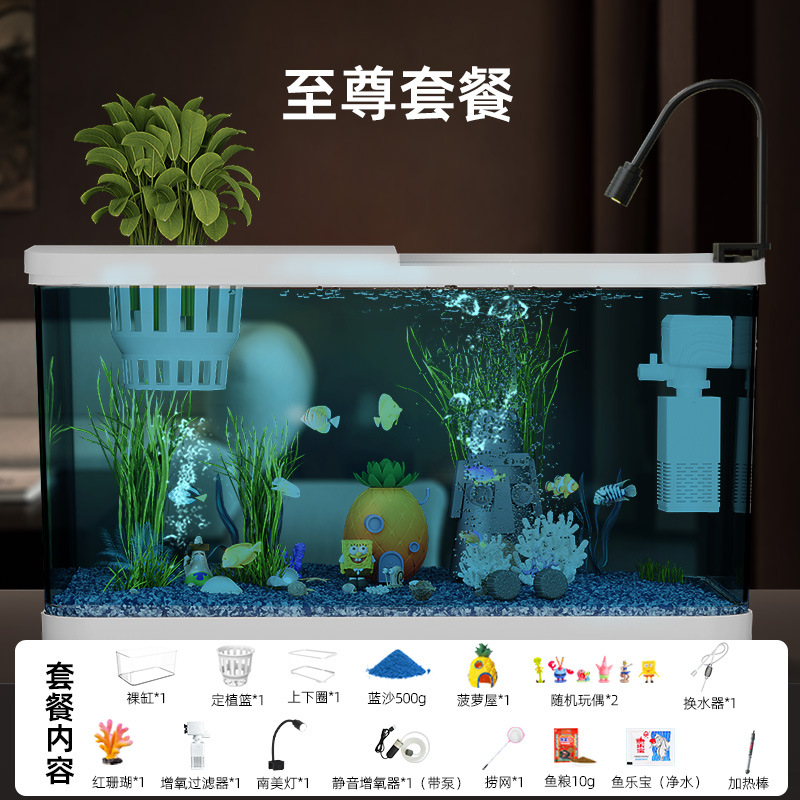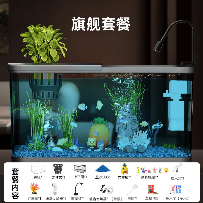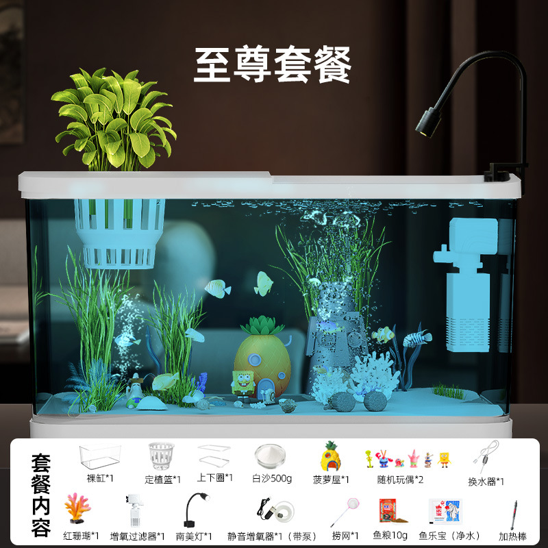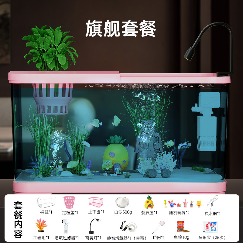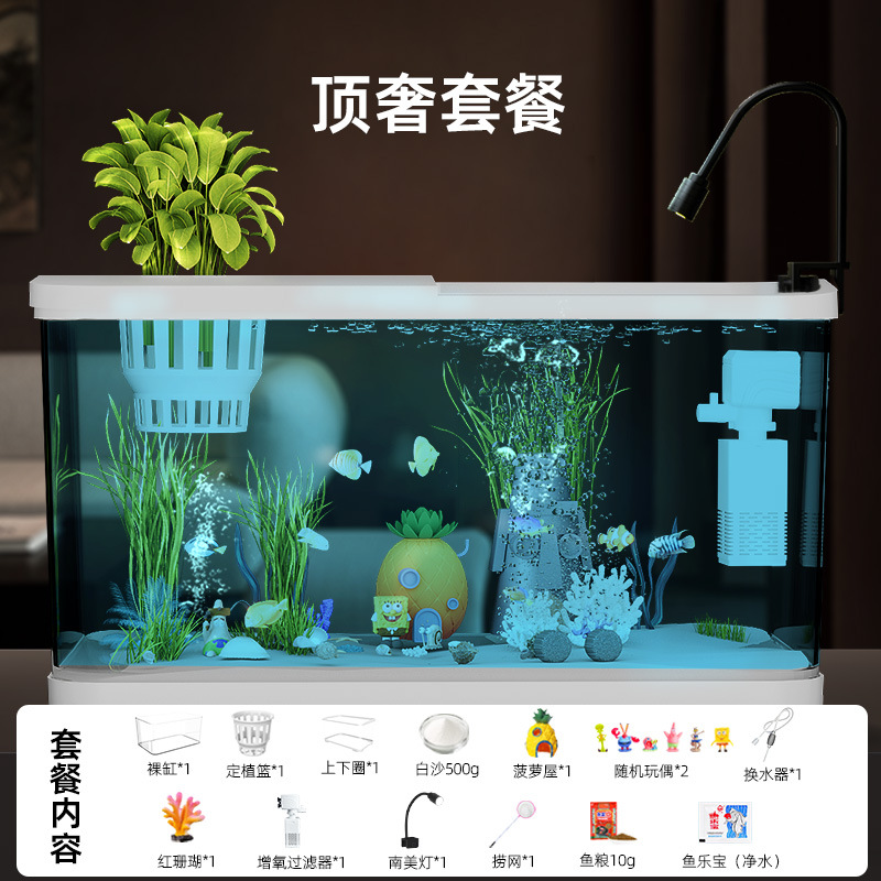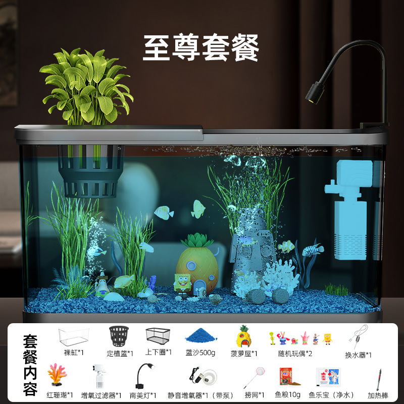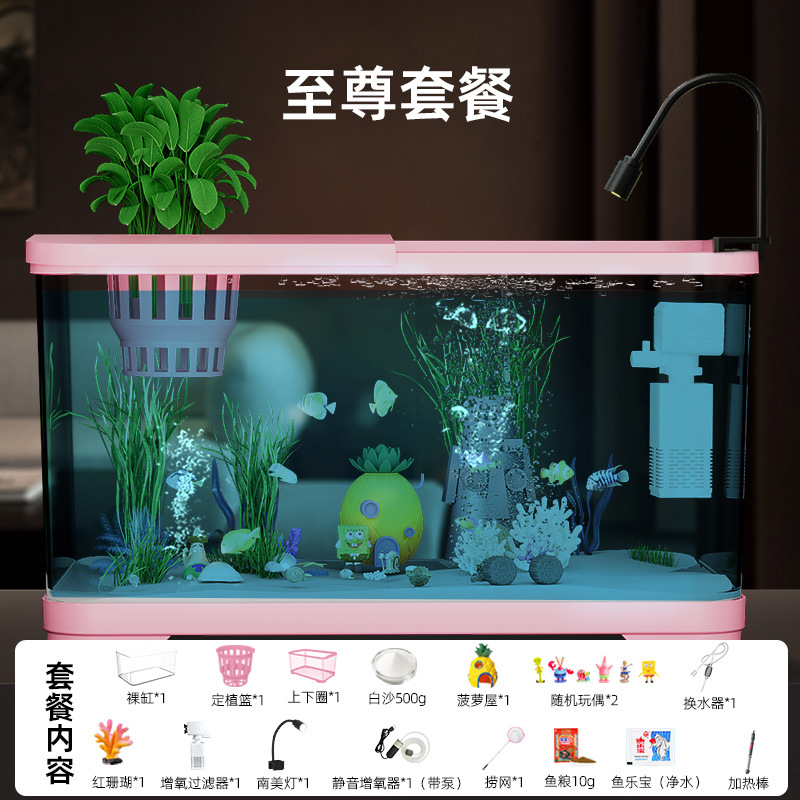 필터 산소 발생기 일체형 만화 생태 조경이 있는 수조 작은 거실 가정용 아크릴 데스크탑 관상 수조