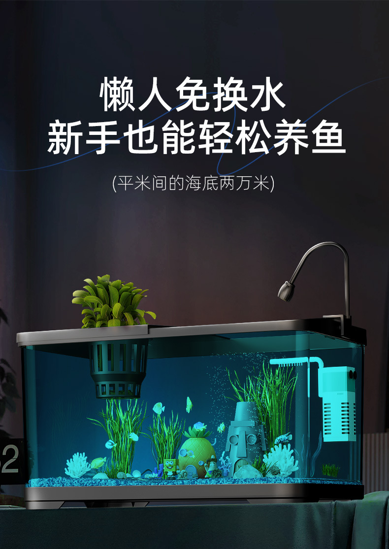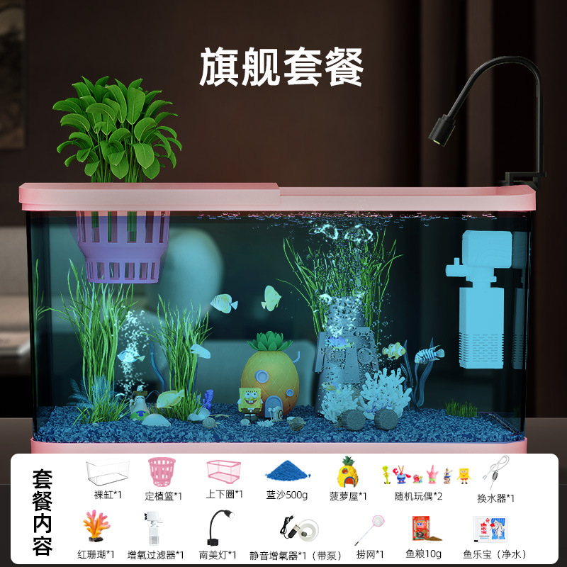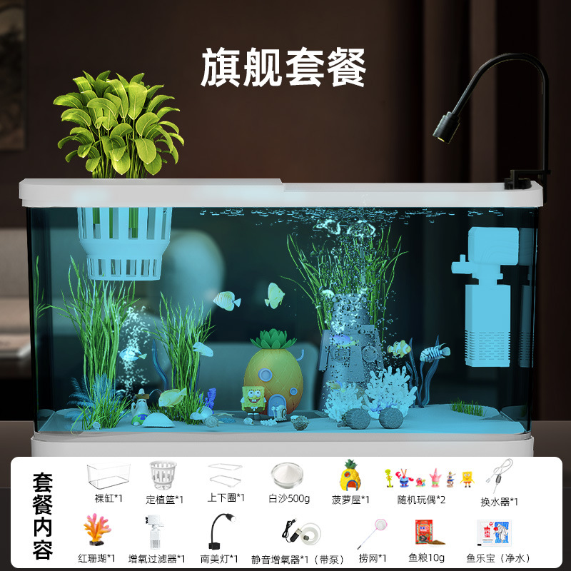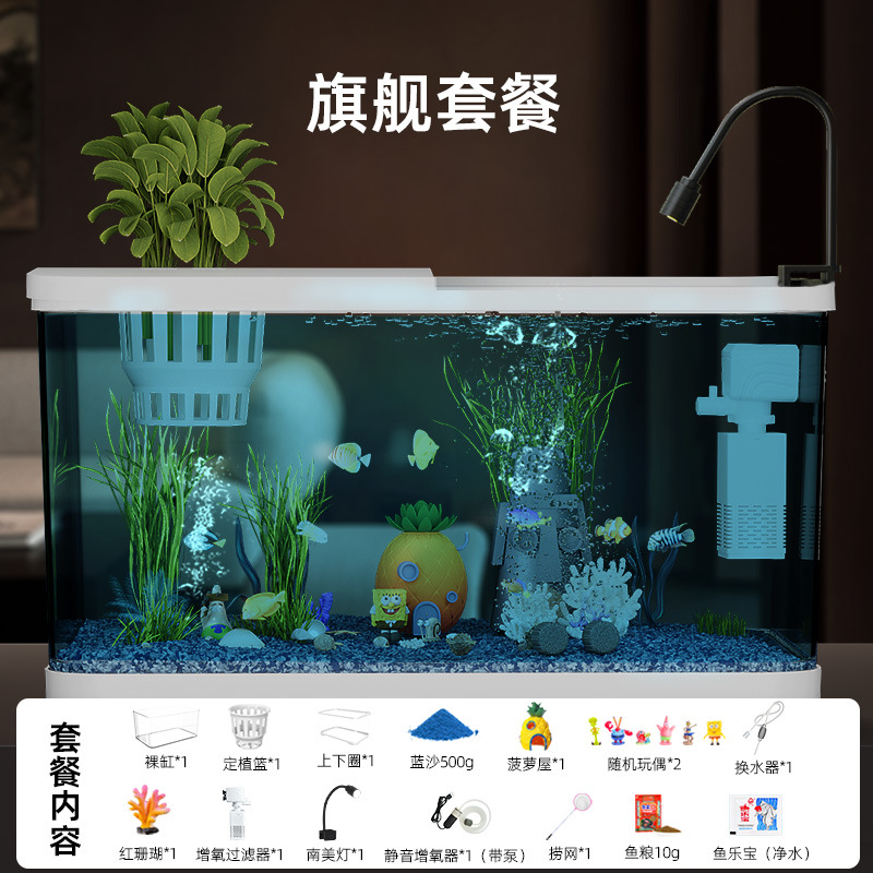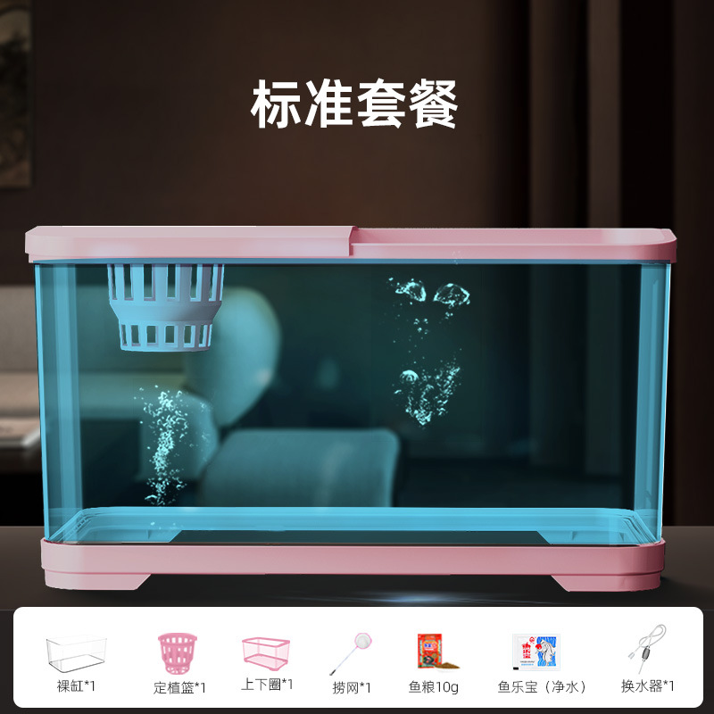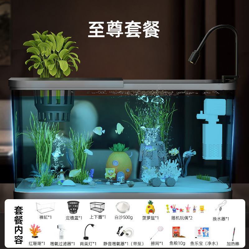 필터 산소 발생기 일체형 만화 생태 조경이 있는 수조 작은 거실 가정용 아크릴 데스크탑 관상 수조