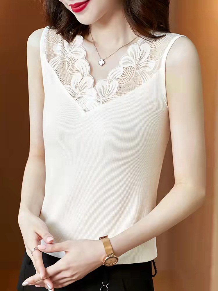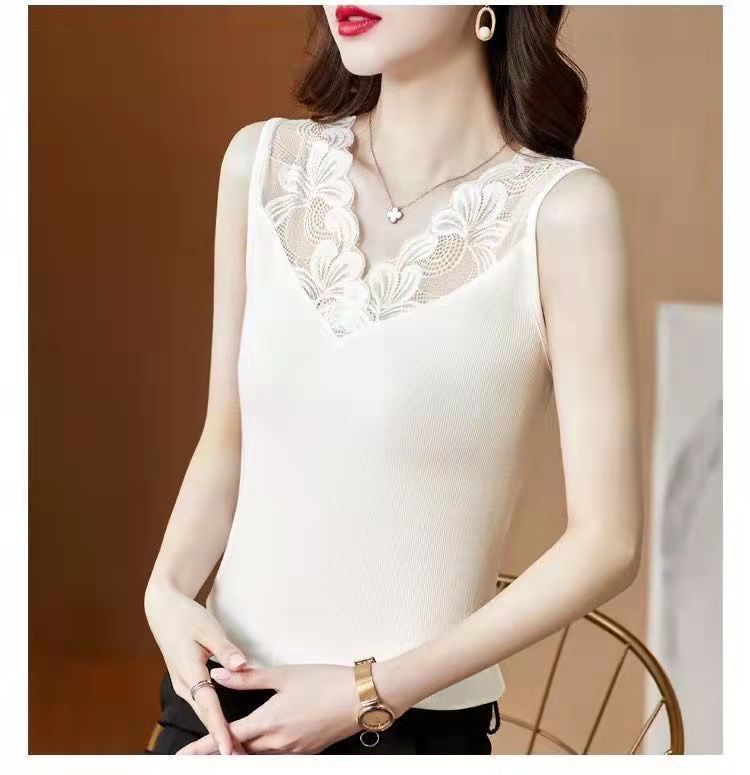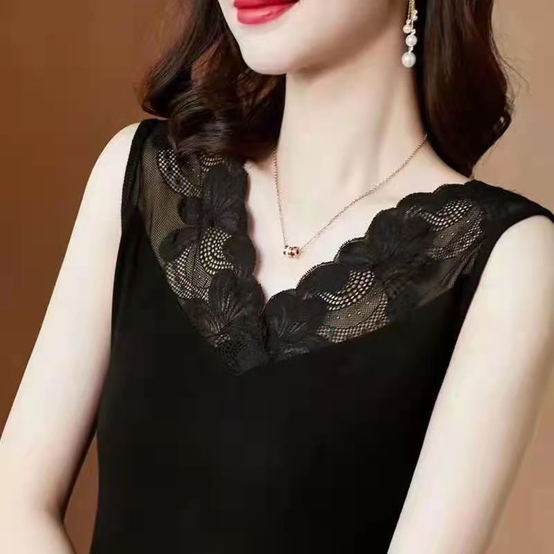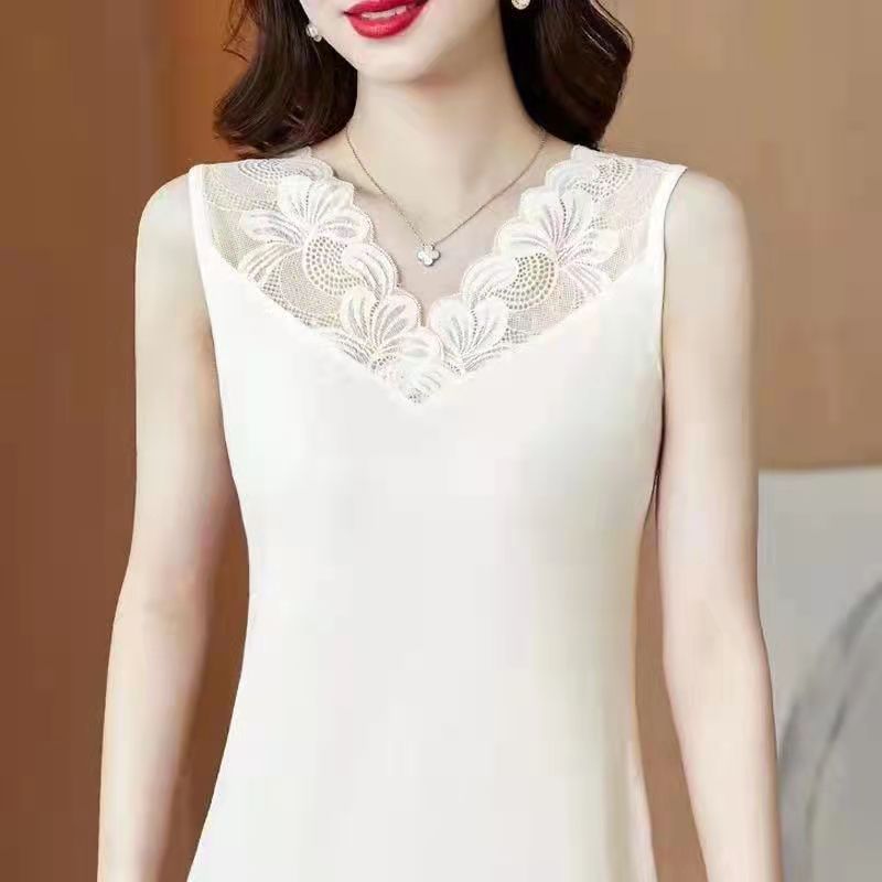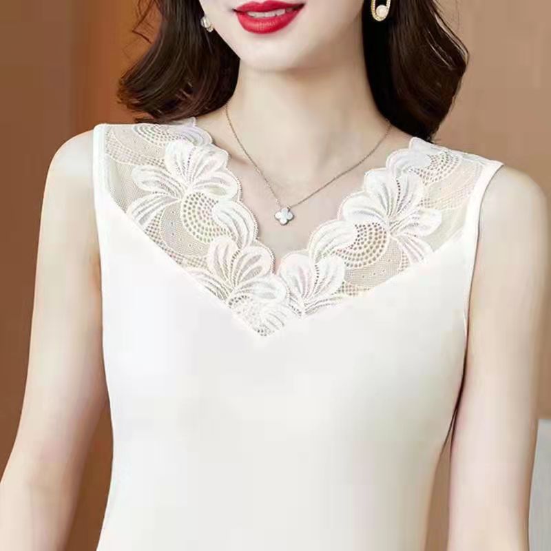모달 봄과 여름 카미솔 여성용 플러스 사이즈 내복 슬림 핏 V 넥 레이스 민소매 조끼 베이스 셔츠