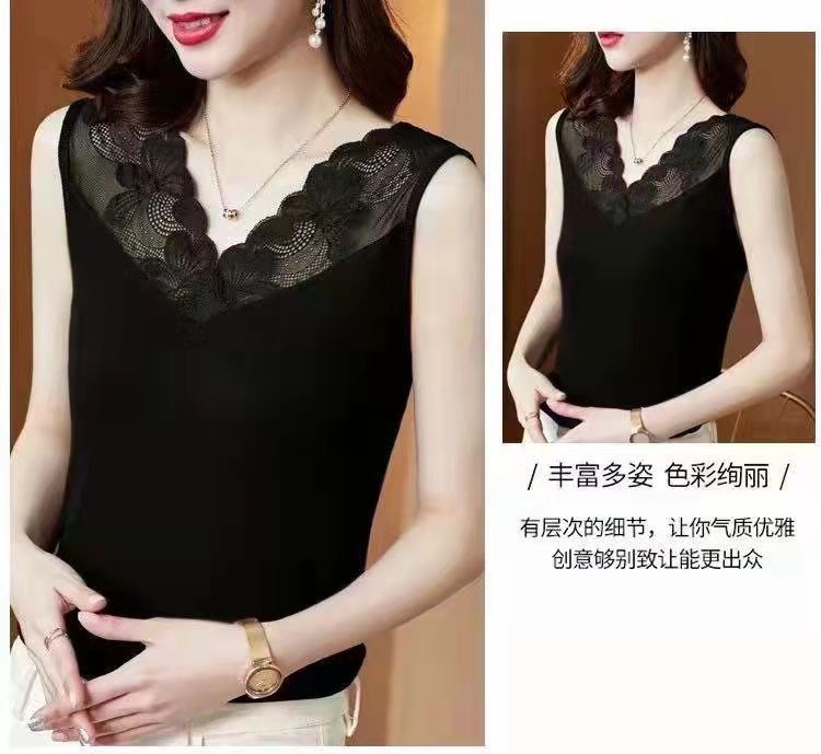 모달 봄과 여름 카미솔 여성용 플러스 사이즈 내복 슬림 핏 V 넥 레이스 민소매 조끼 베이스 셔츠스토어 가기