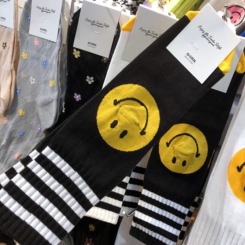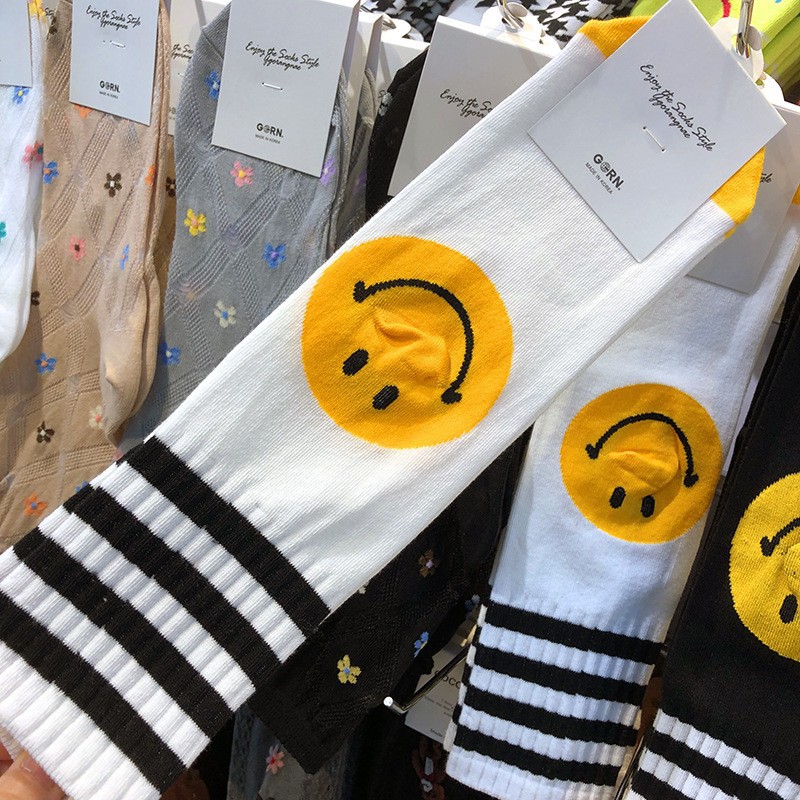 한국 동대문 양말 치유 스마일리 가리 양말 대학 스타일 줄무늬 면 양말스토어 가기
