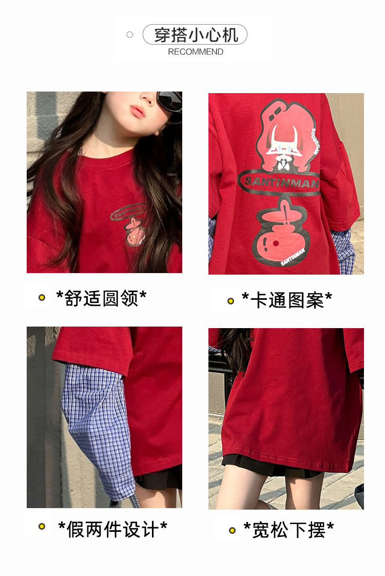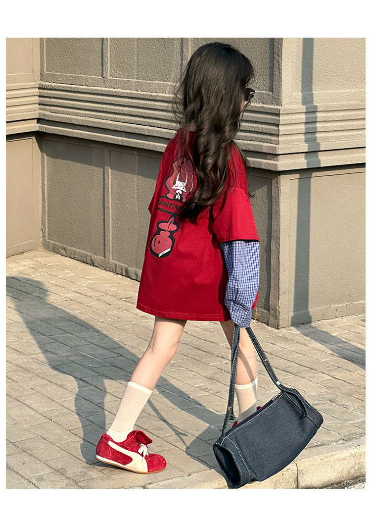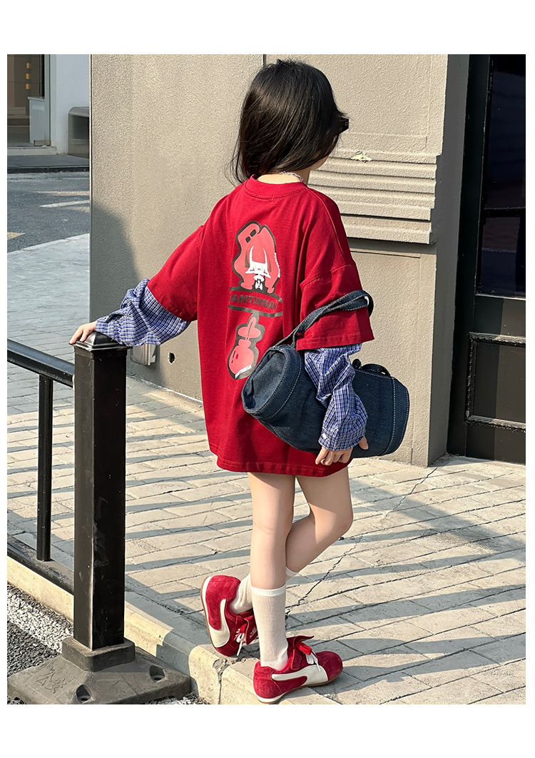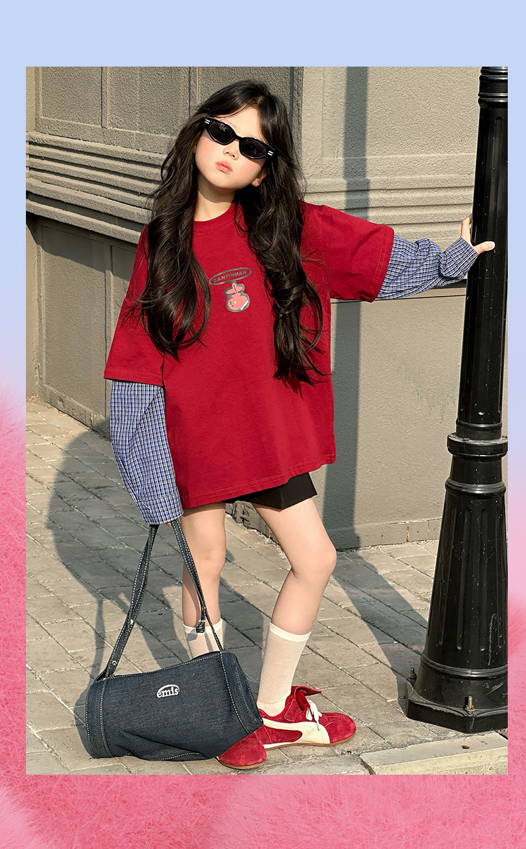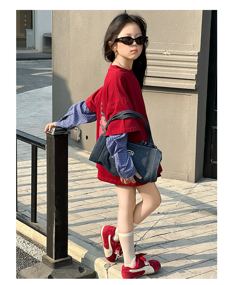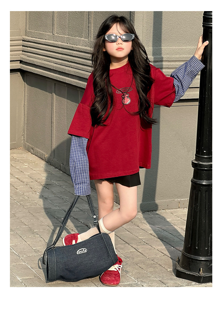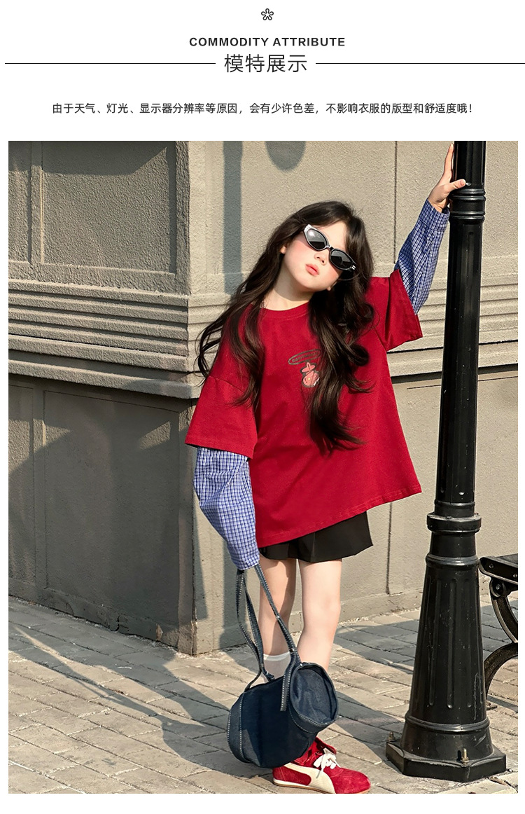 소녀 긴팔 티셔츠 봄과 가을 2025 새로운 어린이 봄 원피스 기지 셔츠 빅 보이 걸스 가짜 투피스 탑 T 트렌디스토어 가기