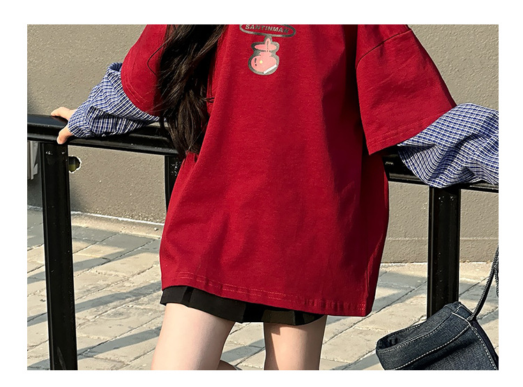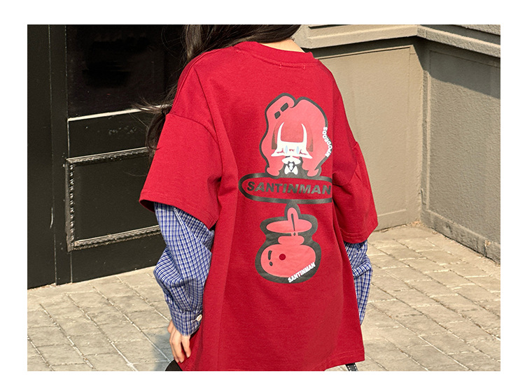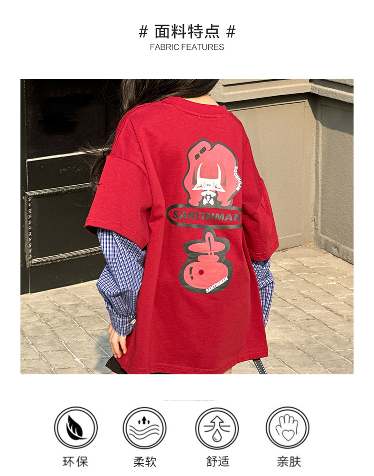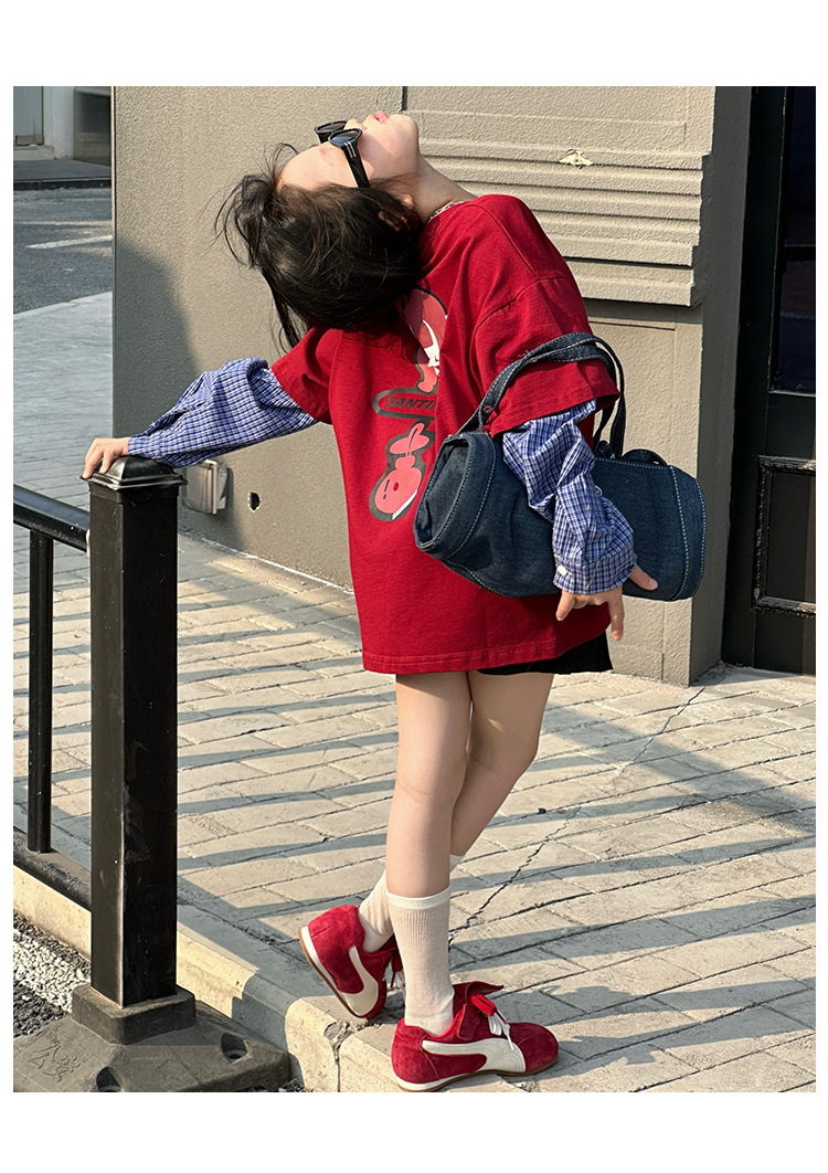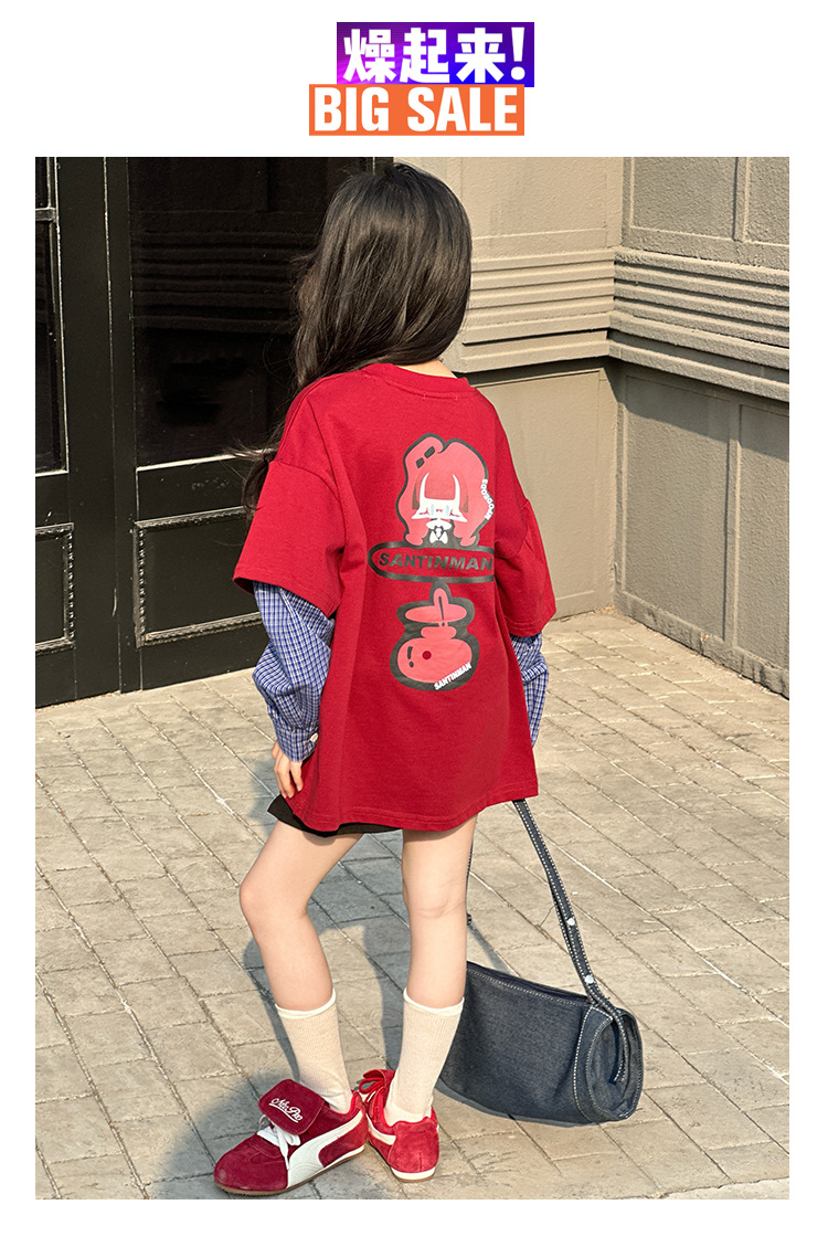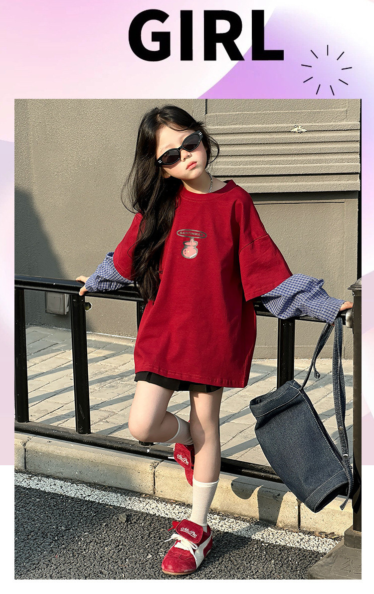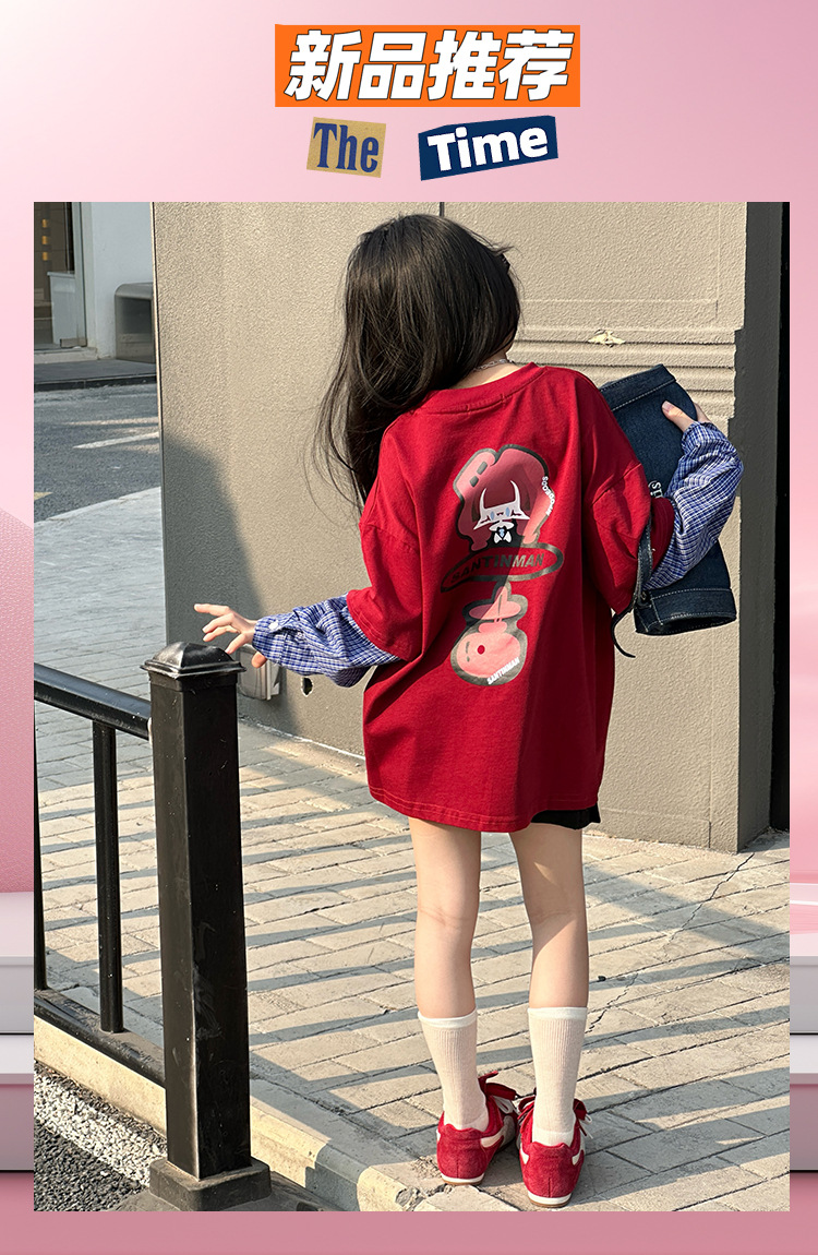 소녀 긴팔 티셔츠 봄과 가을 2025 새로운 어린이 봄 원피스 기지 셔츠 빅 보이 걸스 가짜 투피스 탑 T 트렌디스토어 가기