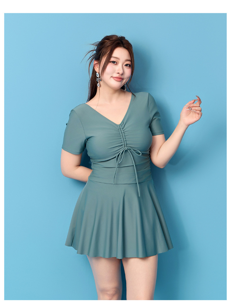 2025 새로운 수영복 여성 통통녀 플러스 사이즈 보수적 인 배꼽 커버 슬림 핏 바디 스커트 플랫 코너 온천 휴가 수영복스토어 가기