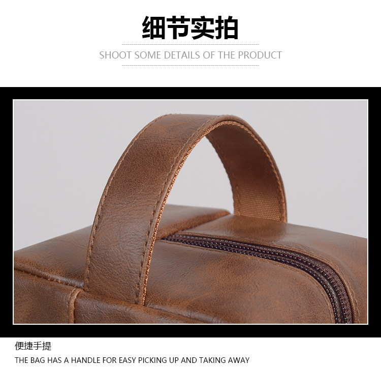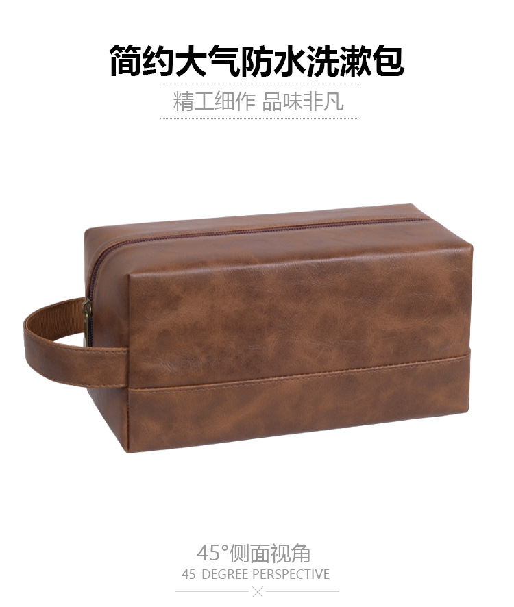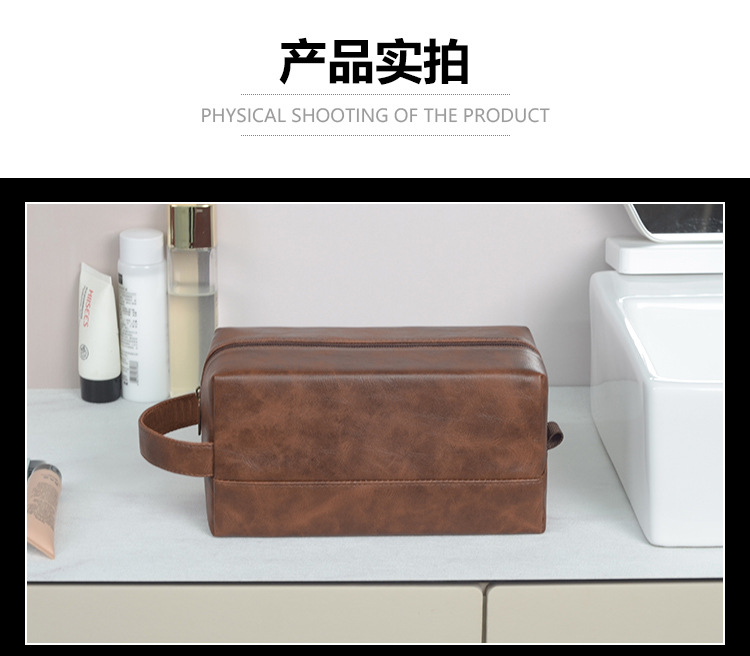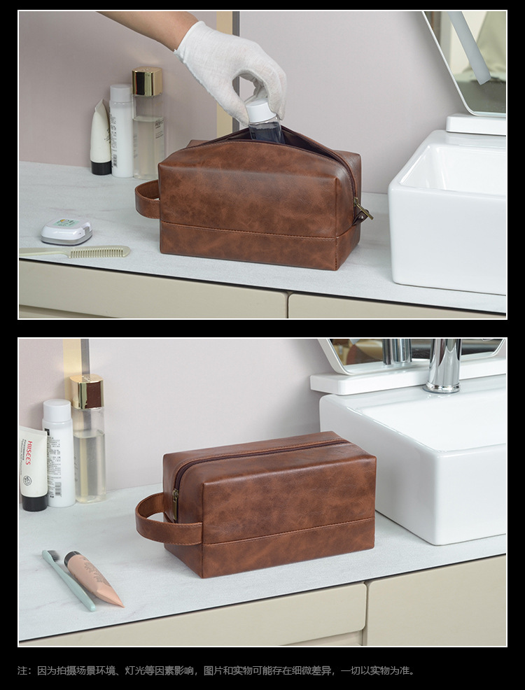 국경 간 뜨거운 판매 레트로 PU 가죽 화장실 가방 대용량 남성 스킨 케어 보관 가방 휴대용 여행 화장실 가방스토어 가기