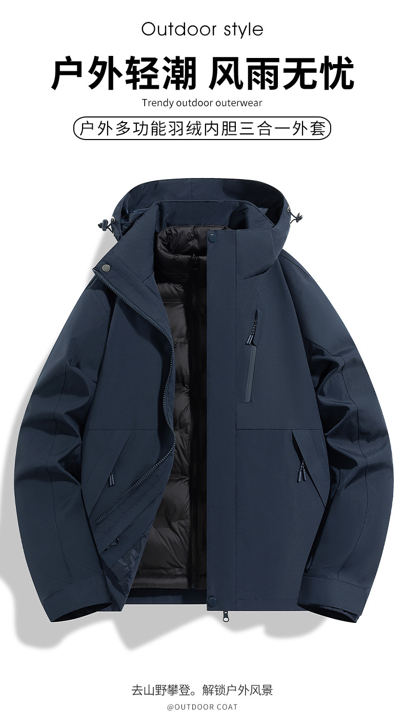 카멜 색상 다운 3-in-1 후드 재킷 등산복 야외 방풍 재킷 겨울 남녀 공용 맞춤 제작스토어 가기