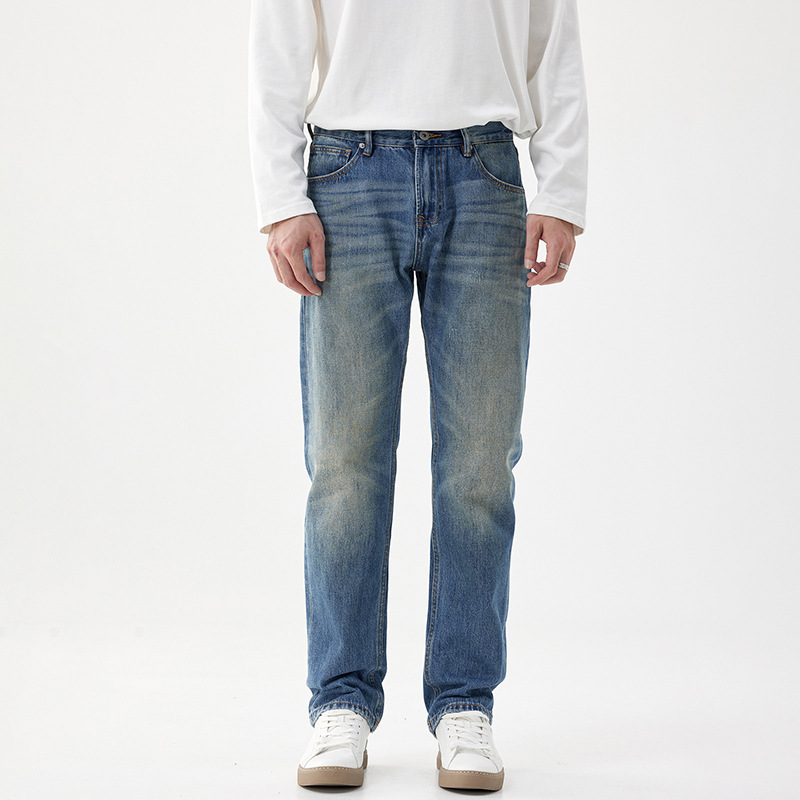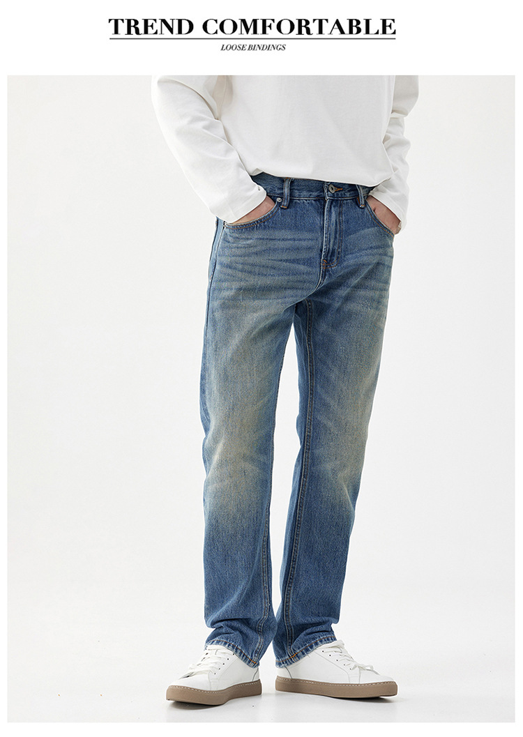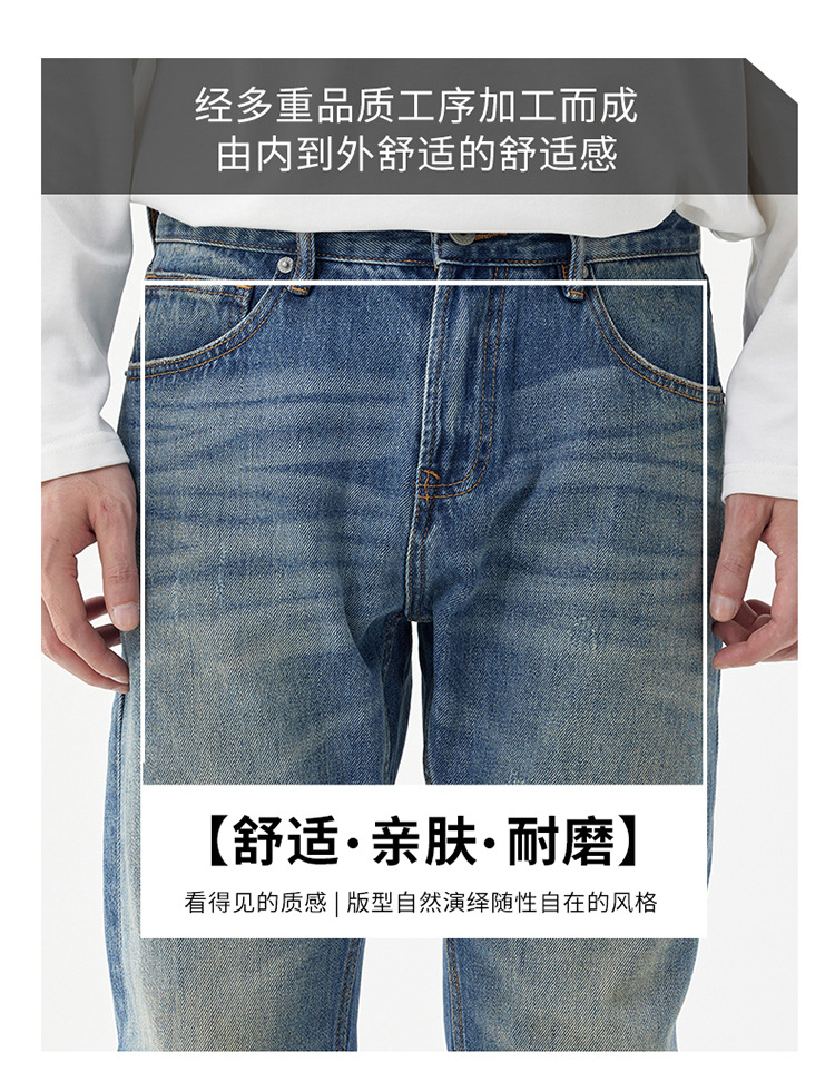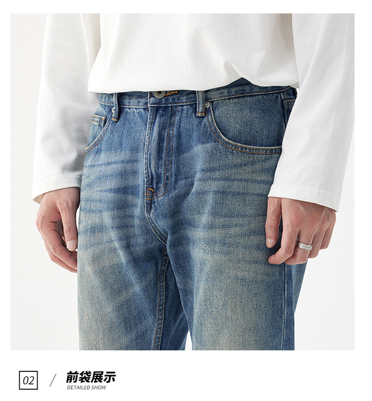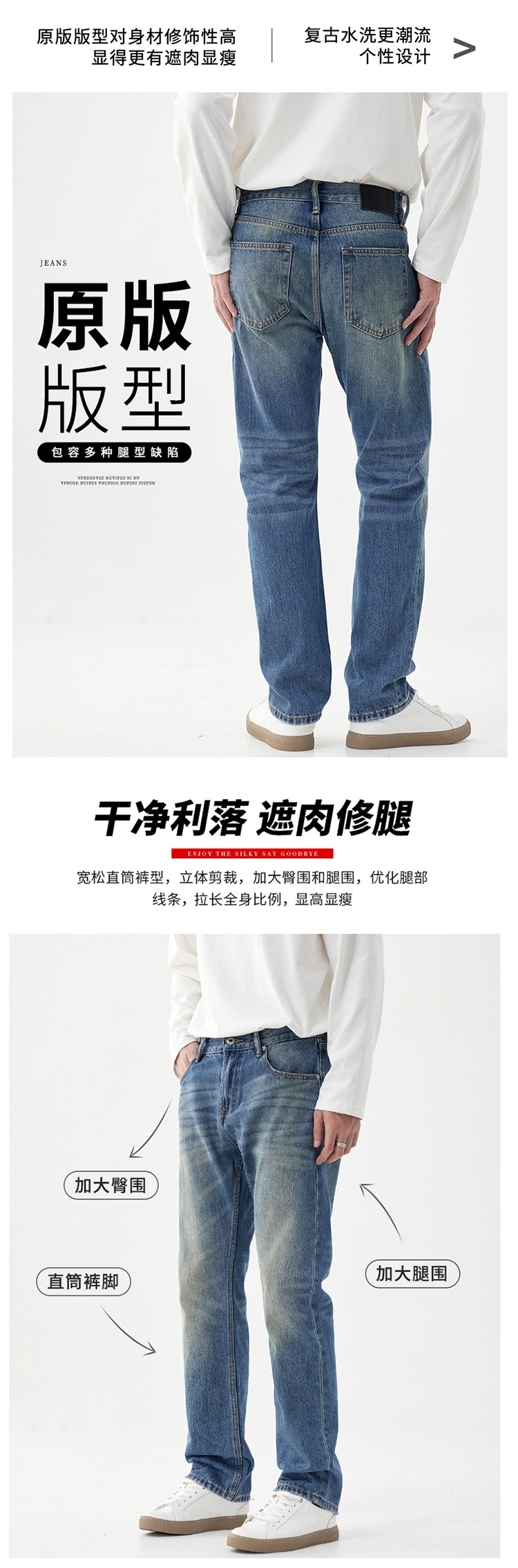 유럽과 미국의 하이 엔드 트렌디 브랜드 레트로 올드 세탁 청바지 남자 루즈 스트레이트 트렌디 올 매치 가을 및 겨울 새로운 도착스토어 가기