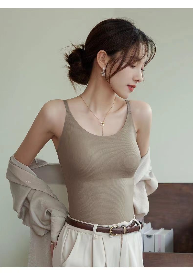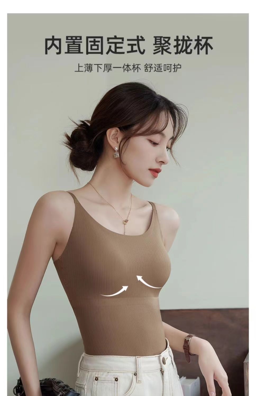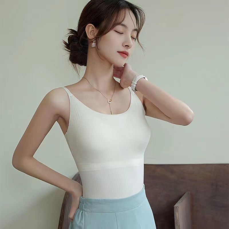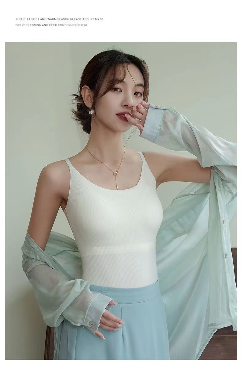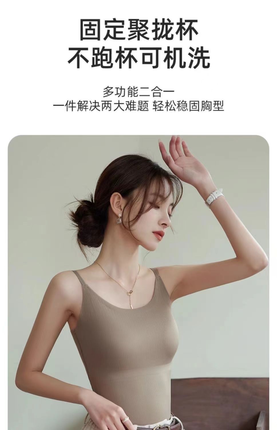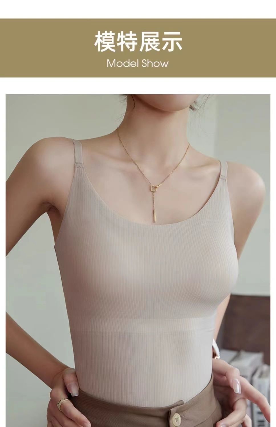 스트라이프 브라 통합 외부 마모 [가슴 패드 포함] 충격 방지 고정 통합 컵 조정 가능한 스포츠 조끼 외부 착용 백스토어 가기