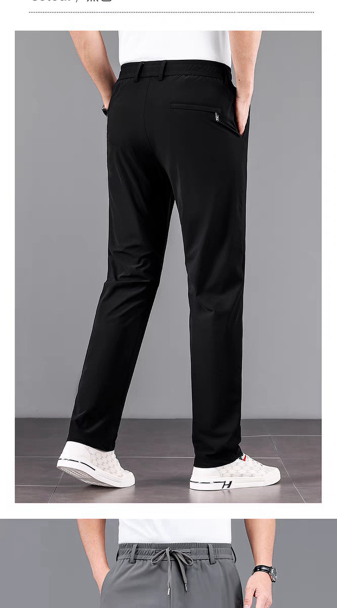 아이스 실크 여름 얇은 남성 탄성 여름 캐주얼 바지 느슨한 높은 탄성 스트레이트 남편 착용 스포츠 탄성 남자 바지스토어 가기