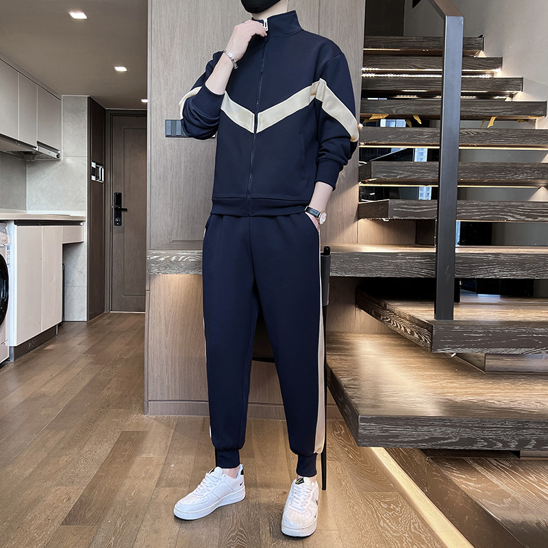 봄과 가을 스포츠 세트 남자 카디건 수직 칼라 스웨터 대외 무역 캐주얼 세트 남자 트렌디 올매치 2 피스 크로스 보더 세트스토어 가기