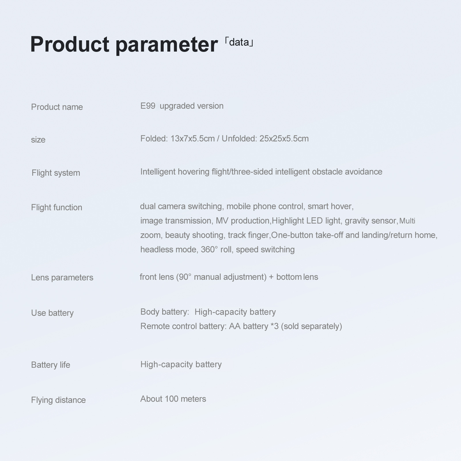국경 간 E99 프로 드론 HD 항공 사진 싱글 및 더블 카메라 원격 제어 항공기 쿼드 콥터 드론