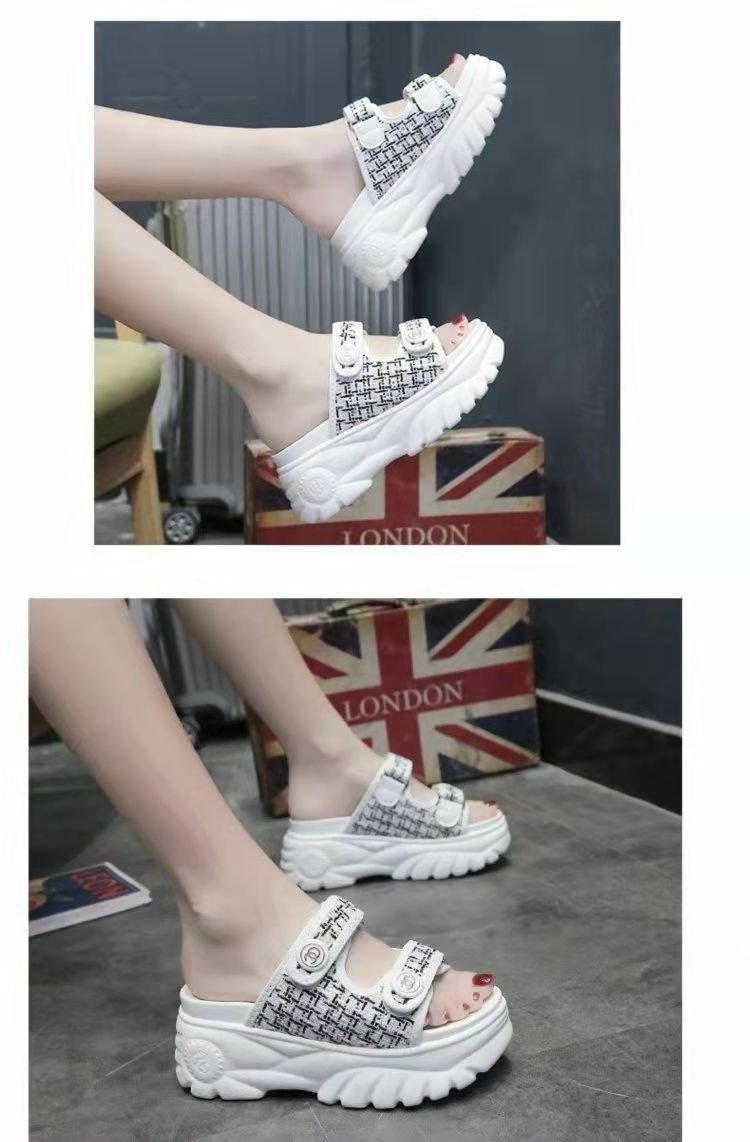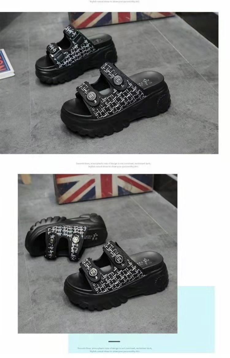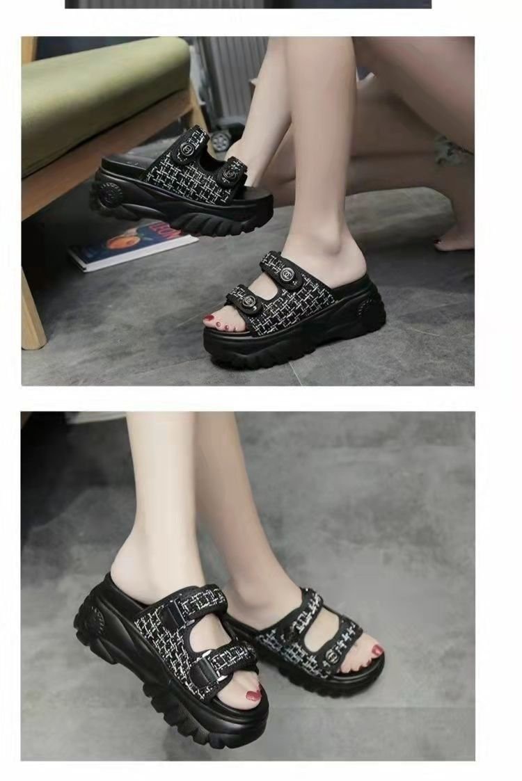 두꺼운 밑창 슬리퍼 여성 여름 야외 2025 새로운 웨지 힐 플랫폼 하단 벨크로 샌들 학생들이 비치 슈즈를 높입니다.스토어 가기
