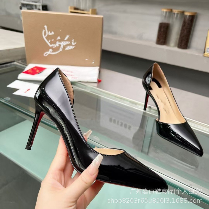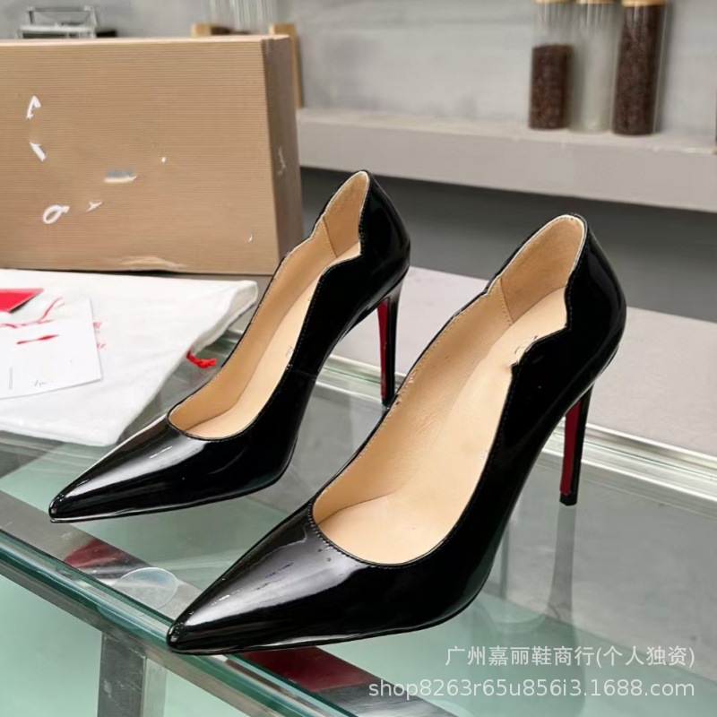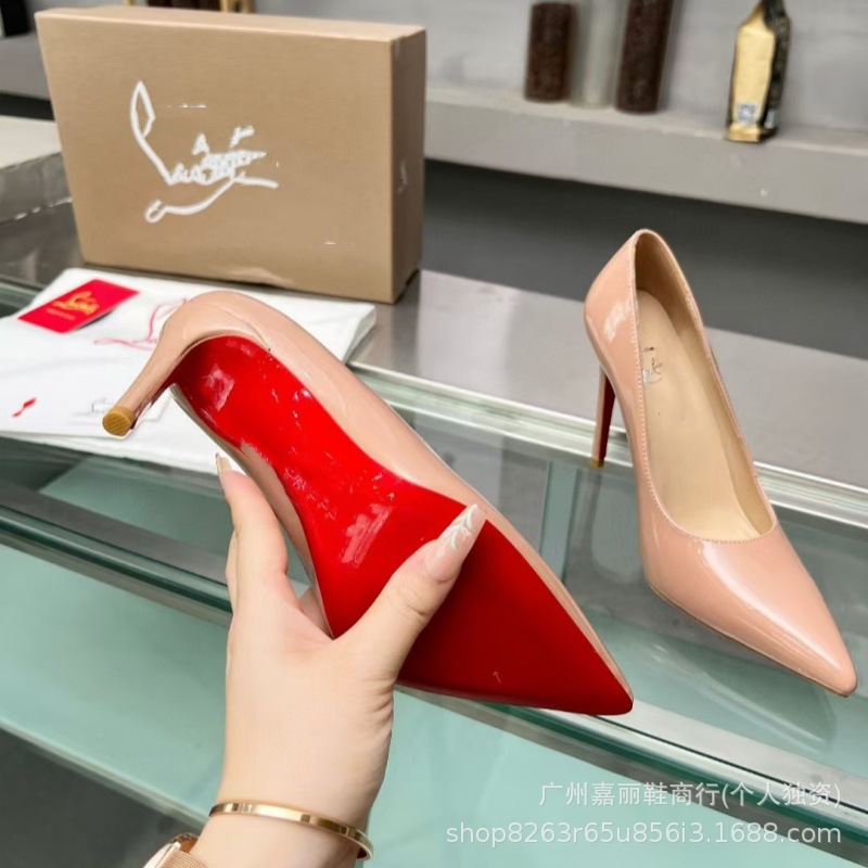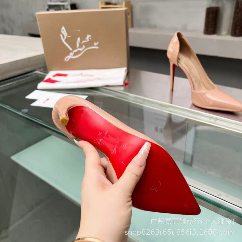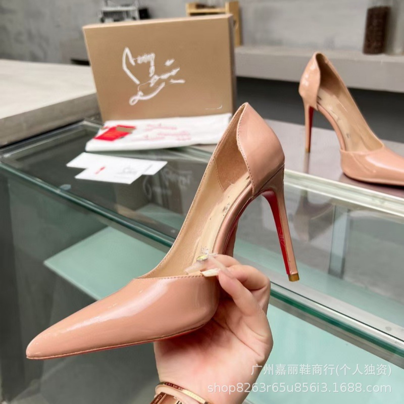Fuguiziyu 2025 새로운 cl 패션 하이힐 섹시한 기질 누드 레드 바닥 뾰족한 신발 샌들 배치스토어 가기