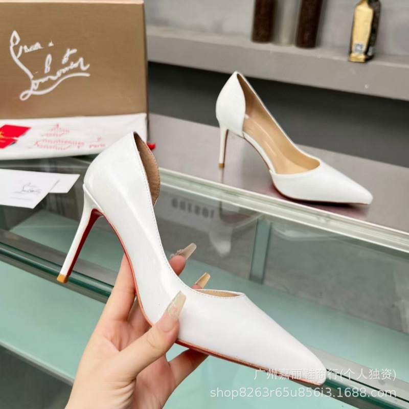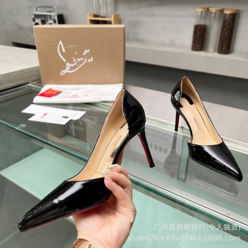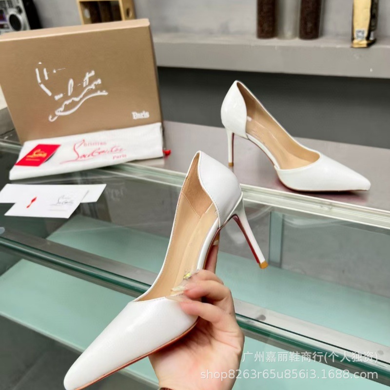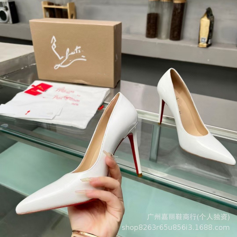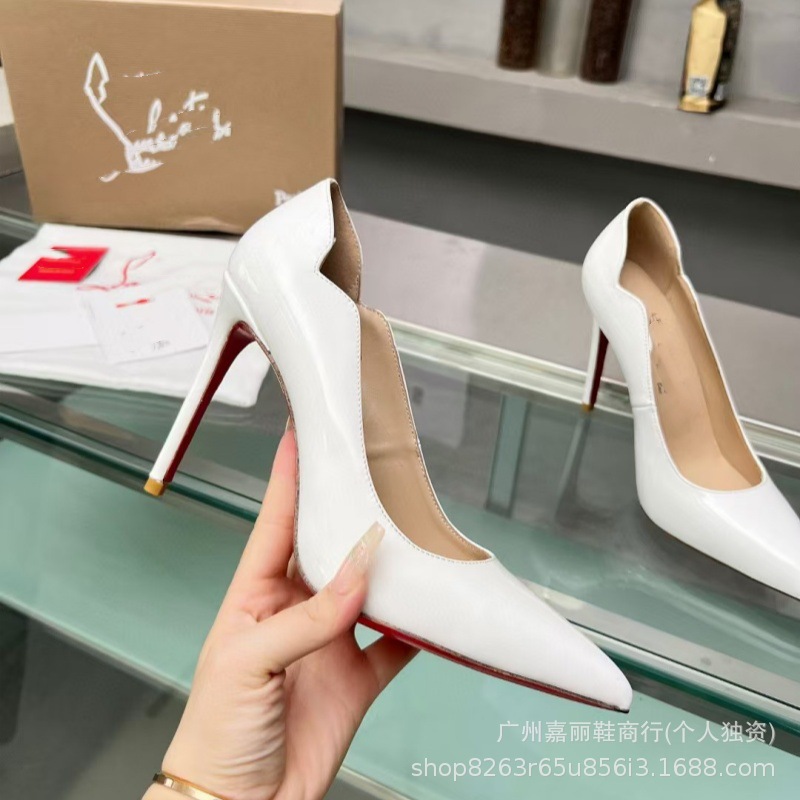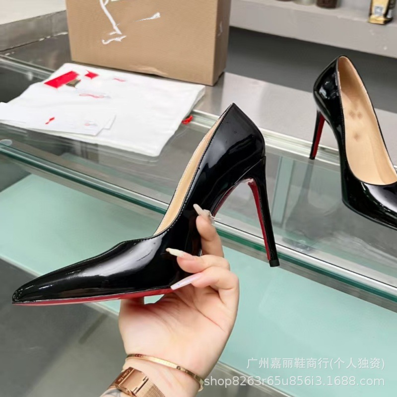 Fuguiziyu 2025 새로운 cl 패션 하이힐 섹시한 기질 누드 레드 바닥 뾰족한 신발 샌들 배치스토어 가기