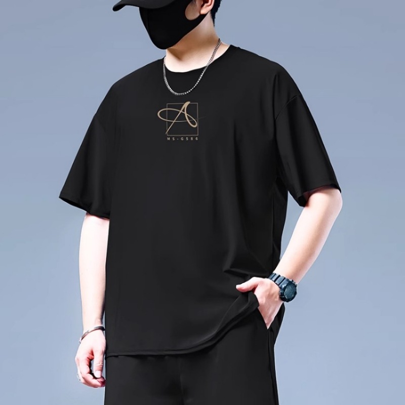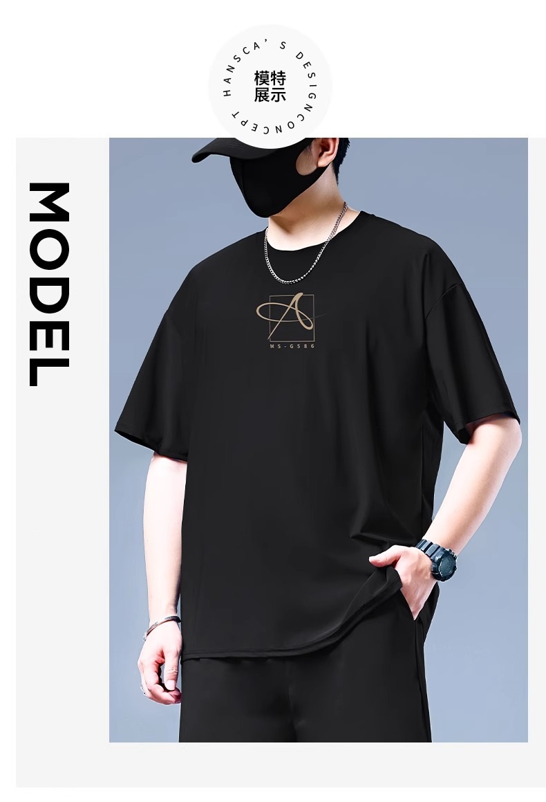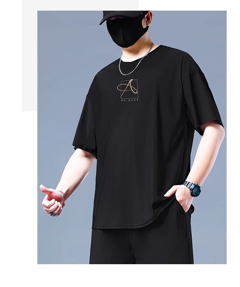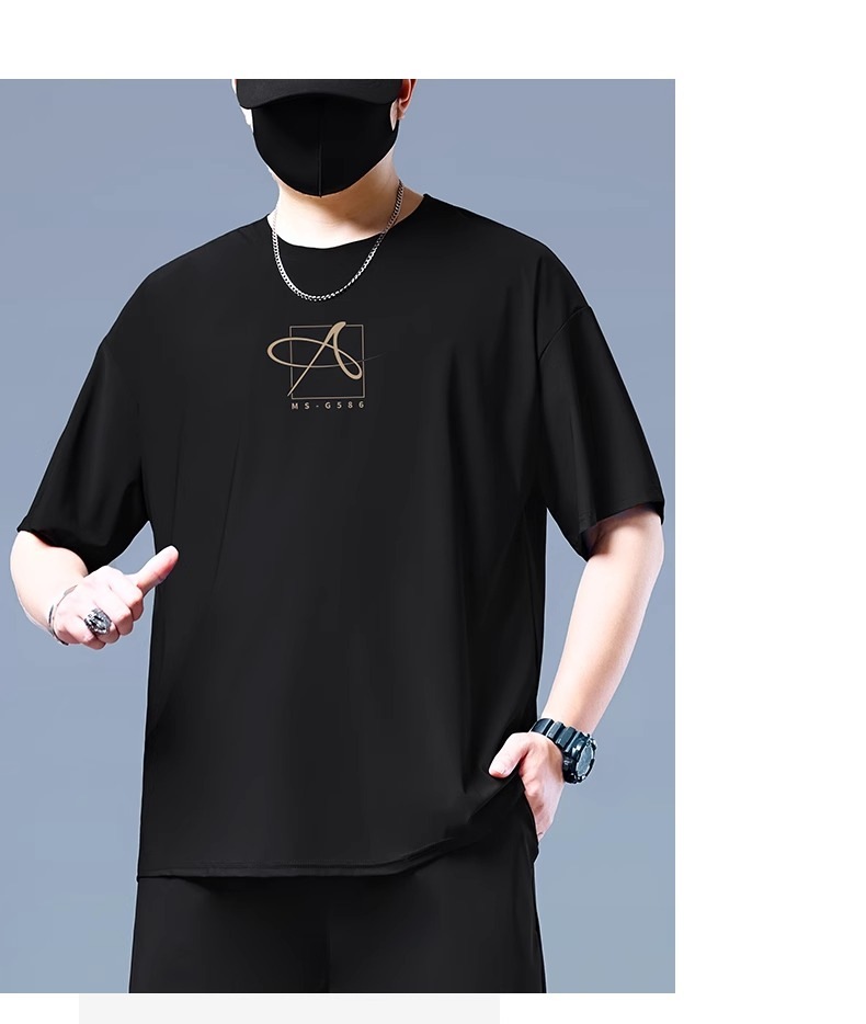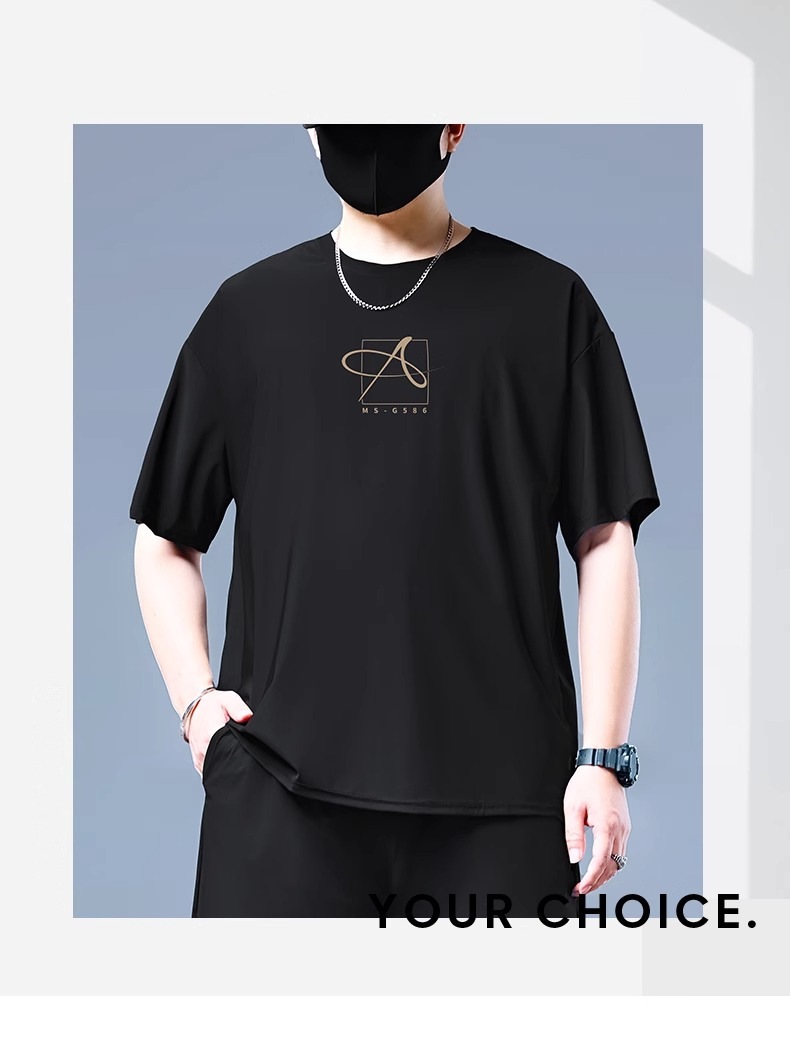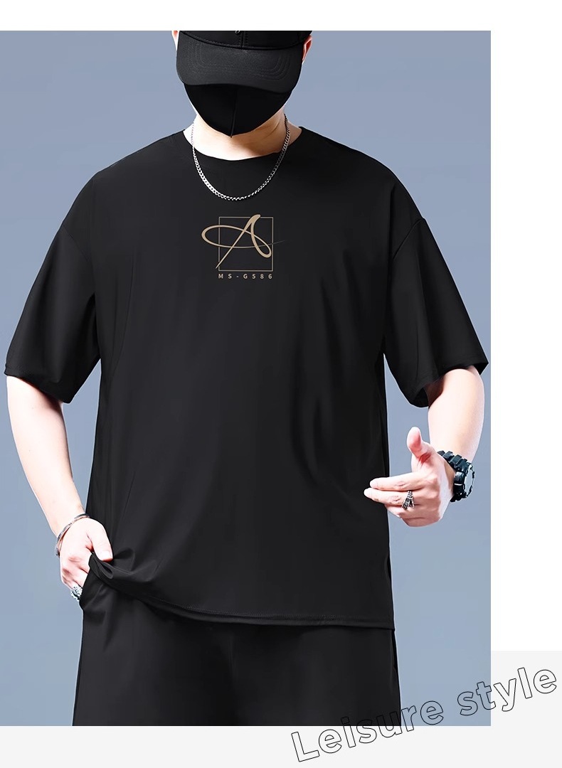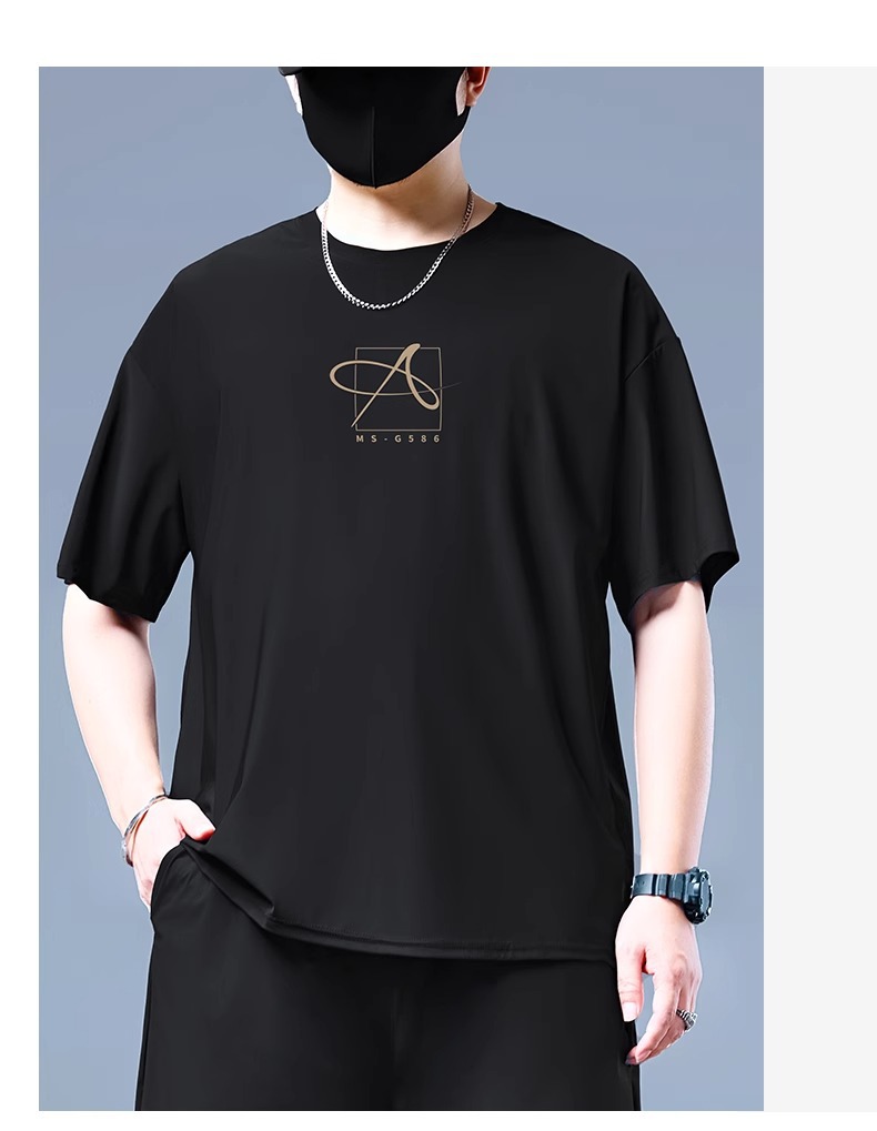 여름 플러스 사이즈 아이스 실크 반팔 티셔츠 남자 2025 새로운 뚱뚱한 캐주얼 스포츠 플러스 뚱뚱한 초대형 라운드 넥 티셔츠스토어 가기