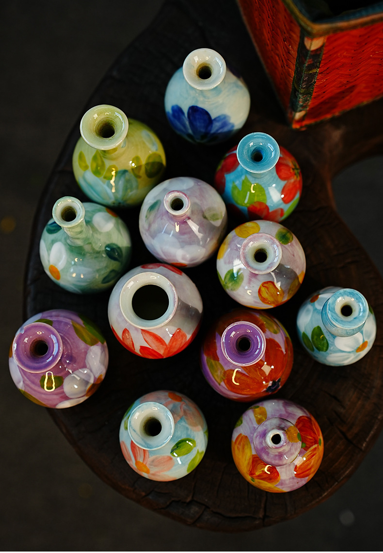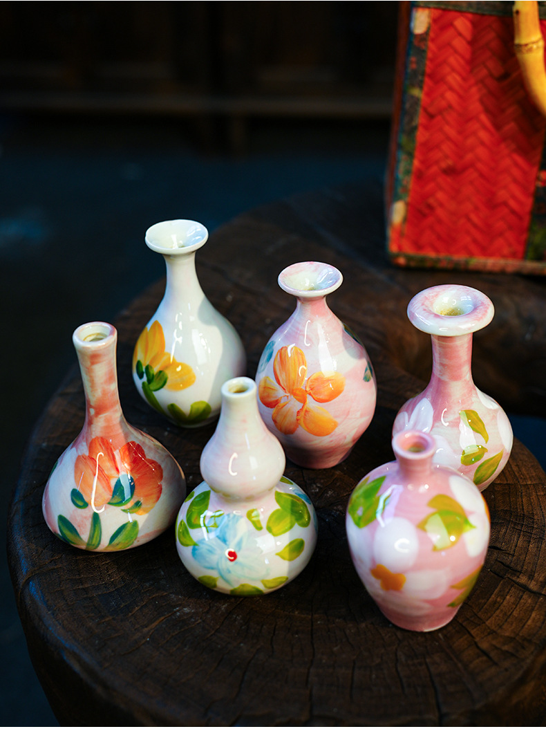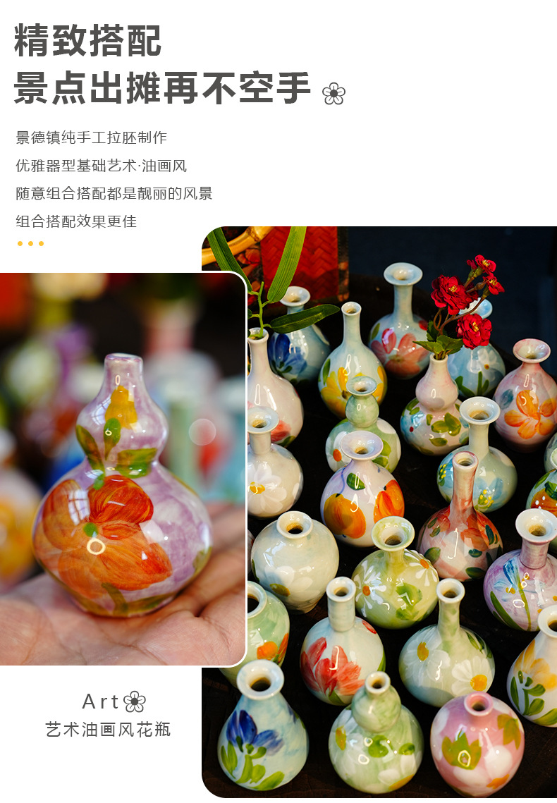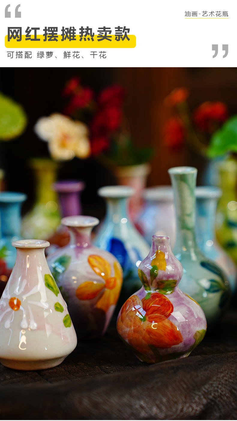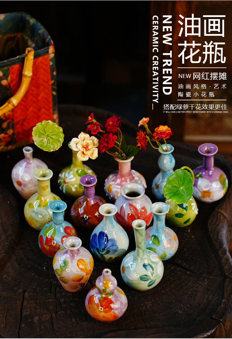 유화 스타일 손으로 그린 세라믹 작은 장식품 Jingdezhen 도자기 꽃병 홈 차 세트 말린 꽃 장식 미니 꽃병스토어 가기