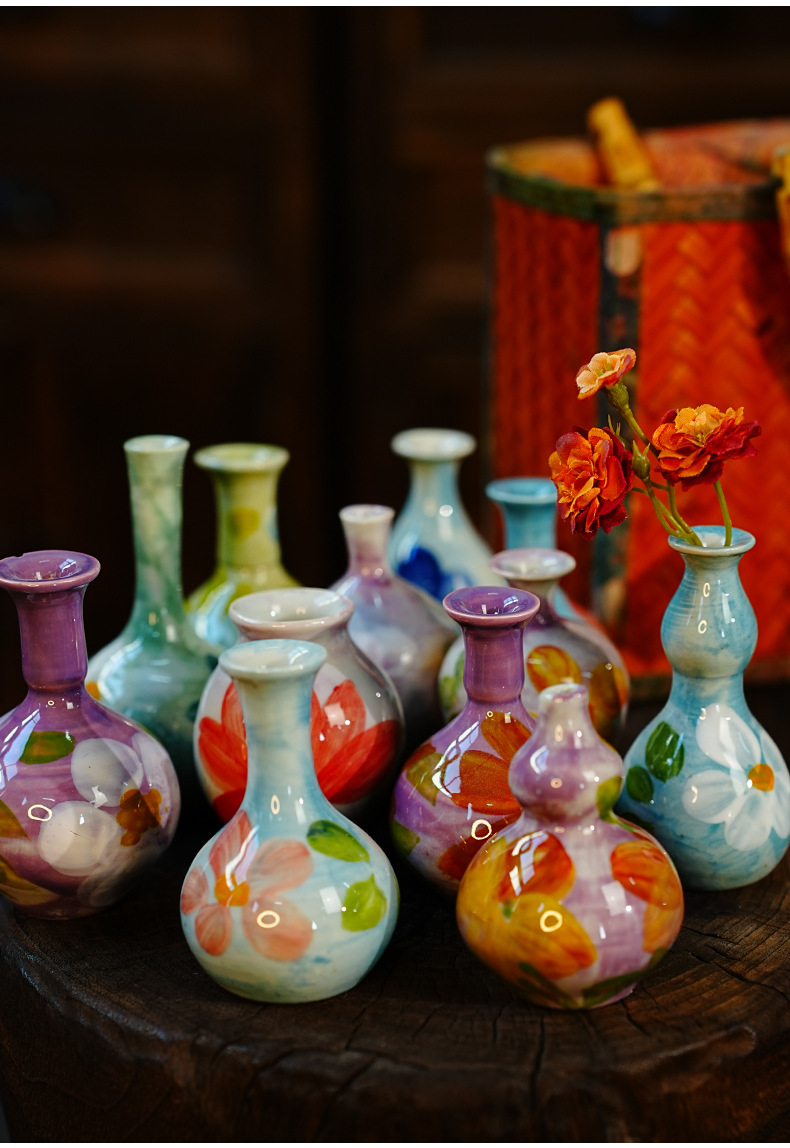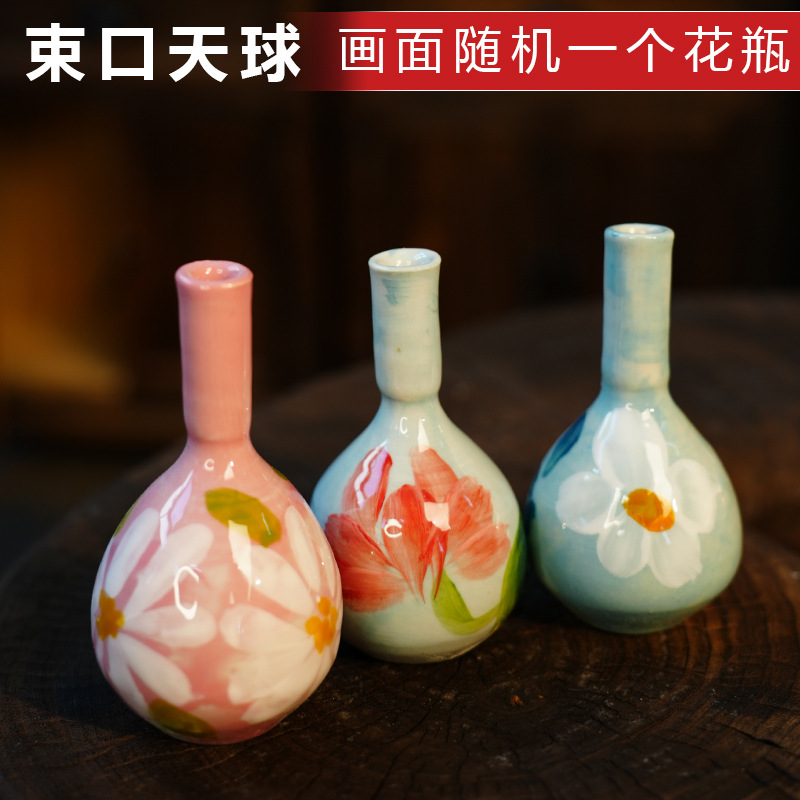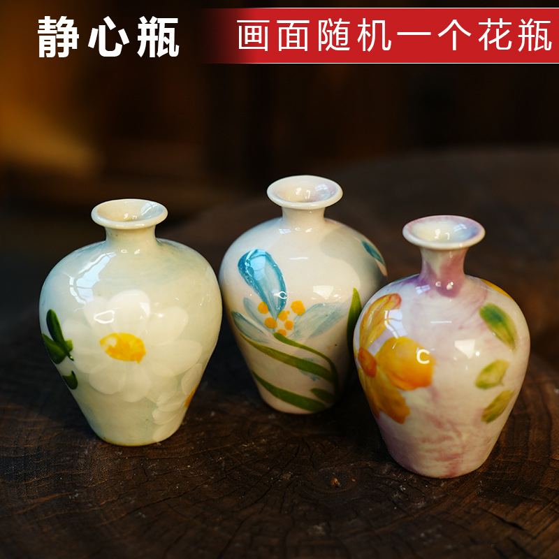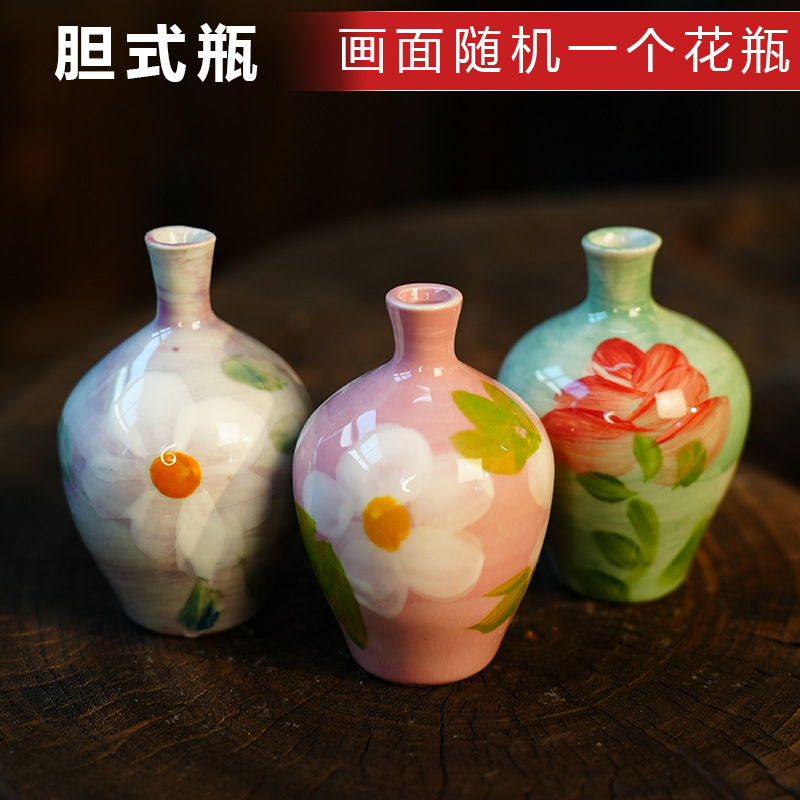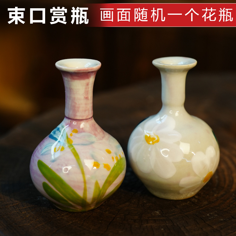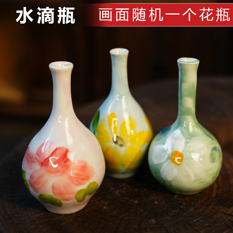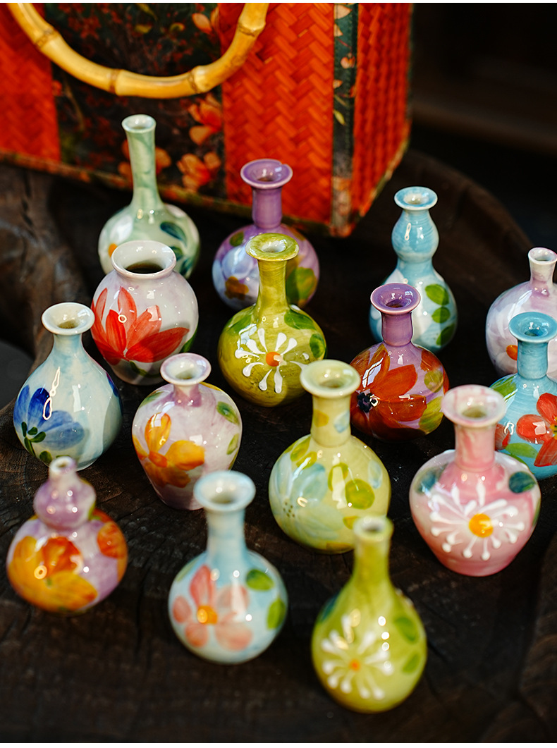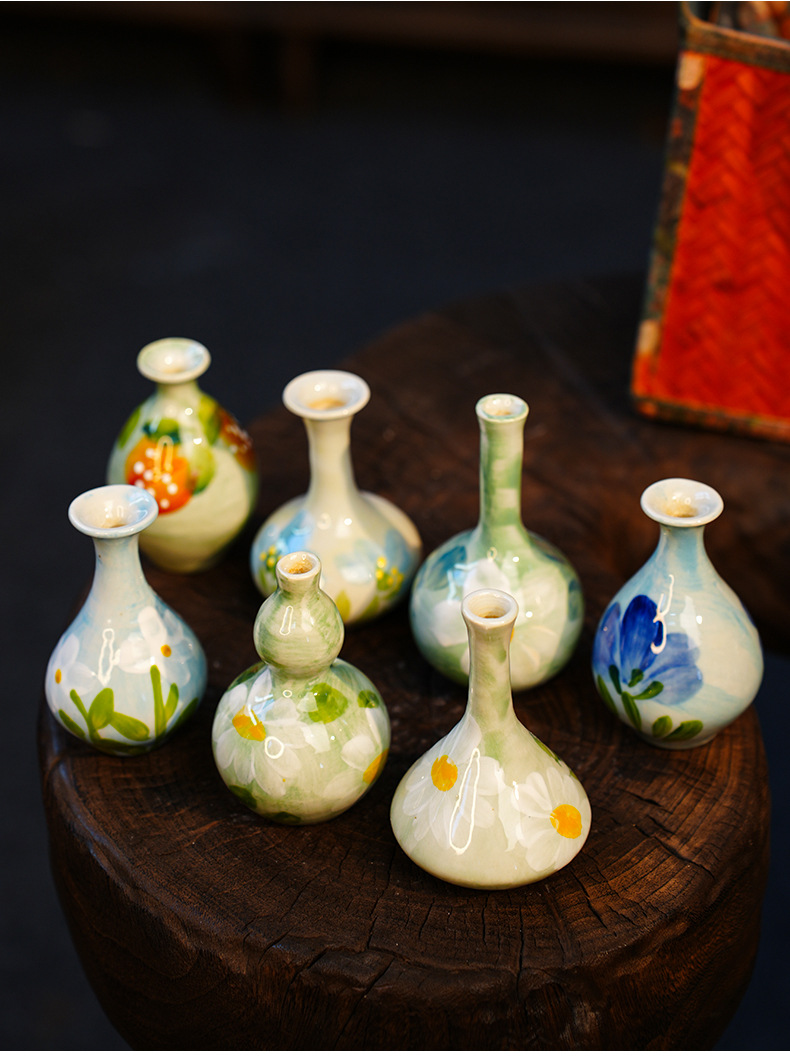 유화 스타일 손으로 그린 세라믹 작은 장식품 Jingdezhen 도자기 꽃병 홈 차 세트 말린 꽃 장식 미니 꽃병스토어 가기