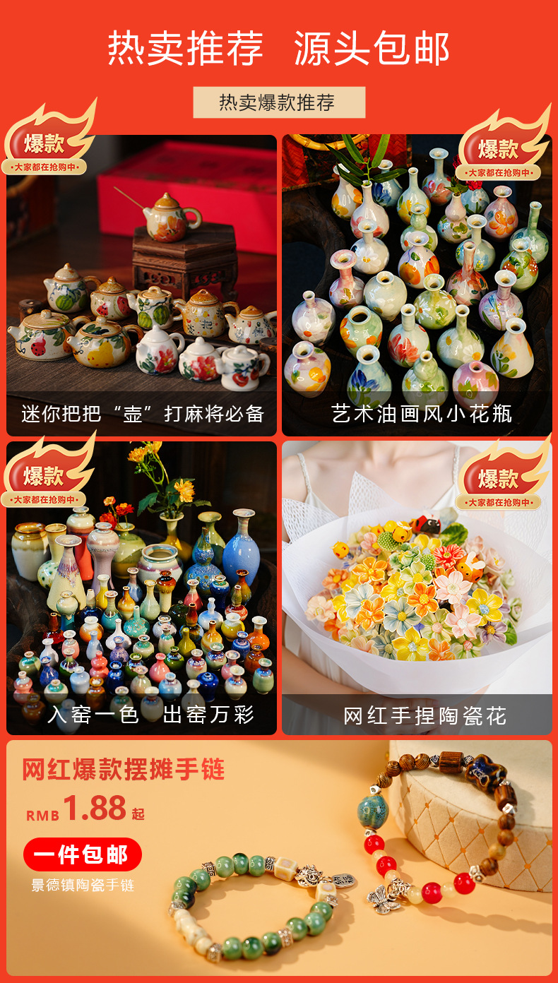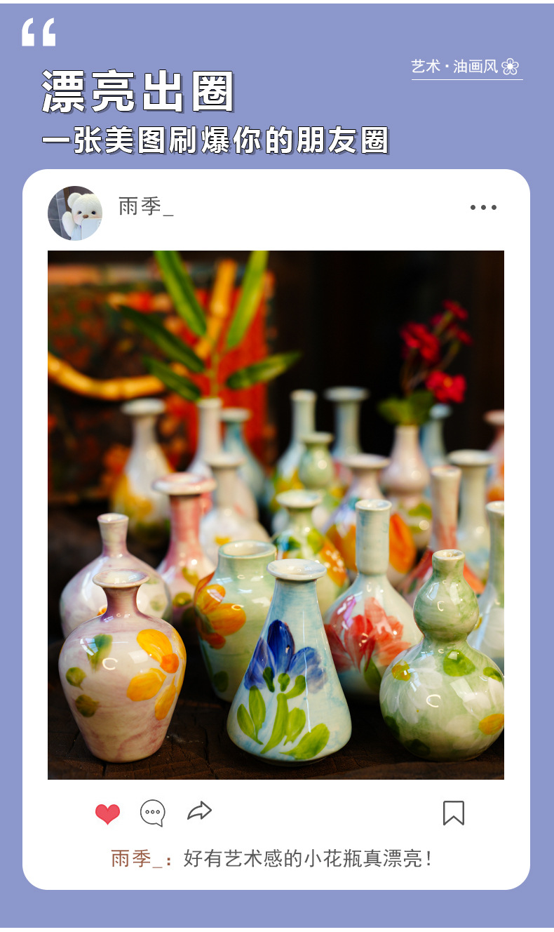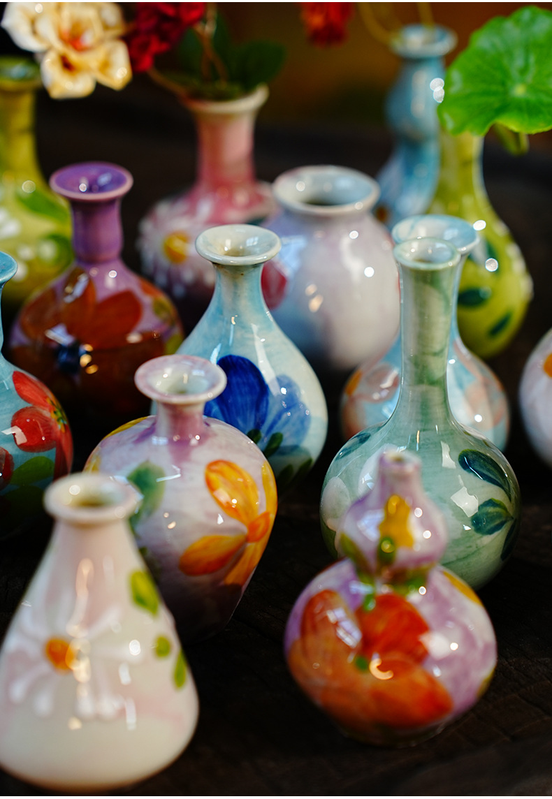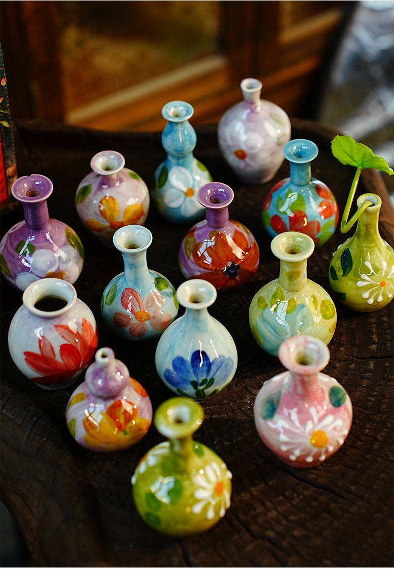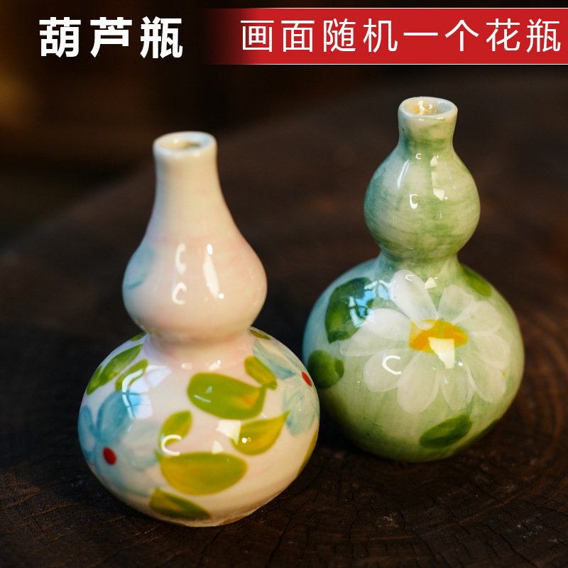 유화 스타일 손으로 그린 세라믹 작은 장식품 Jingdezhen 도자기 꽃병 홈 차 세트 말린 꽃 장식 미니 꽃병스토어 가기