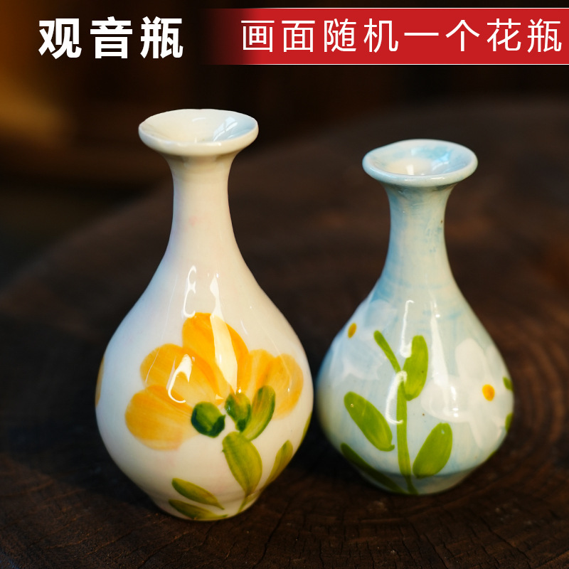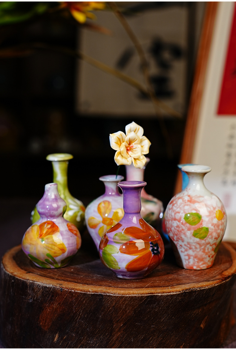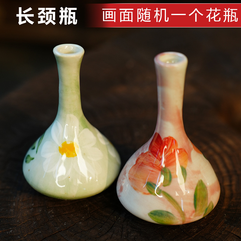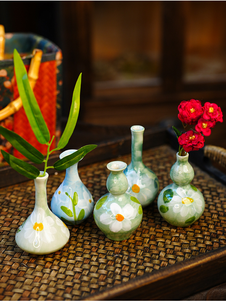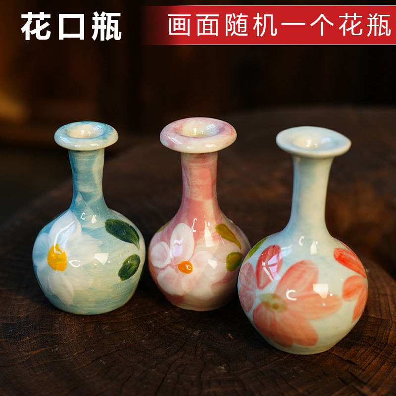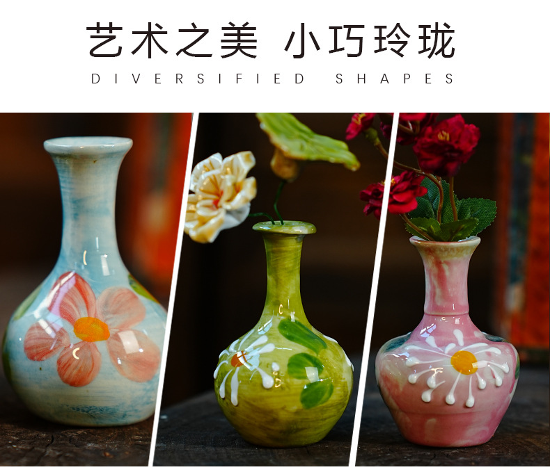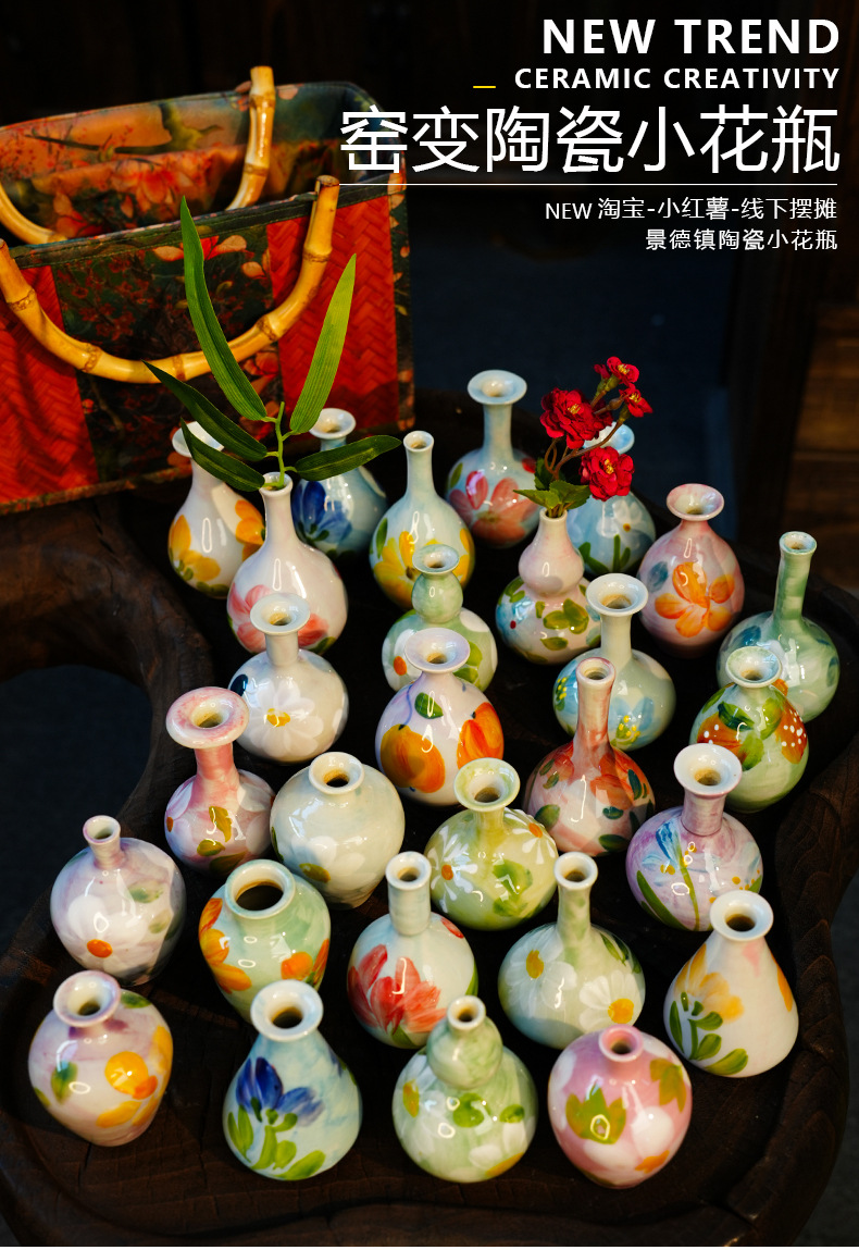 유화 스타일 손으로 그린 세라믹 작은 장식품 Jingdezhen 도자기 꽃병 홈 차 세트 말린 꽃 장식 미니 꽃병