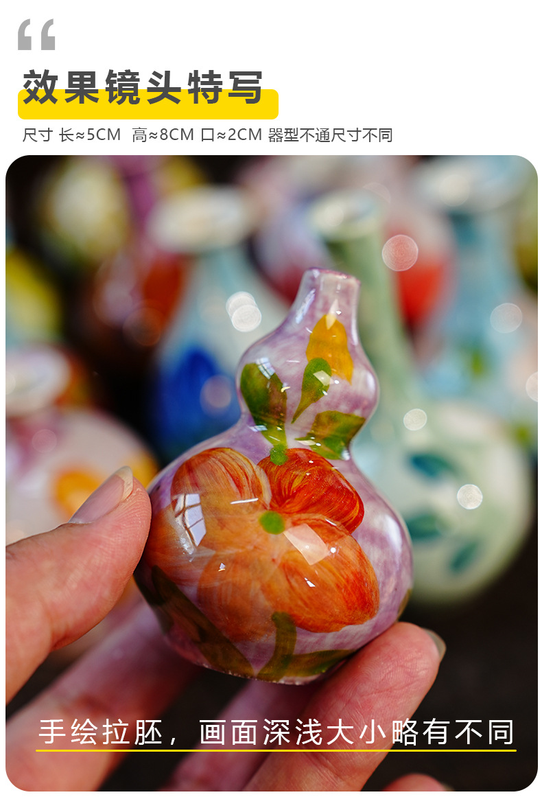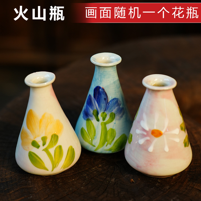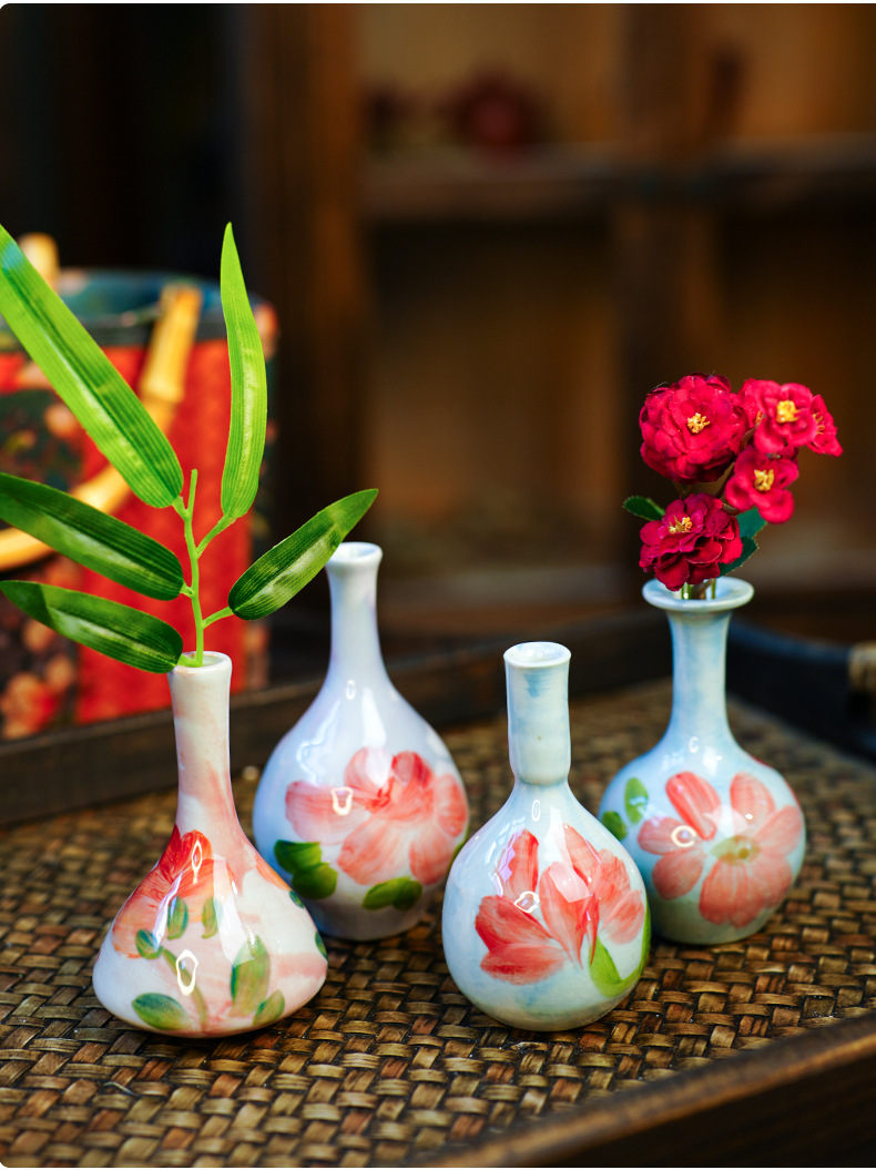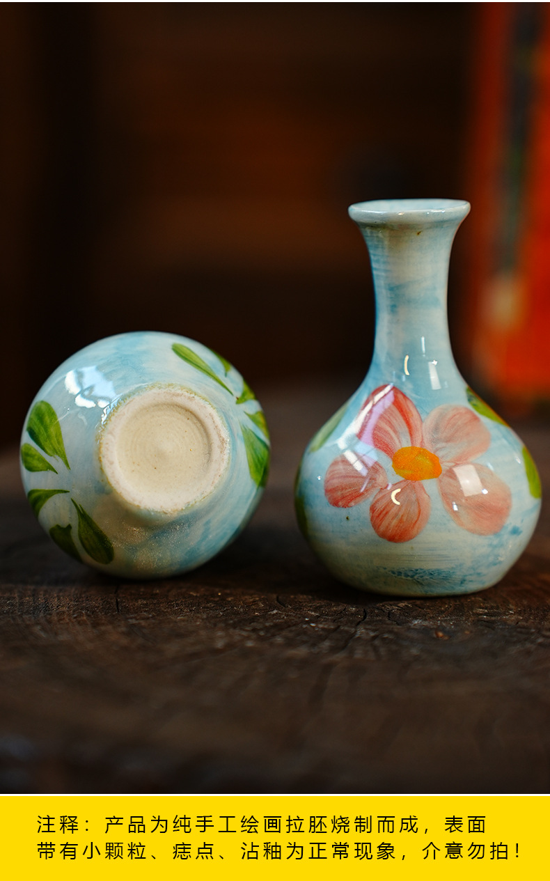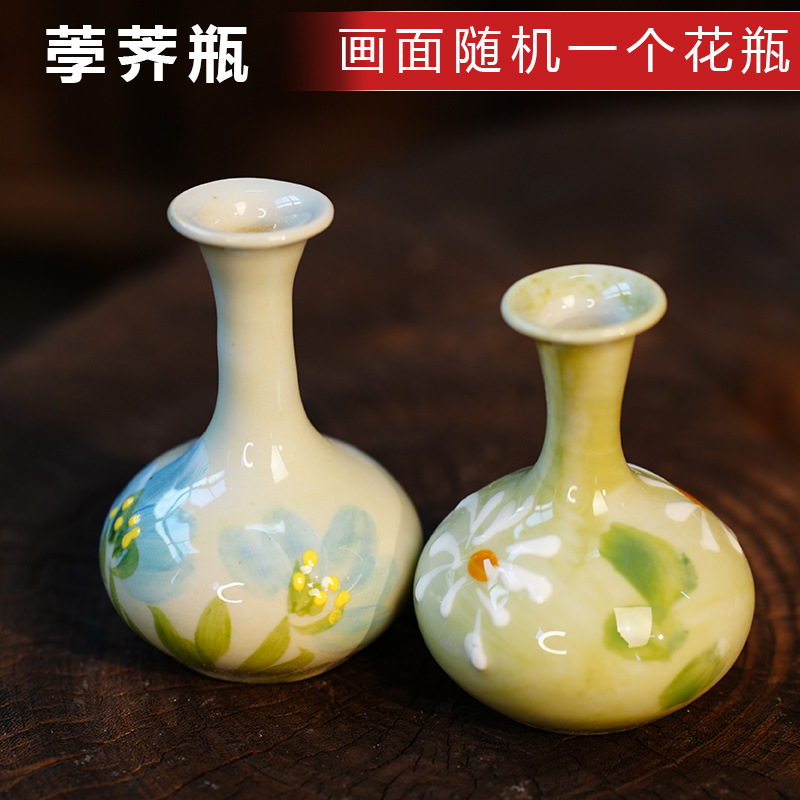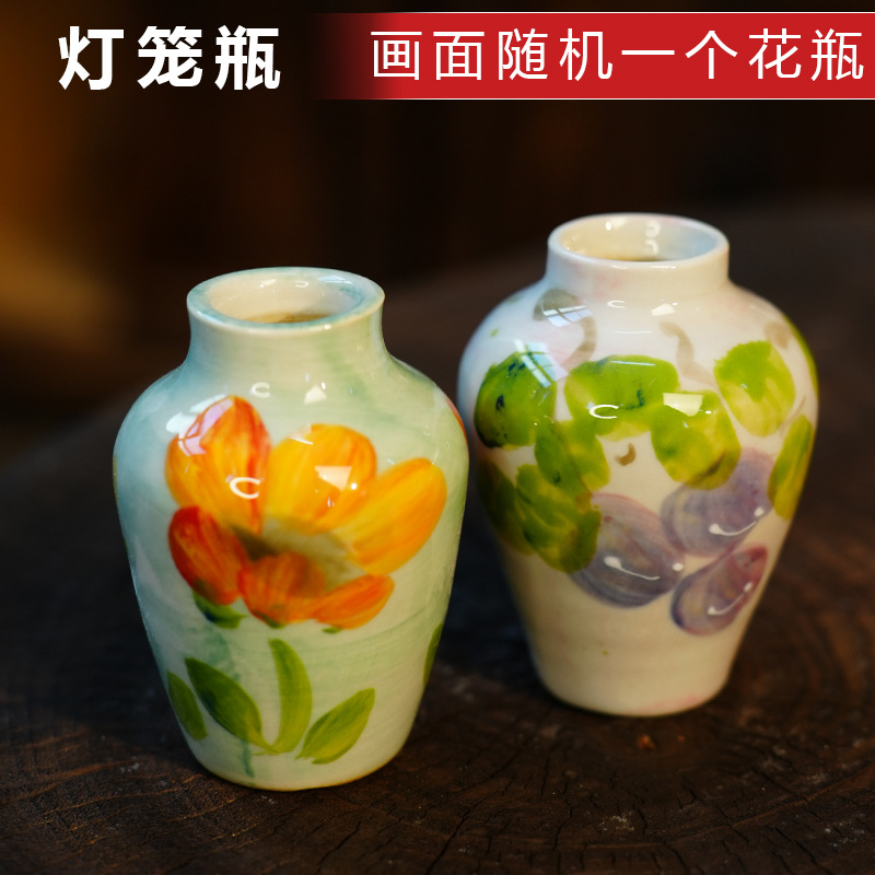 유화 스타일 손으로 그린 세라믹 작은 장식품 Jingdezhen 도자기 꽃병 홈 차 세트 말린 꽃 장식 미니 꽃병