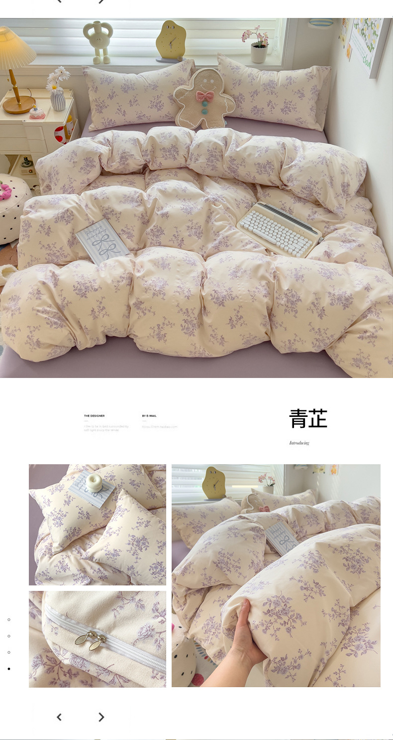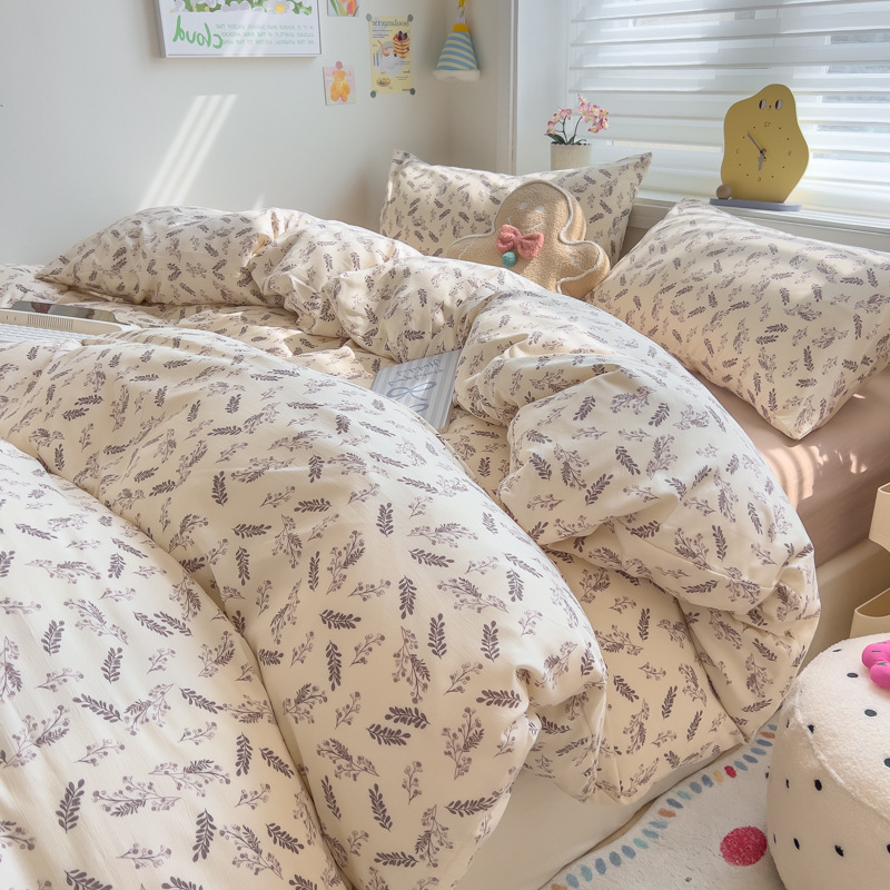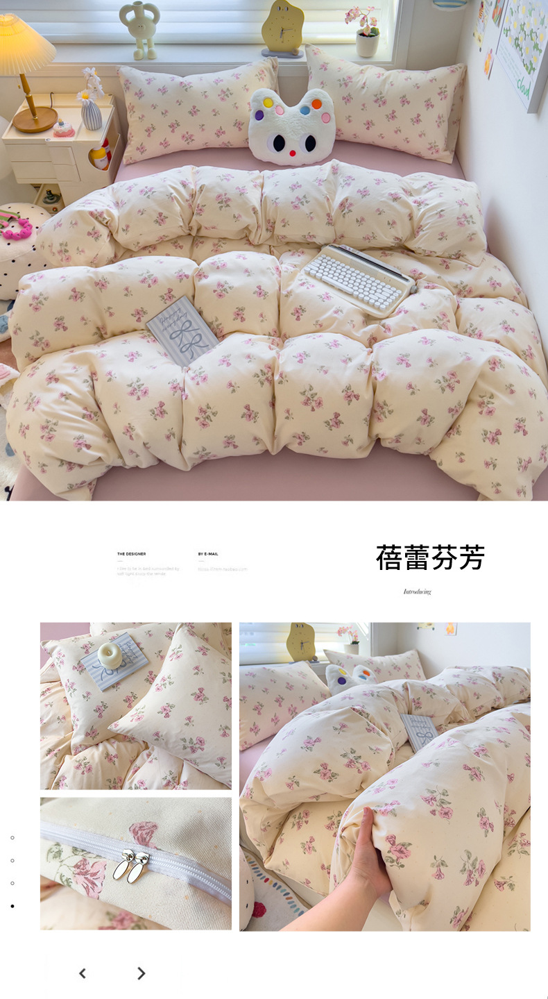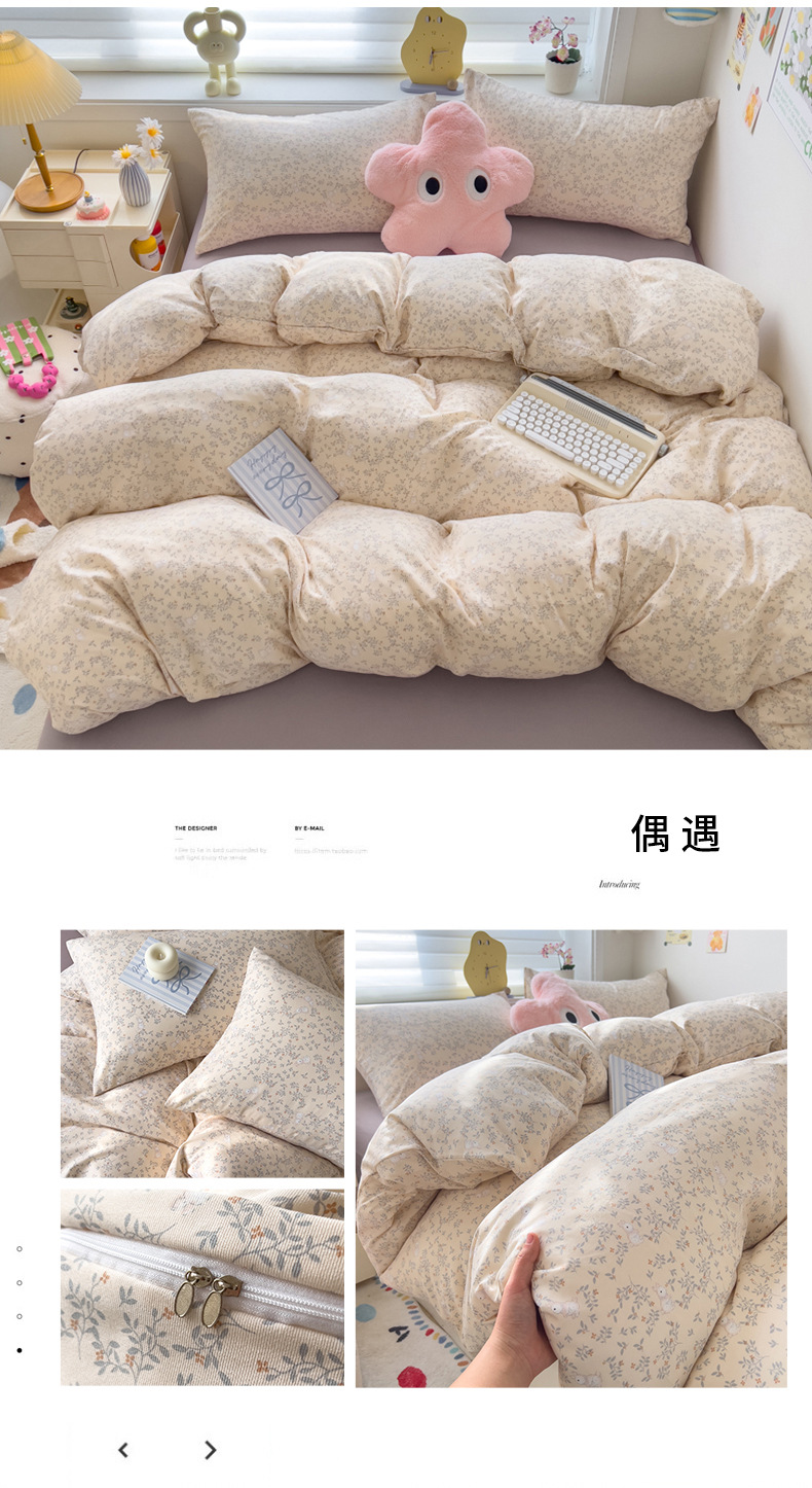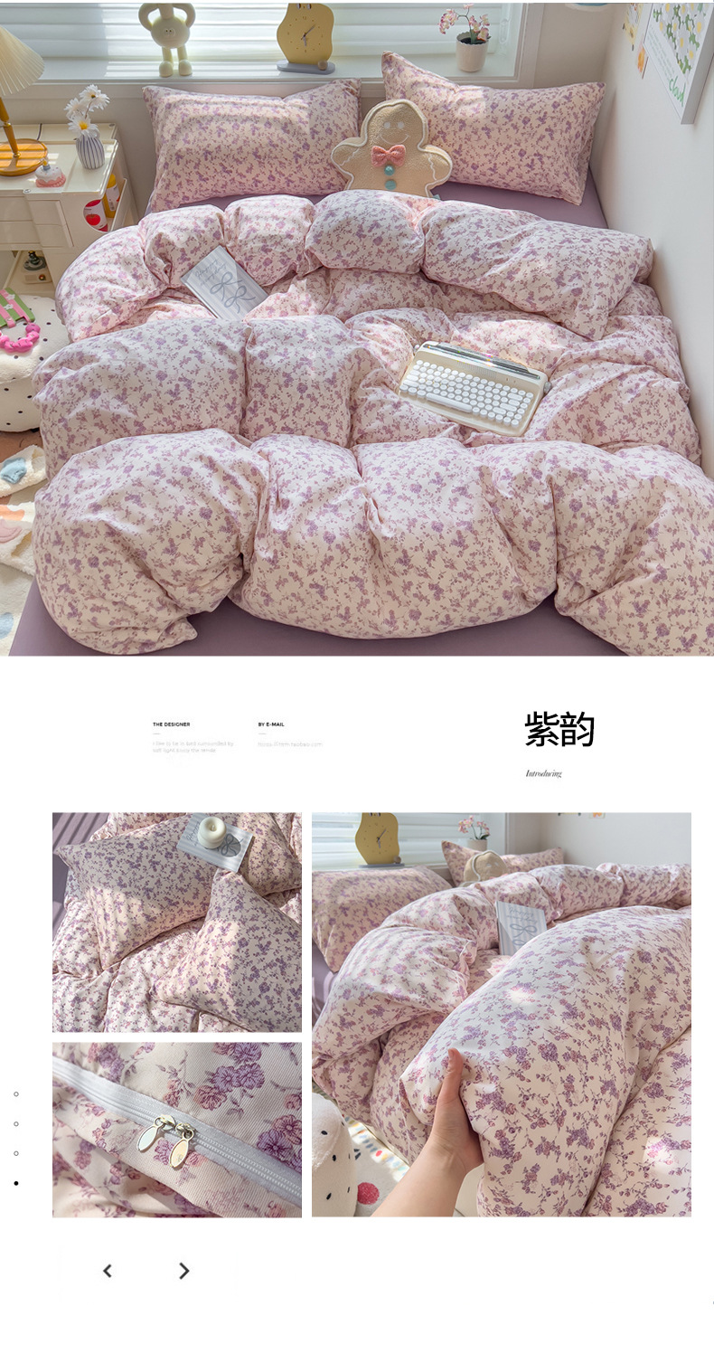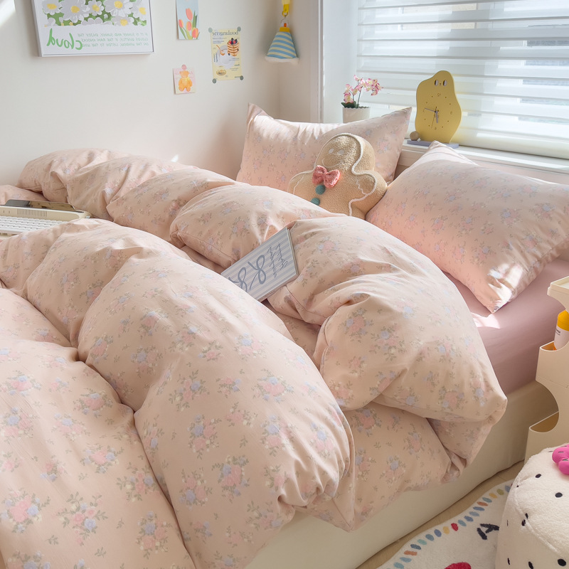 한국식 목가적 스타일 작은 꽃 퀼트 커버 더블 레이어 원사 4 피스 세트 소녀의 심장 세척 코튼 침대 시트 3 피스 세트스토어 가기