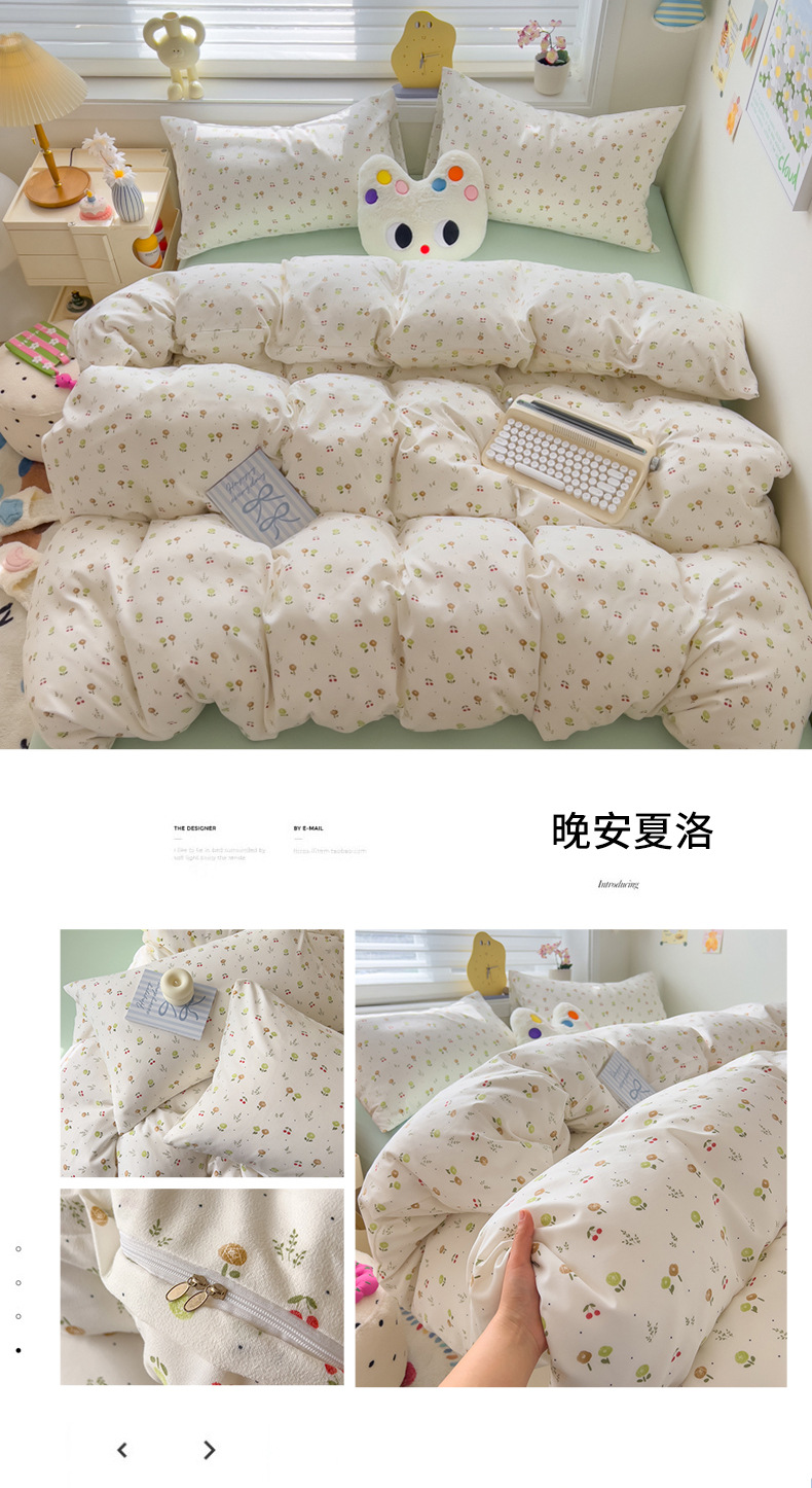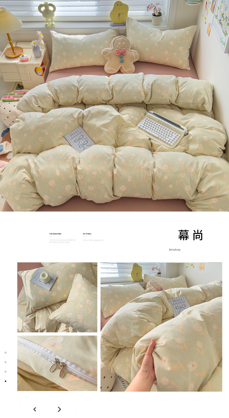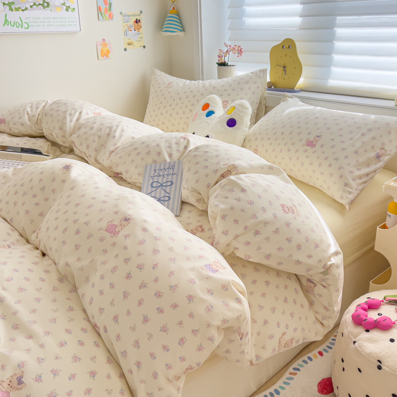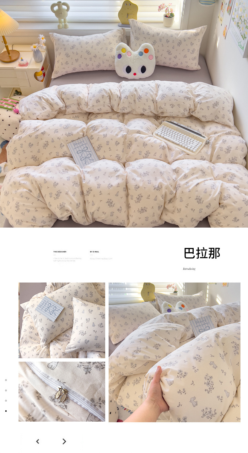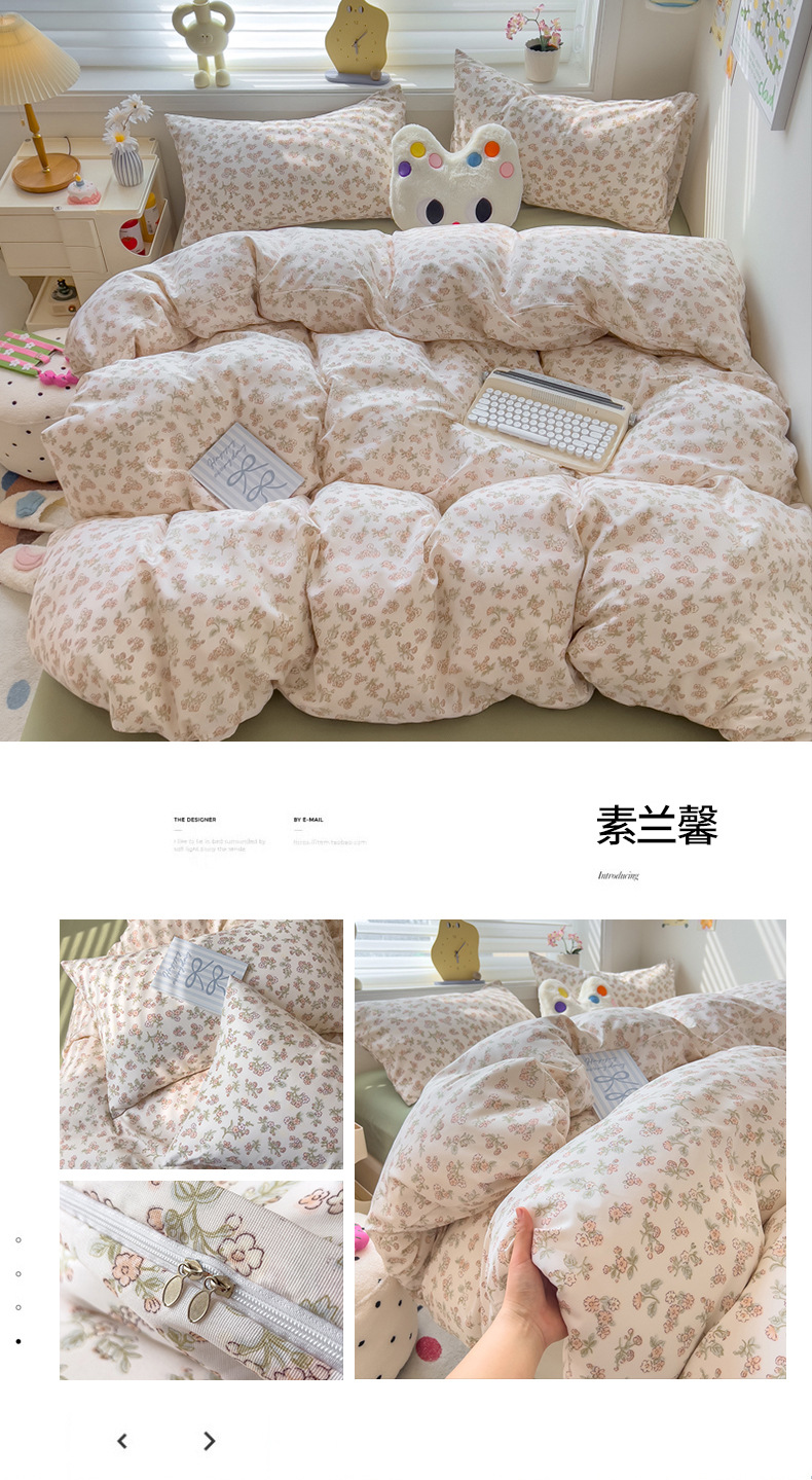 한국식 목가적 스타일 작은 꽃 퀼트 커버 더블 레이어 원사 4 피스 세트 소녀의 심장 세척 코튼 침대 시트 3 피스 세트스토어 가기
