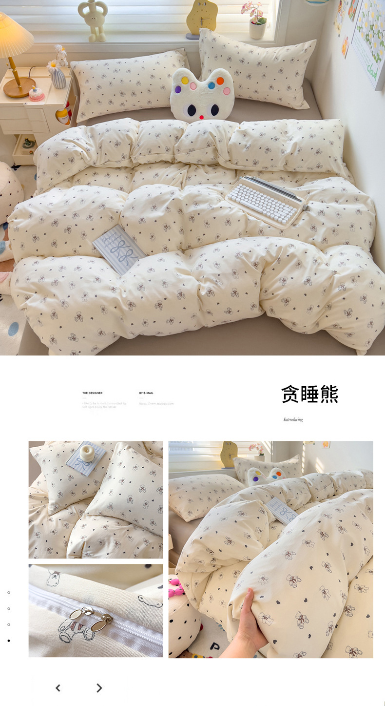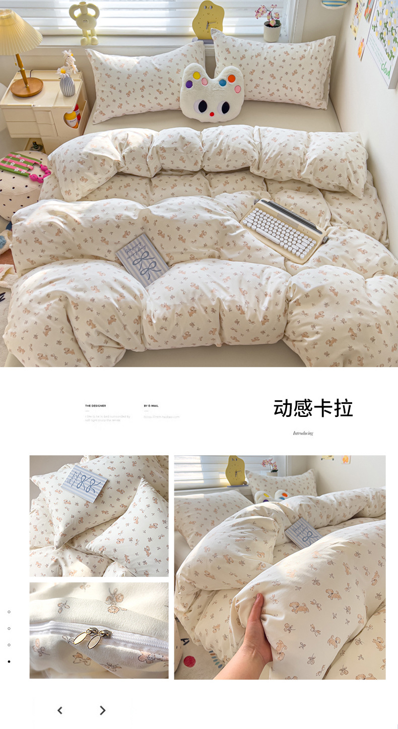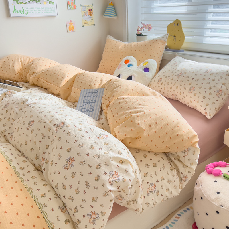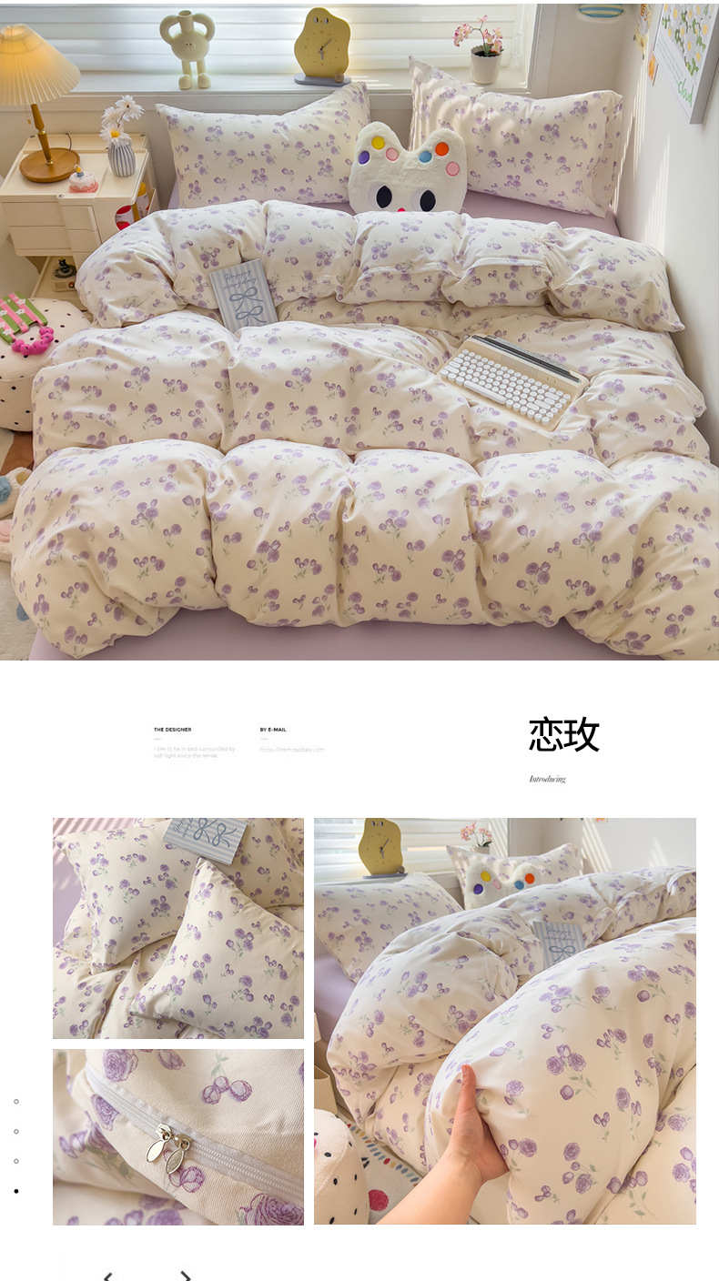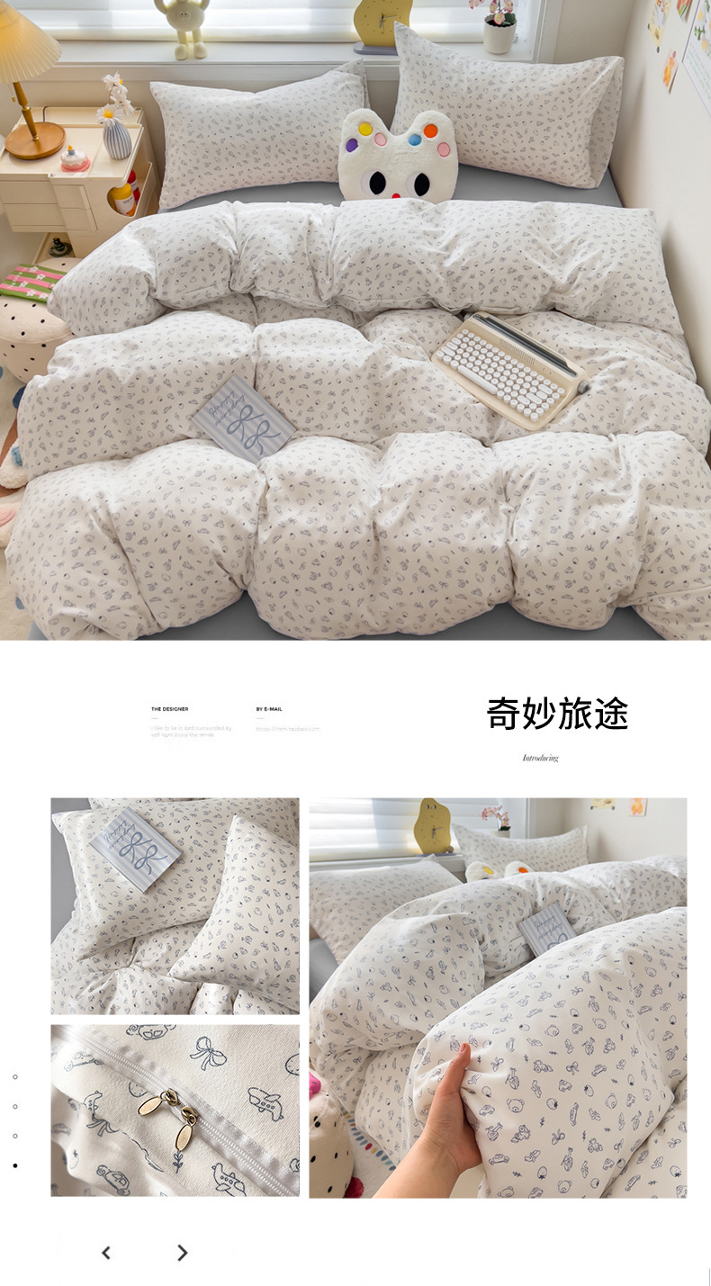 한국식 목가적 스타일 작은 꽃 퀼트 커버 더블 레이어 원사 4 피스 세트 소녀의 심장 세척 코튼 침대 시트 3 피스 세트스토어 가기