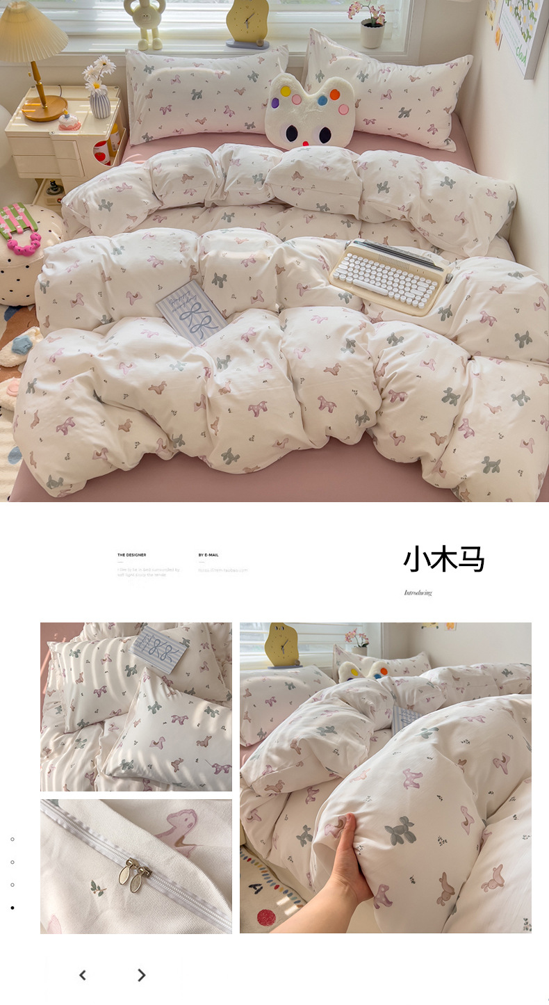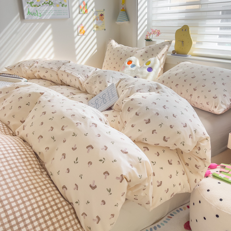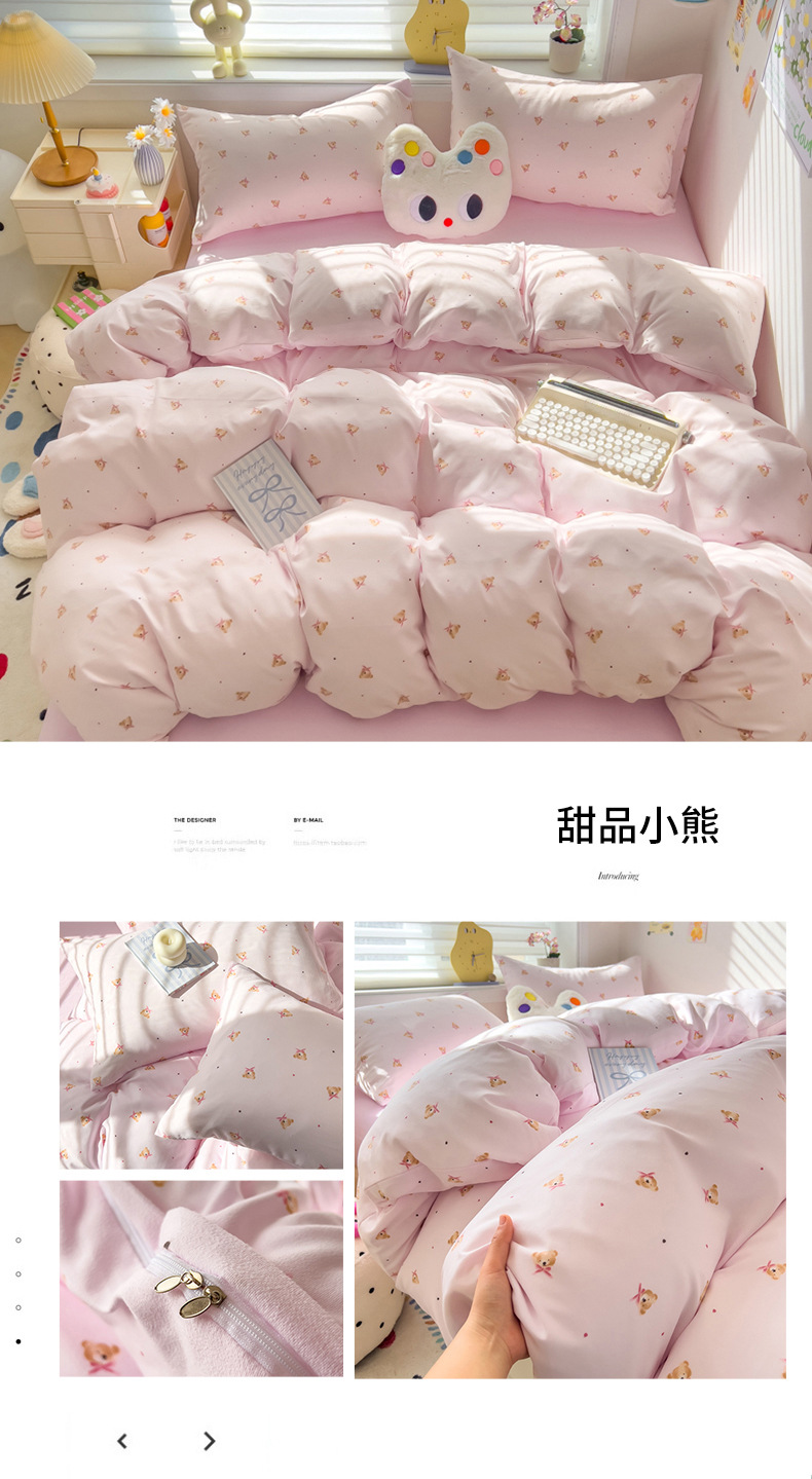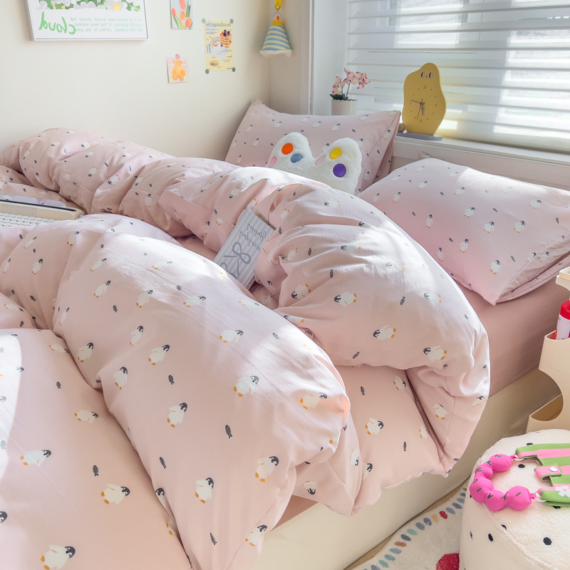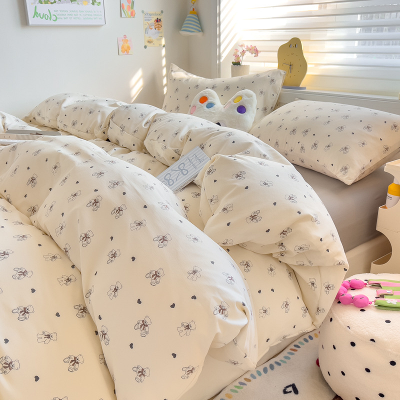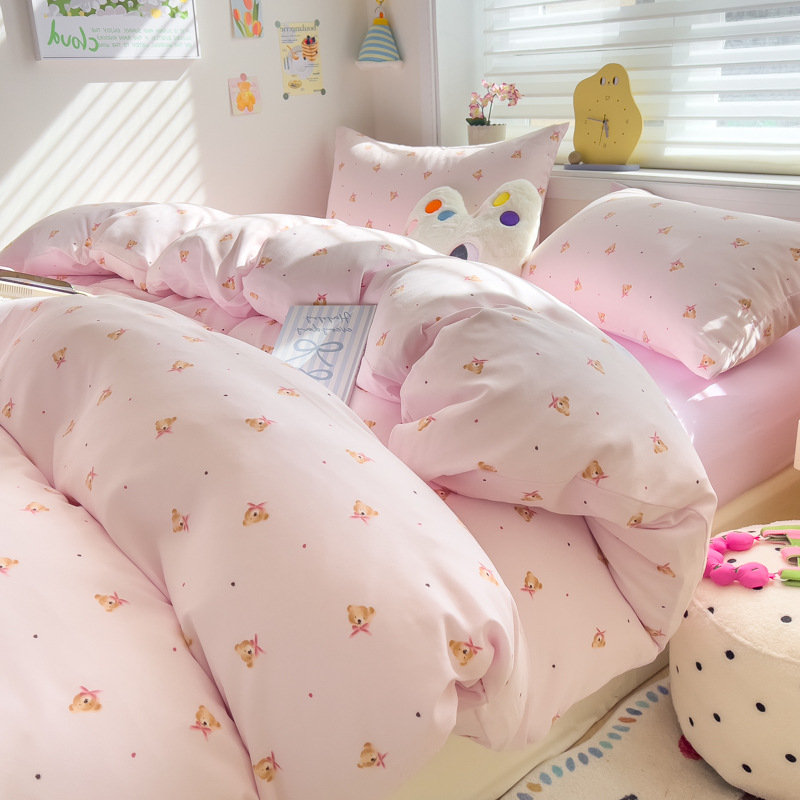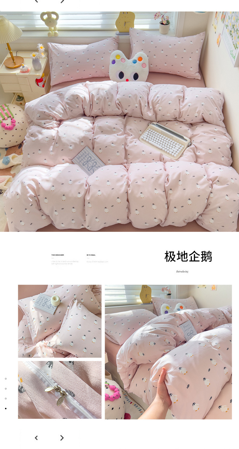 한국식 목가적 스타일 작은 꽃 퀼트 커버 더블 레이어 원사 4 피스 세트 소녀의 심장 세척 코튼 침대 시트 3 피스 세트스토어 가기