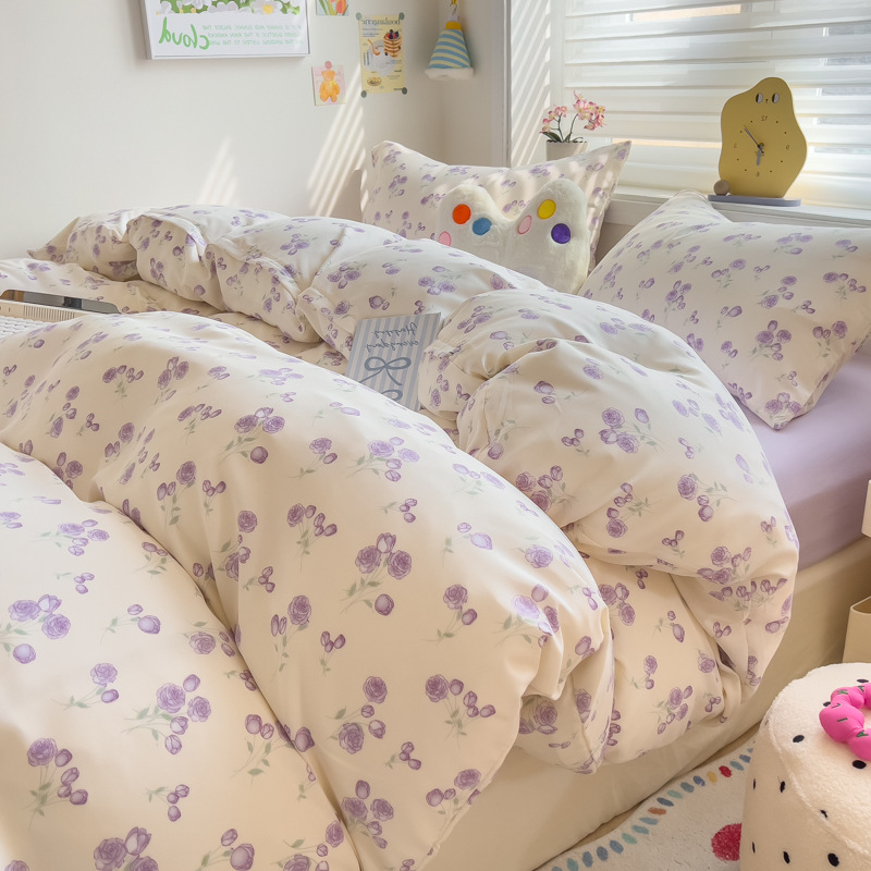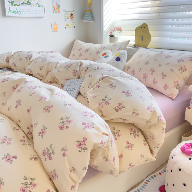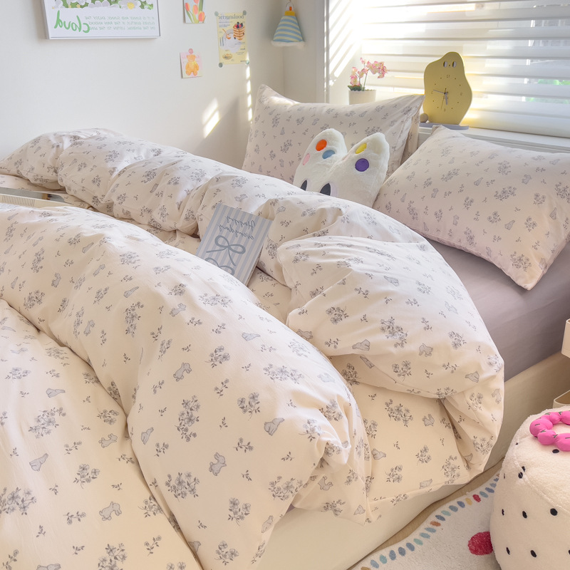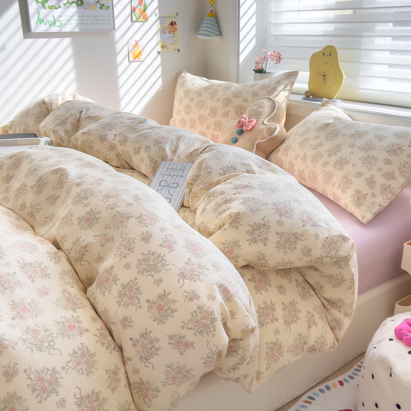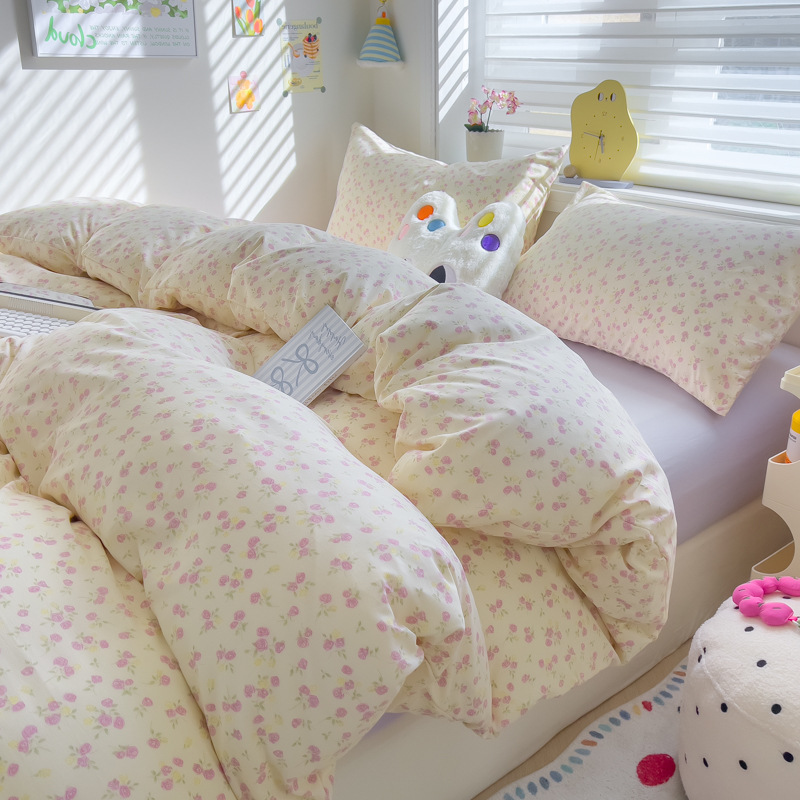 한국식 목가적 스타일 작은 꽃 퀼트 커버 더블 레이어 원사 4 피스 세트 소녀의 심장 세척 코튼 침대 시트 3 피스 세트