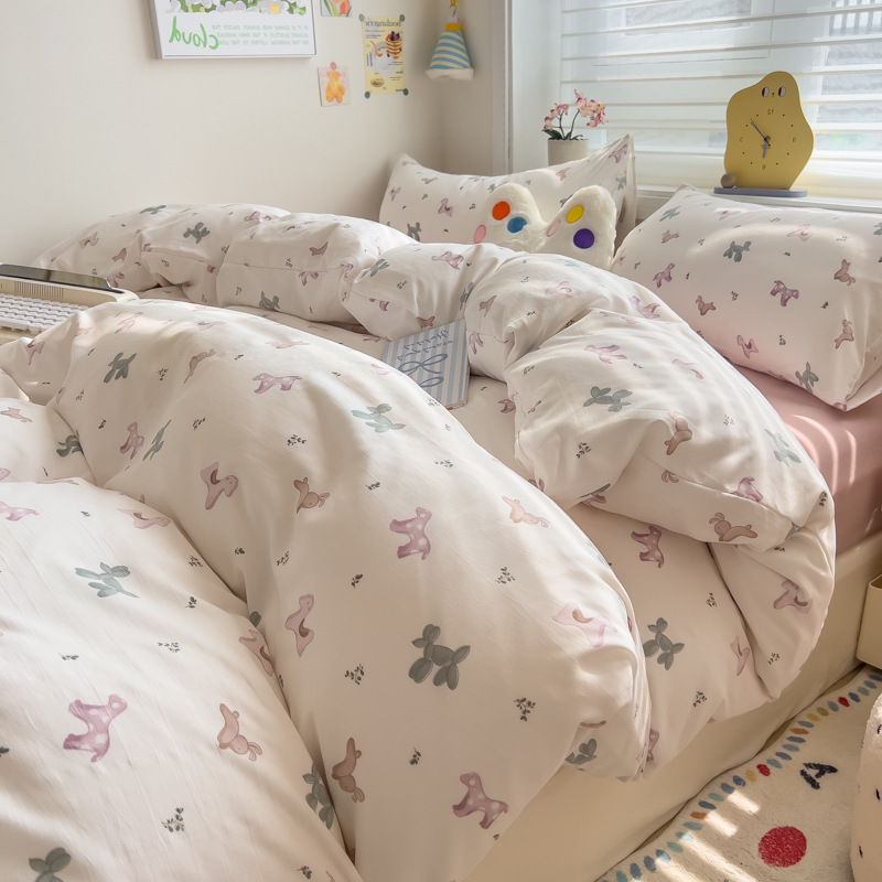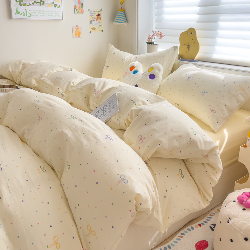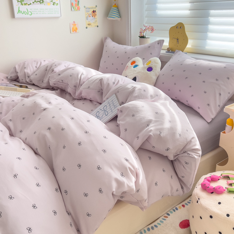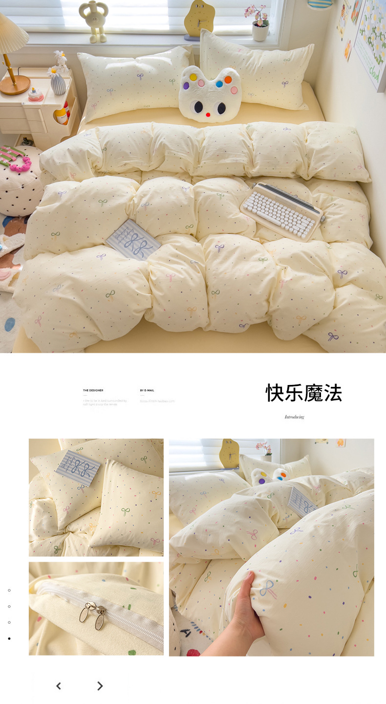 한국식 목가적 스타일 작은 꽃 퀼트 커버 더블 레이어 원사 4 피스 세트 소녀의 심장 세척 코튼 침대 시트 3 피스 세트