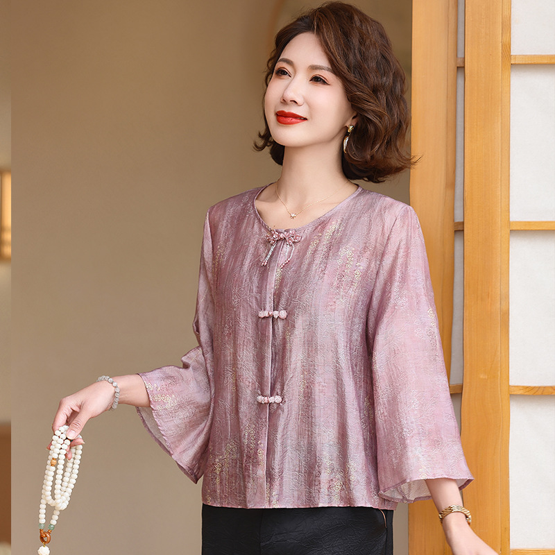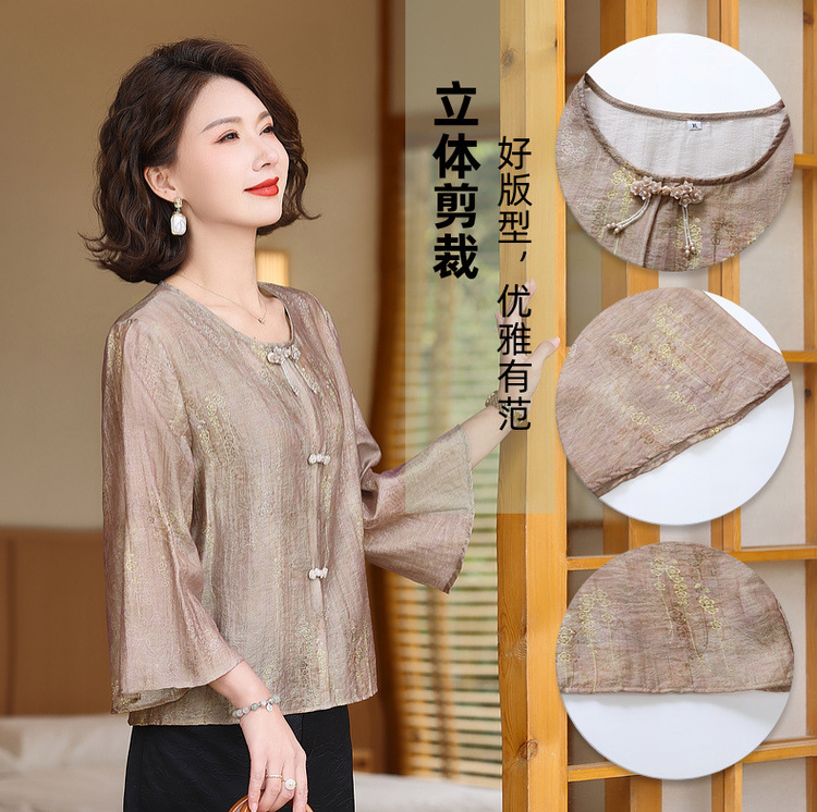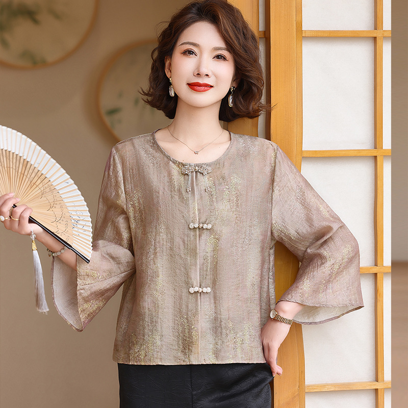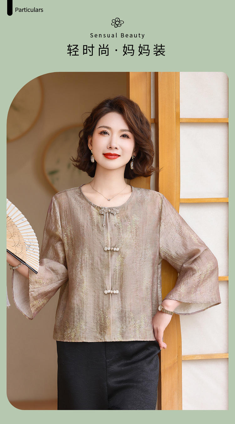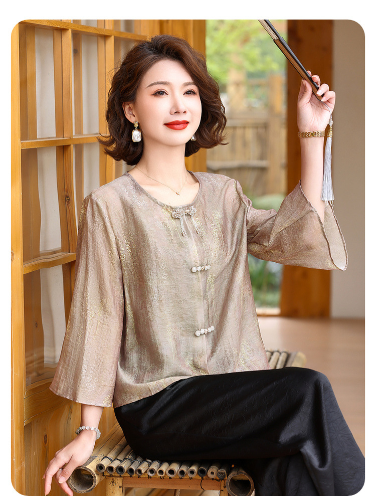 어머니의 세련된 얇은 면화와 리넨 셔츠 중년 여성의 여름 2025 새로운 최고 중년 여름 패션 작은 셔츠