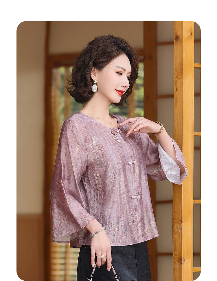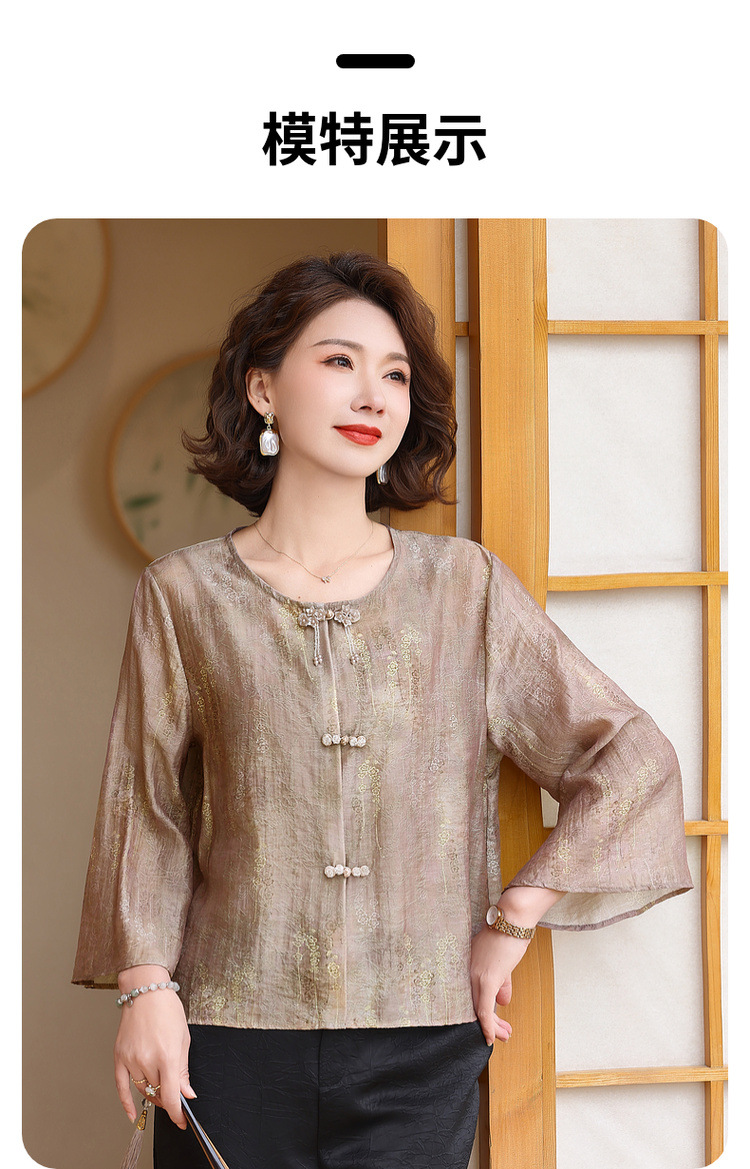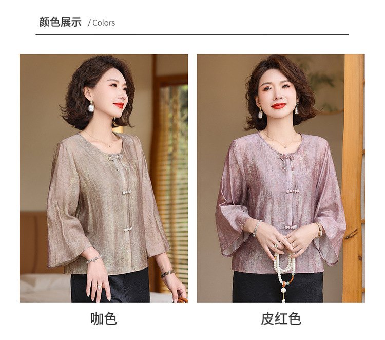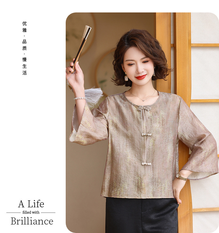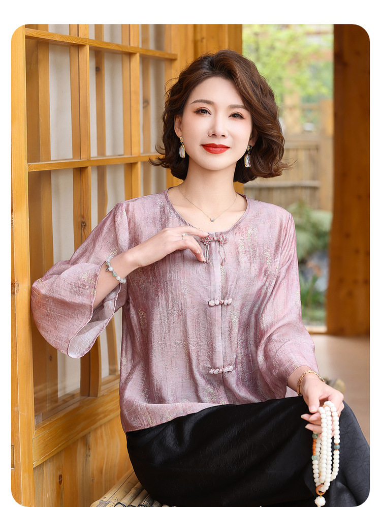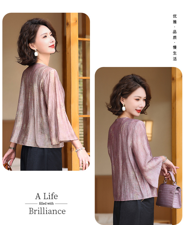 어머니의 세련된 얇은 면화와 리넨 셔츠 중년 여성의 여름 2025 새로운 최고 중년 여름 패션 작은 셔츠
