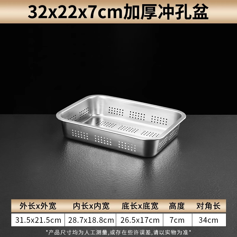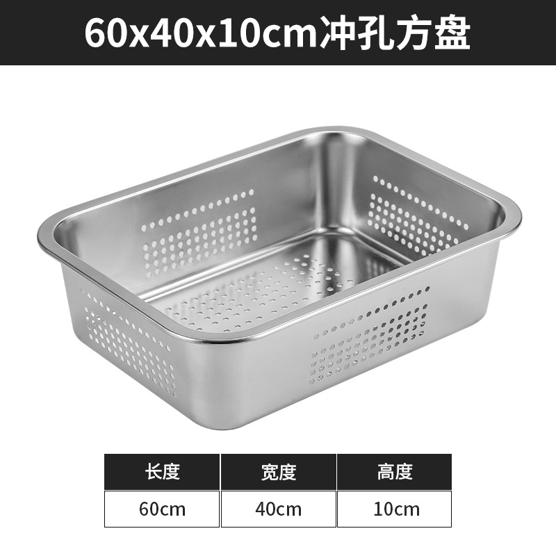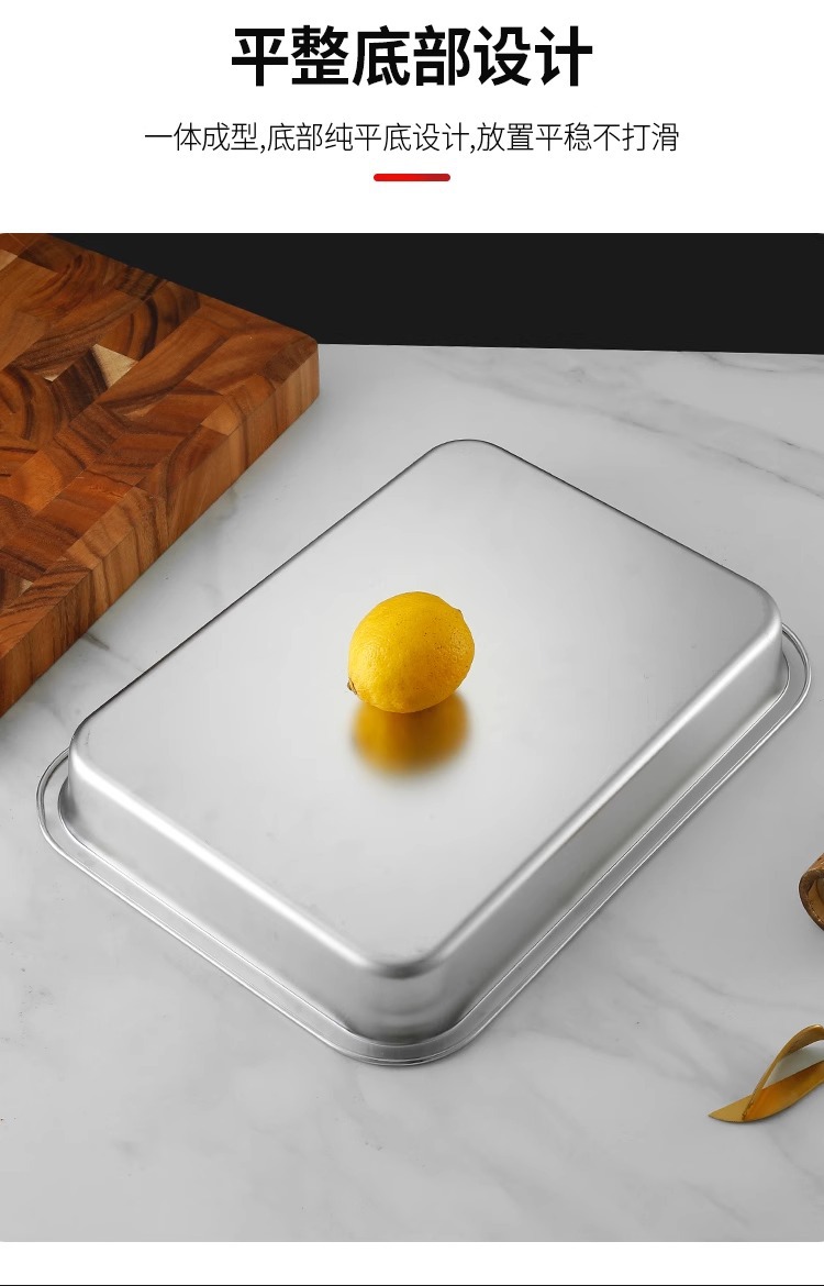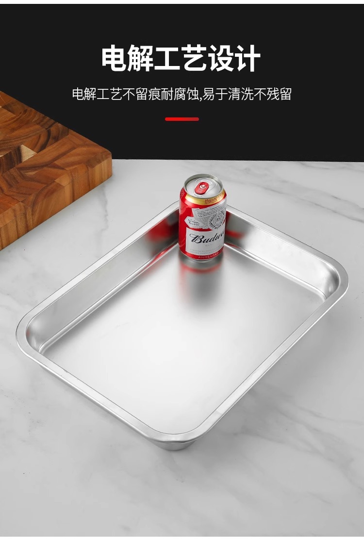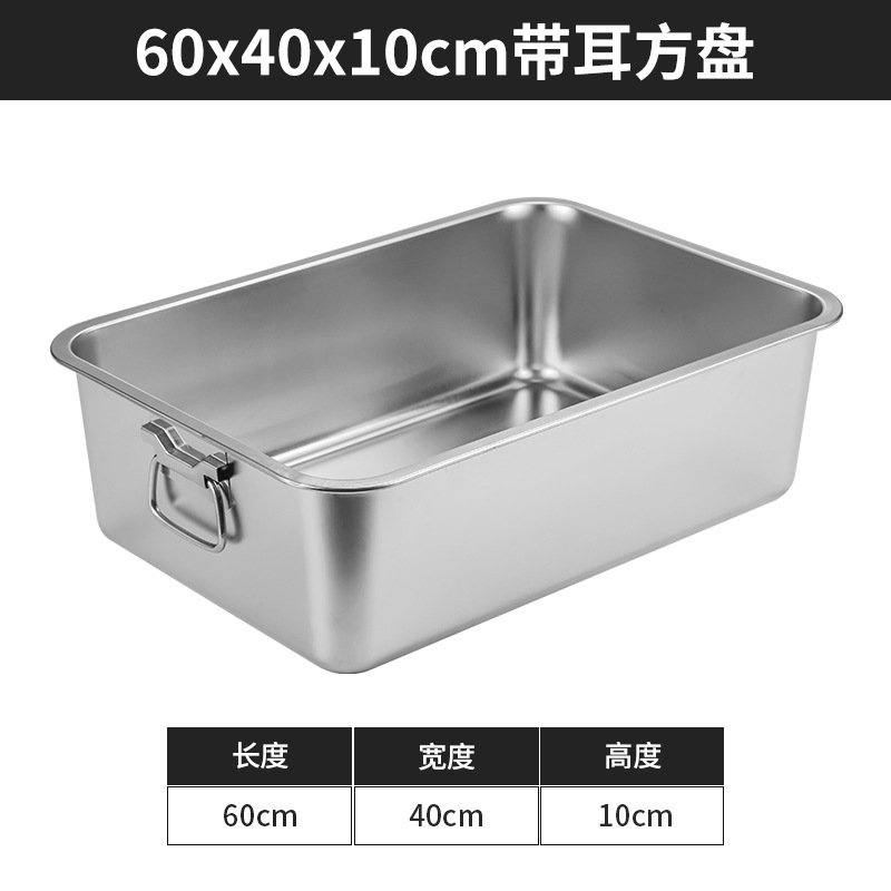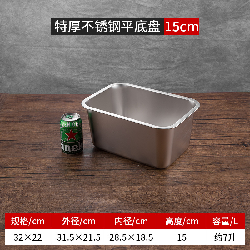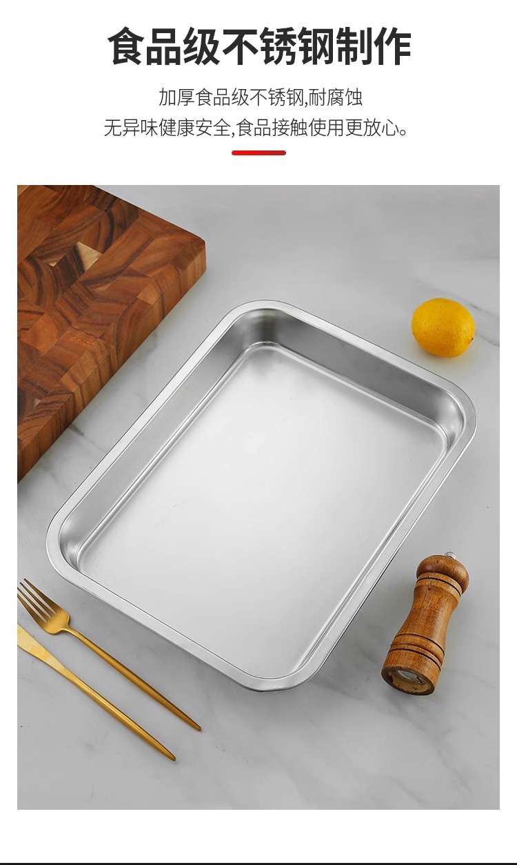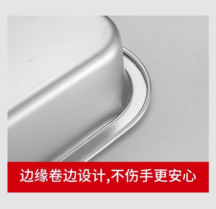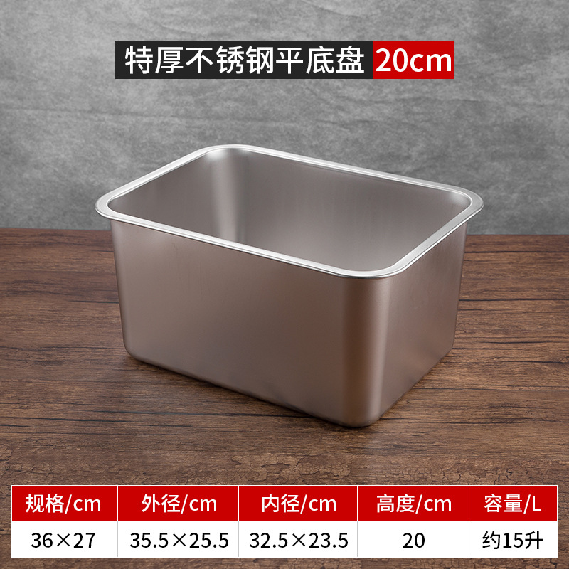 스테인리스 평평한 바닥 깊은 사각 접시, 뚜껑이 있는 두꺼운 직사각형 트레이, 셀프 서비스 밥 접시, 구멍이 뚫린 사각 접시, 물통 및 배수구