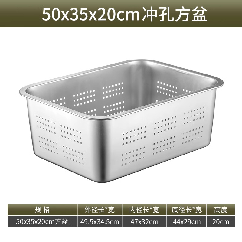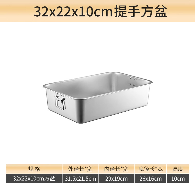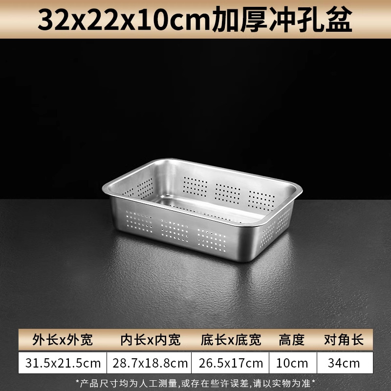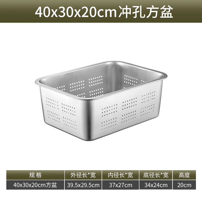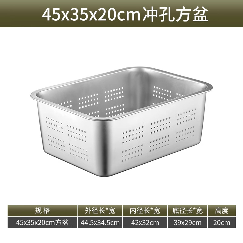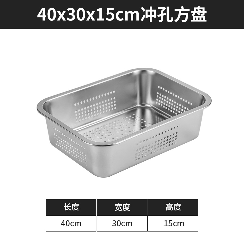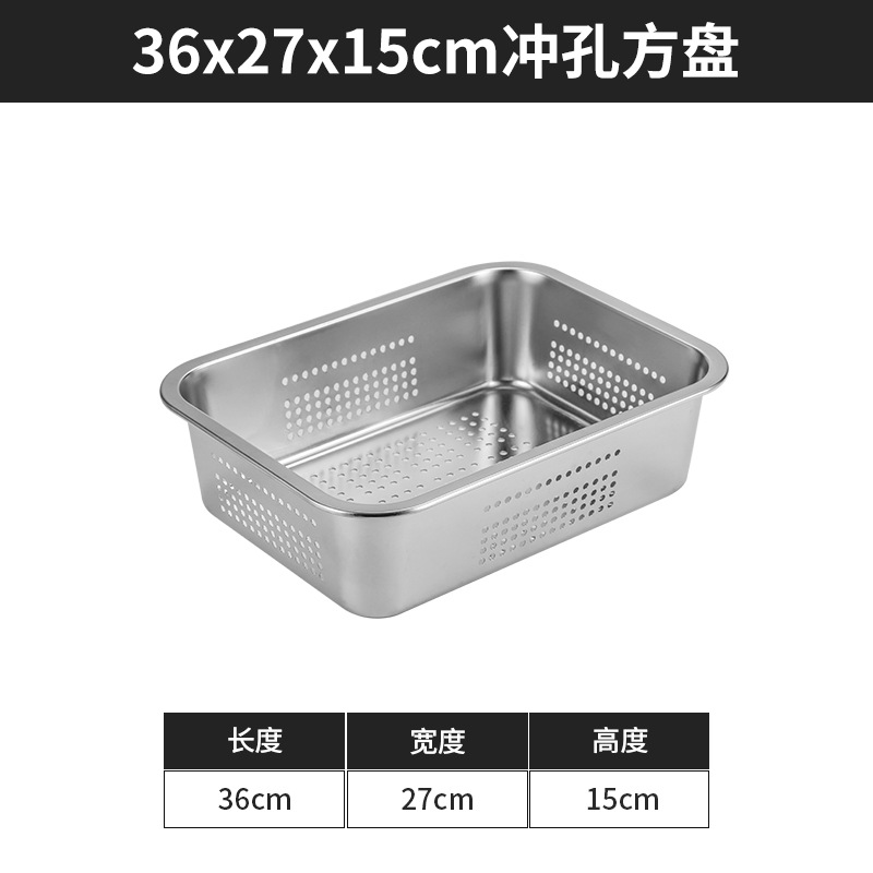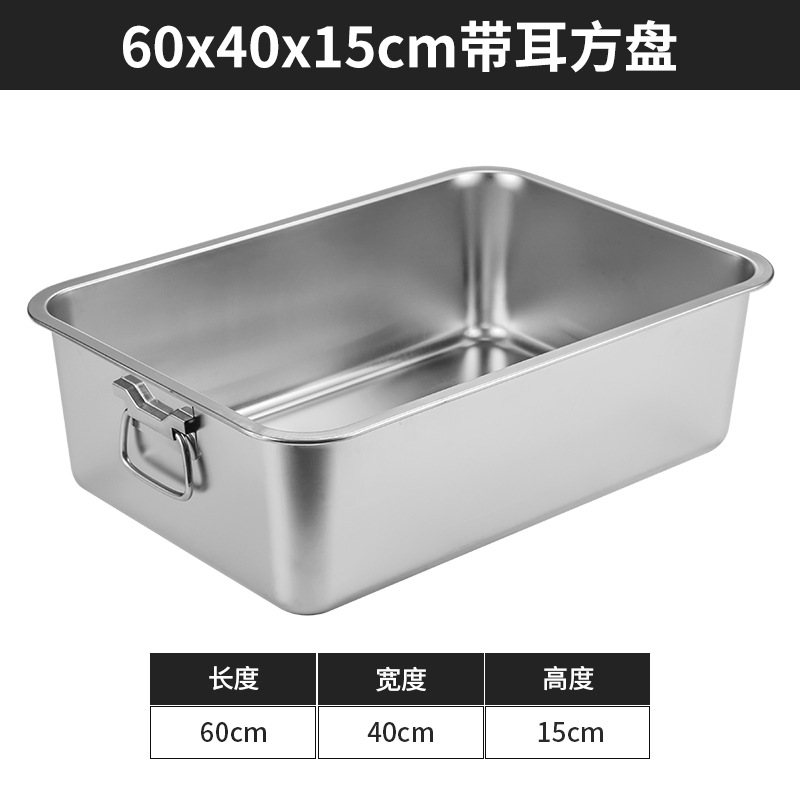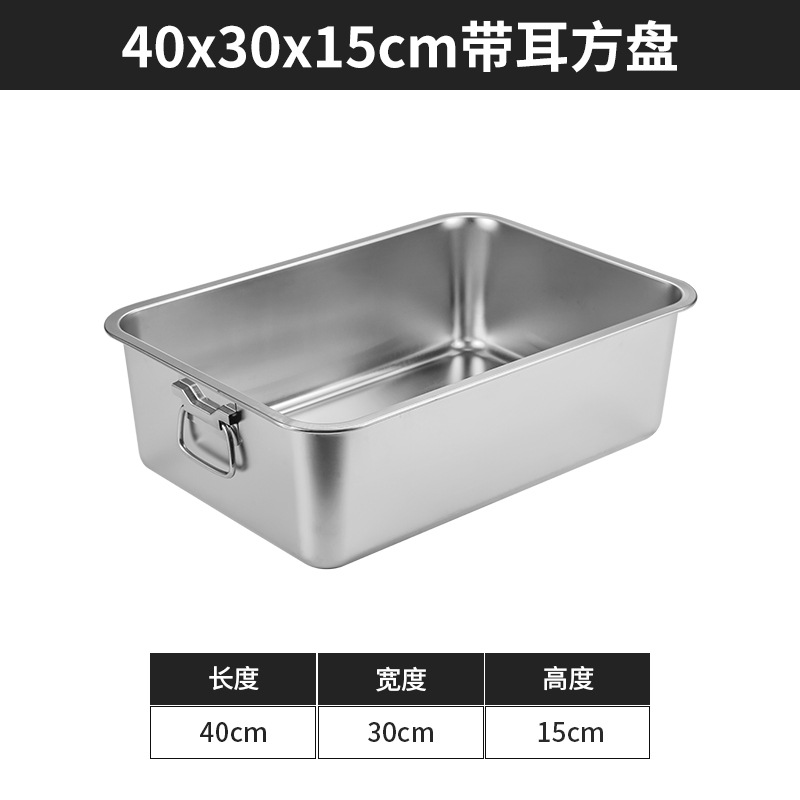 스테인리스 평평한 바닥 깊은 사각 접시, 뚜껑이 있는 두꺼운 직사각형 트레이, 셀프 서비스 밥 접시, 구멍이 뚫린 사각 접시, 물통 및 배수구