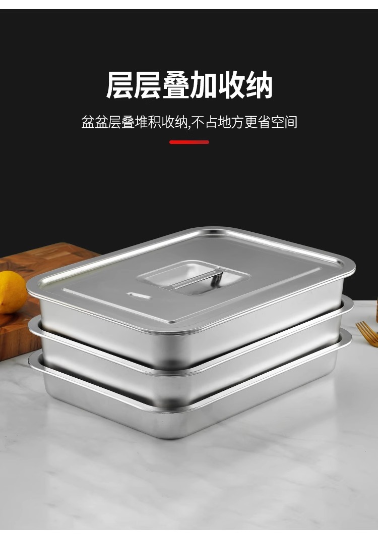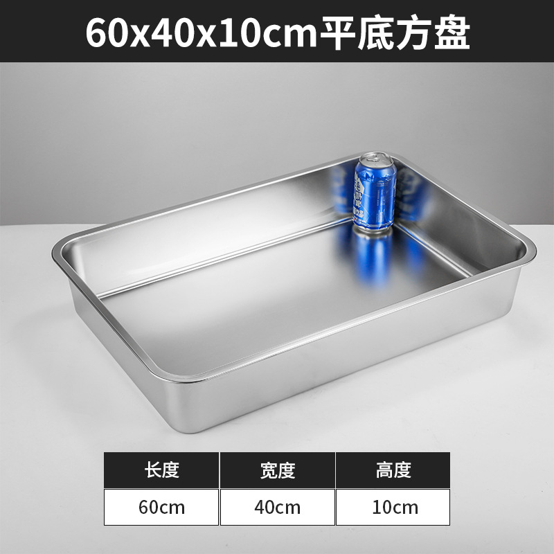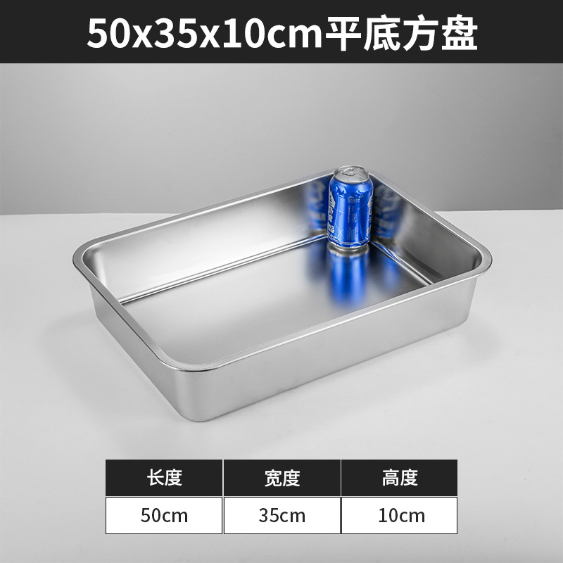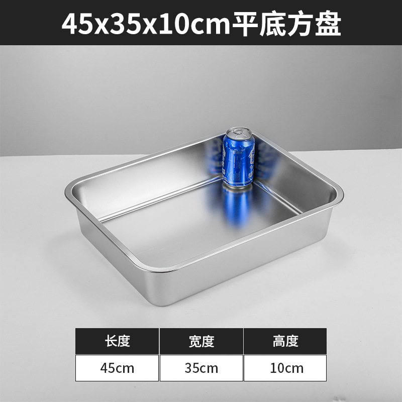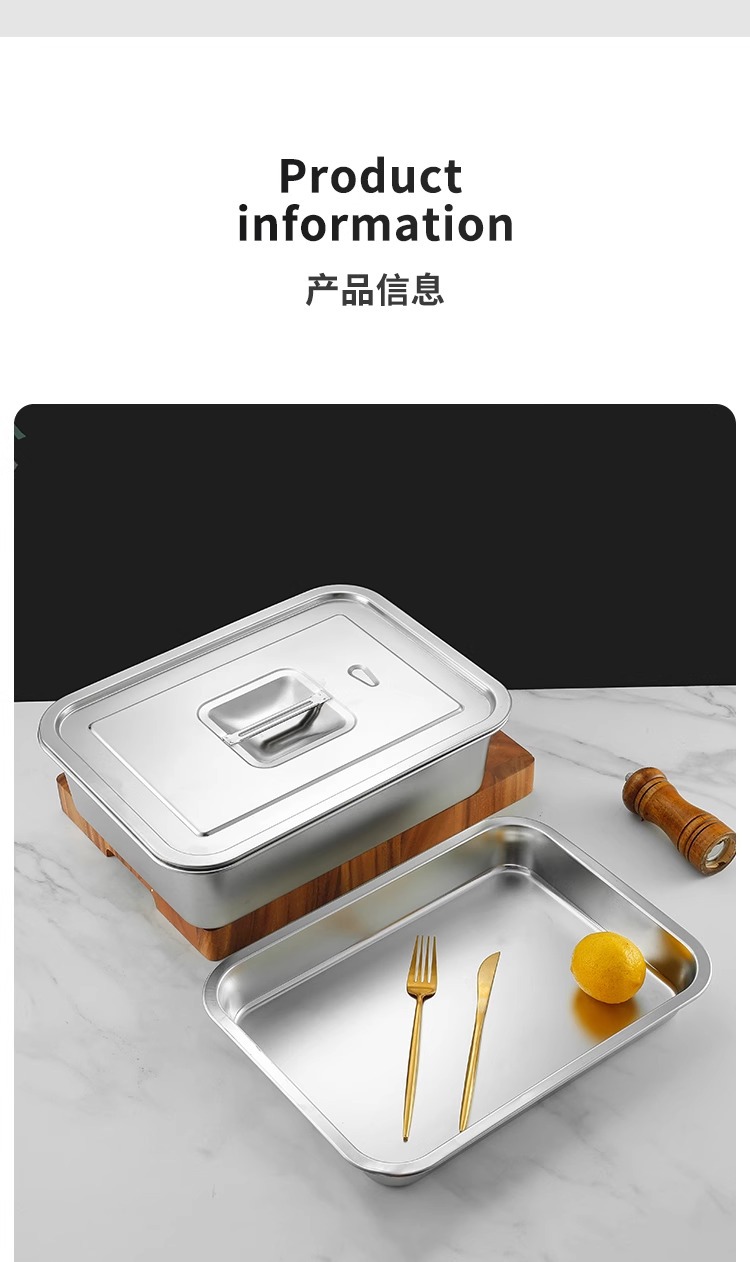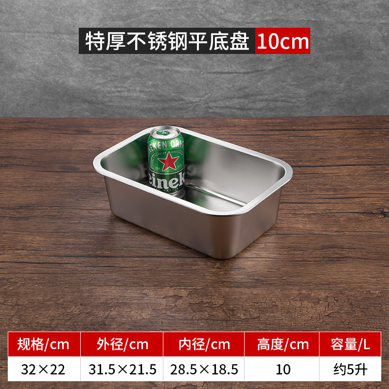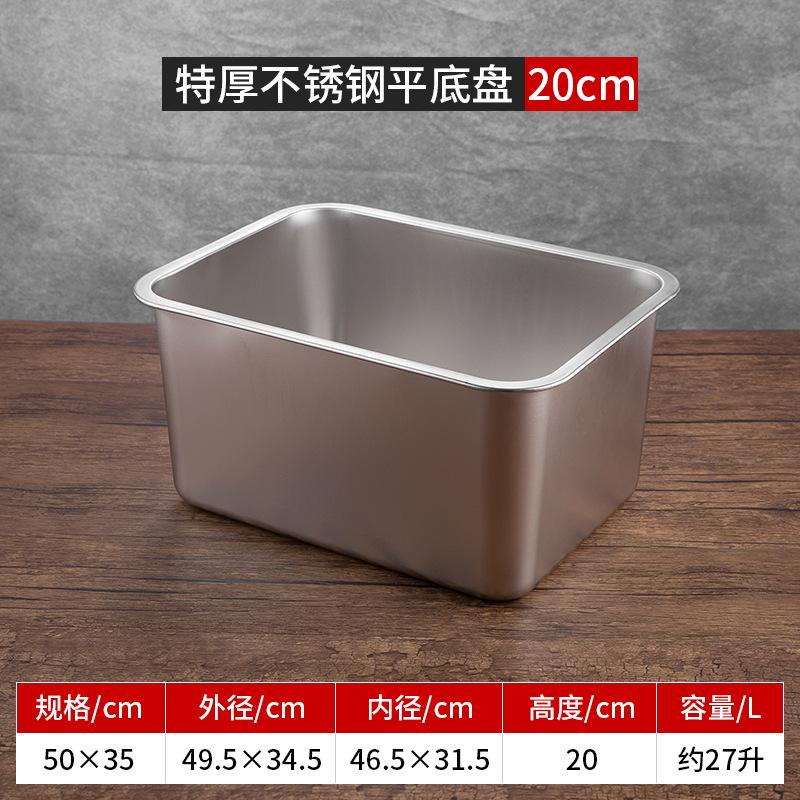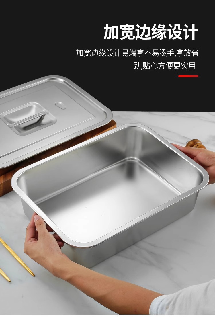 스테인리스 평평한 바닥 깊은 사각 접시, 뚜껑이 있는 두꺼운 직사각형 트레이, 셀프 서비스 밥 접시, 구멍이 뚫린 사각 접시, 물통 및 배수구스토어 가기